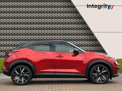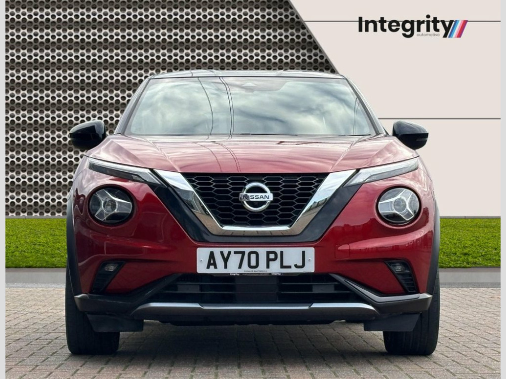 This 2020 Nissan Juke is a striking little crossover finished in Fuji Sunset Red with a contrasting Pearl Black roof — a colour combo that really stands out on the road. With only 24,985 miles recorded, a 1.0-litre turbo petrol engine mated to a 6-speed manual gearbox, and a premium leather & Alcantara Enigma Black interior, this example blends sporty style with economical running. It has had four service records (most recent at 19,164 miles), so you are buying a well-maintained, characterful compact SUV that is both practical for daily driving and fun to live with. Inside, the Juke punches above its class for equipment and comfort. The car you have in stock features heated seats, a touchscreen infotainment system with D-Mode drive settings (Eco / Standard / Sport) and a Bose sound system with headrest speakers that reviewers have singled out for praise. The Juke has been given top safety ratings and is well equipped with driver aids such as parking assist with reverse camera, folding mirrors with blind-spot monitoring and cruise control, which make daily driving and parking far easier. 19in Alloy Wheels - Akari, 2 x Cup Holder on Centre Console, 3 Adjustable Rear Head Restraints, 60-40 Split Rear Folding Seats, 7in Full Colour TFT Screen Combimeter, ABS with EBD and Brake Assist, Active Ride Control, Active Trace Control, Advanced Safety Shield Pack, Android Auto and Apple CarPlay, Auto Dimming Rear View Mirror, Automatic Air Conditioning, Automatic Hazard Signal and Emergency St, Body Coloured Handles, Bose Personal Plus Audio System, Cabin Light Front and Rear, Chrome Interior Door Handles, Comfort Pack, DAB Radio, Design Pack, Door Ambient Lighting, Drive Modes - Sport-Normal-Eco, Driver and Passenger Sun Visor with Vani, Driver-Passenger-Side and Curtain Airbag, Electr
