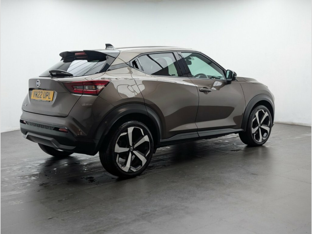 19" alloys, Navigation, Heated seats, Parking camera and Upgraded sound system. 3 services - last service done at 13998 miles on 14/04/2025. This 2022 Nissan Juke DIG-T Tekna presents an exceptional opportunity with its remarkably low mileage of just 21183 miles for its age, all backed by a clear vehicle history check. This stylish Tekna trim Juke is powered by an efficient 1.0L Euro 6 petrol engine, offering a compelling blend of performance and economy. Inside, you'll find a host of advanced features designed for comfort and convenience, including automatic climate control, LED headlights for superior visibility, and seamless integration with Android Auto and Apple CarPlay. The Advanced Safety Shield Pack provides peace of mind with Blind Spot Assistance, Adaptive Cruise Control, and a 360 degree camera system, complemented by rear parking sensors to make manoeuvring effortless. The Nissan Juke DIG-T Tekna stands out with its impressive fuel economy, achieving a highlight of 48 mpg, which indicates it is more economical than many similar vehicles. Furthermore, its low CO2 emissions are another key highlight, demonstrating its environmental consideration compared to other cars in its class. This combination of low mileage, excellent fuel efficiency, and a comprehensive suite of modern features makes this 2022 Nissan Juke a truly attractive proposition for any discerning driver. 19in Alloy Wheels, 2 x Cup Holder on Centre Console, 3 Adjustable Rear Head Restraints, 60-40 Split Rear Folding Seats, 7in Full Colour TFT Screen Combimeter, ABS with EBD and Brake Assist, Active Ride Control, Active Trace Control, Advanced Safety Shield Pack, Android Auto and Apple CarPlay, Auto Dimming Rear View Mirror, Automatic Air Conditioning, Automatic Hazard Signal and Emergency St, Body Coloured Handles, Bose Personal Plus Audio System, Cabin Light Front and Rear, Chrome Interior Door Handles, Comfort Pack, DAB Radio, Design Pack, Door Ambient Lighting, Drive Modes - Sport-Normal-Eco, Driver and Passenger Sun Visor with Vani, Driver-Passenger-Side and Curtain Airbag, Electric Heate