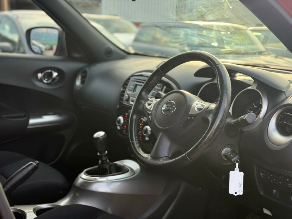 This 2015 Nissan Juke DIG-T Acenta benefits from a partial service history, offering a good overview of its maintenance. This particular model is a DIG-T Acenta, featuring an efficient 1.2 litre petrol engine and presented in the Acenta trim. For your convenience, it includes Bluetooth integration for seamless telephone connectivity and climate control to ensure a comfortable cabin temperature in all conditions.The Nissan Juke DIG-T Acenta stands out with its low insurance group, making it an economical choice for many drivers. It also boasts an impressive fuel economy of 50 miles per gallon, which is a significant advantage over many other vehicles in its class. Furthermore, its low CO2 emissions contribute to its appeal as a more environmentally conscious option. v socket - front, 17in alloy wheels - sport, 60-40 split rear folding seats, abs - anti lock brakes, aux-in socket, airbag - driver, airbag - front passenger, airbags - curtain, airbags - side, body coloured door mirrors, body coloured handles, brake assist, bumpers - body coloured, chrome interior door handles, climate control, cruise control, driver seat height adjustment, ebd - electronic brakeforce distribution, esp - electronic stability programme, electric door mirrors, first aid kit, front door pockets with drinks bottle holders, front dual cupholders, front fog lights, front map reading lights, front passenger seatback pockets, front and rear electric windows, gear shift indicator, glovebox, grey centre console-door trim finishers, head restraints - front, head restraints - rear, headliner - grey, high visibility jackets, isofix child seat anchoring points, immobiliser, led daytime running lights, leather gear knob, leather steering wheel, nissan dynamic control system, passenger airbag cut-off switch, pollen filter, power assisted steering, puncture repair kit, radio-cd, rear door child locks, rear privacy glass, rear tonneau cover integrated into tailgate, remote central locking, safety kit, speakers x4, steering wheel - rake adjustment, steering wheel mounted audio controls, tpms - tyre pressure monitoring system, telephone - bluetooth integration, traction control, trip computer, usb port, warning triangle