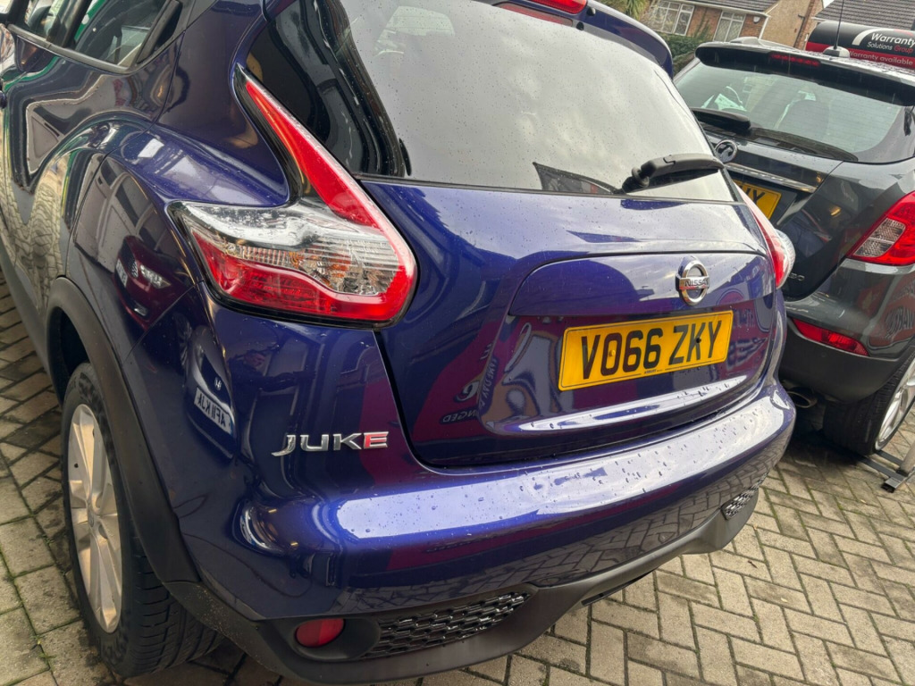 This 2016 Nissan Juke DIG-T Acenta boasts a full service history, offering you peace of mind. This stylish hatchback is powered by an efficient 1.2 litre petrol engine, meeting Euro 6 emissions standards. Inside, you'll find comfort and convenience with automatic climate control, complete with a pollen filter, and seamless Bluetooth integration for your telephone. A 3 month warranty is also included for your reassurance.The Juke Acenta is designed to be economical to run, achieving an impressive 50 miles per gallon, which is excellent for its class. Its low CO2 emissions further contribute to its cost effectiveness. Furthermore, this model falls into a low insurance group, making it an attractive option for many drivers looking for a vehicle that is both practical and affordable to maintain. k blue, 12v socket - front, 17in alloy wheels - sport, 2 speed wiper with variable intermittent, 3 adjustable rear head restraints, 60-40 split rear folding seats, aux socket for mp3 player, airbag - driver, airbag - front passenger, airbags - curtain, airbags - side, automatic climate control with pollen filter, body coloured handles, body-coloured door mirrors with led indicators, boot capacity with flexi-floor board, cd radio with 4 speakers, chrome interior door handles, cruise control with speed limiter, drive computer with temperature gauge, esp abs ebd and brake assist, electric adjustable door mirrors, engine immobiliser, front cupholders x2, front door pockets with drinks bottle holders, front fog lights, front map reading lights, front seat belt height adjustment, front seat belts with load limiter and pretensioners, front and rear electric windows, gear shift indicator, glovebox, grey centre console-door trim finishers, headliner - grey, height adjustable driver seat, isofix child seat anchoring points, led signature daytime running lights, leather steering wheel and gear knob, nissan dynamic control system, passenger airbag cut-off switch, power assisted steering - speed sensitive, puncture repair kit, rear door child locks, rear privacy glass, rear tonneau cover integrated into tailgate, rear wiper with intermittent, remote central locking, steering wheel mounted audio controls, tpms - tyre pressure monitoring system, telephone - bluetooth integration, tilt adjustable steering wheel, traction control, usb port