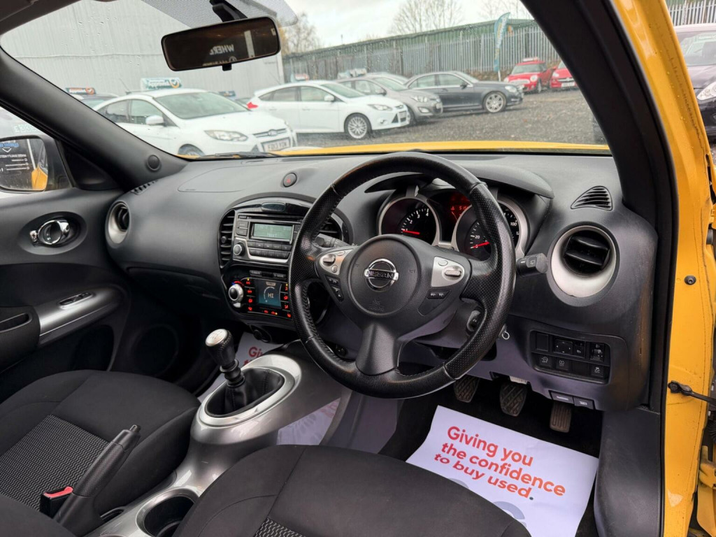 GILDRIDGE GROUP ARE PROUD TO PRESENT THIS LOVELY NISSAN JUKE 5DR IN YELLOW WITH ONLY 4 PREVIOUS OWNERS. STARTS AND DRIVES WITH NO KNOCKS OR BANGS. IMMACULATE BODYWORK AND EXCEPTIONALLY CLEAN INTERIOR FOR ITS AGE. CLUTCH AND GEARBOX IN VERY GOOD CONDITION, SERVICE HISTORY WITH A RECENT SERVICE JUST DONE. 12 MONTHS MOT TIL DECEMBER 2026 - NO ADVISORIES. GOOD MOT HISTORY. MAINTAINED VERY WELL AND CHEAP TO INSURE. IDEAL FOR A RELIABLE FAMILY CAR AND AS A DAILY RUN AROUND. FRESH SET OF TYRES. EQUIPPED WITH MULTI FUNCTION STEERING WHEEL, 2 KEYS, CRUISE CONTROL, FULL SERVICE HISTORY, BLUETOOTH ENTERTAINMENT SYSTEM, AC, ELECTRIC WINDOWS, ELECTRIC ADJUSTABLE MIRRORS, FM RADIO, CD PLAYER, AUX PORT, CENTRAL LOCKING AND MUCH MORE. ALL MAJOR CREDIT & DEBIT CARDS ACCEPTED, P/X WELCOME, FREE DELIVERY AVAILABLE (t&cs apply), PLEASE CALL ON 07476720850
