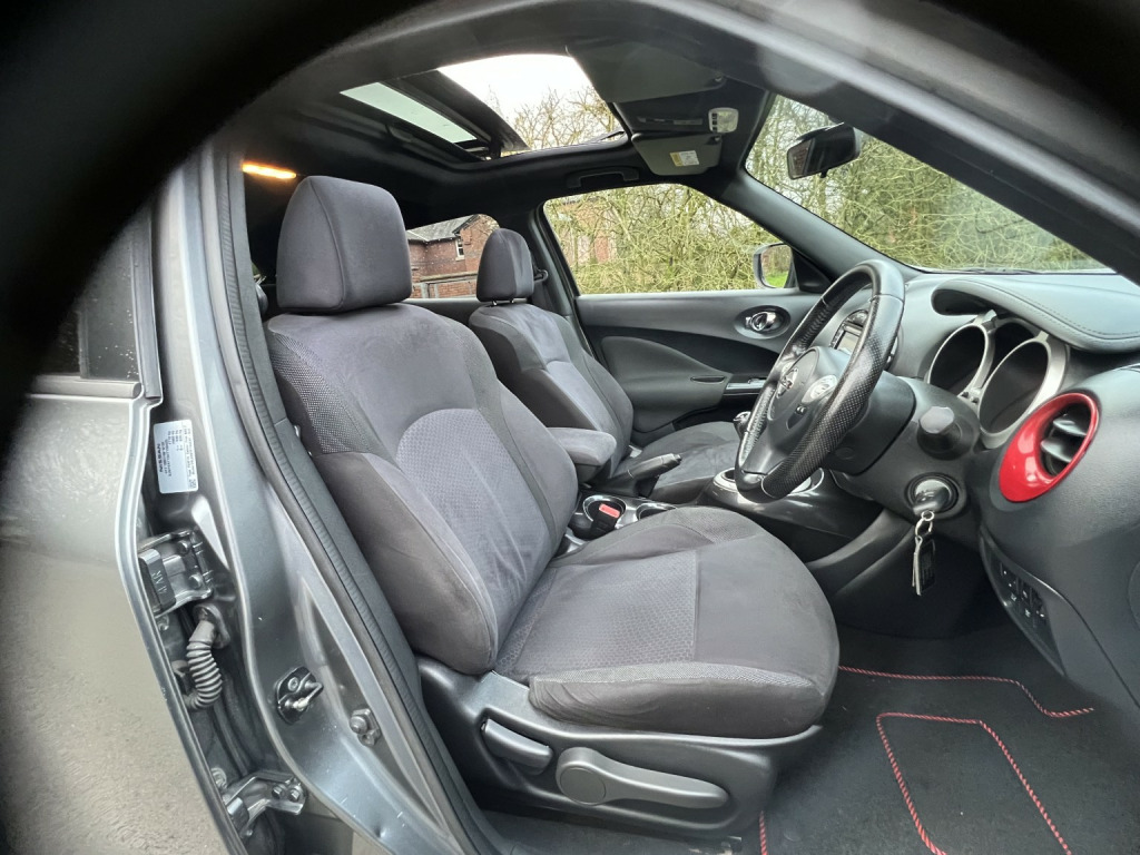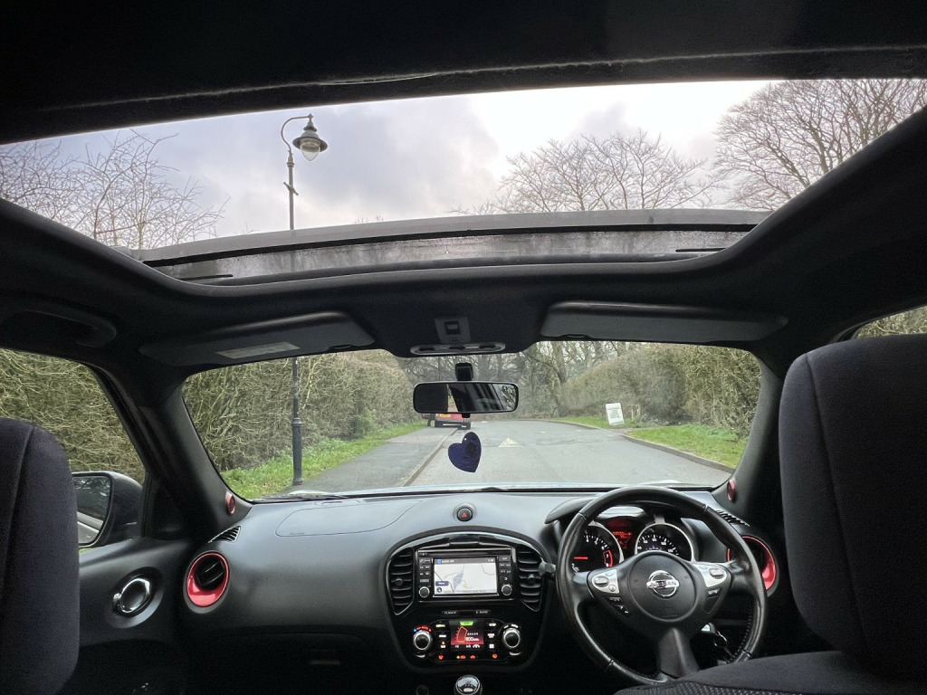 NISSAN JUKE 1.2 DIG-T Acenta Premium 115 BHP 6 SPEED MANUAL IN EXCELLENT CONDITION 59k WITH A FULL SERVICE HISTORY WITH TIMING BELT CHANGED USUAL SPECIFICATION INCLUDING ELECTRIC SUNROOF REVERSE CAMERA SATELLITE NAVIGATION WITH BT MUSIC STREAMING BLUETOOTH TELEPHONE DAB DIGITAL RADIO DIGITAL CLIMATE CONTROL AIR CONDITIONING 17 INCH GLOSS BLACK ALLOY WHEELS RED BUMPER DOOR MIRROR INSERTS XENON LED RUNNING LIGHTS ETC THIS NISSAN JUKE LOOKS AND DRIVES SUPERB WITH ANY VIEWING WELCOME WOULD CONSIDER PART EXCHANGE