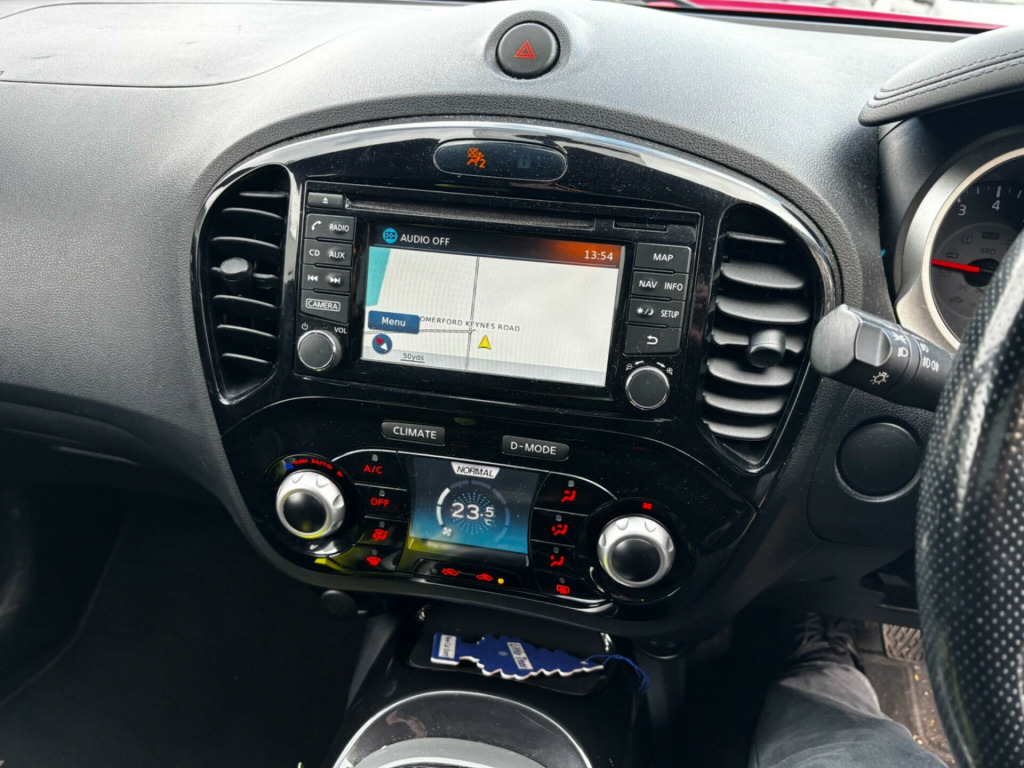 This 2015 Nissan Juke DIG T Acenta Premium offers exceptional value with its remarkably low mileage of just 57,311 miles. This stylish hatchback is equipped with a 1.2 litre petrol engine and meets Euro 6 emissions standards. For your peace of mind, it comes with a 6 month warranty and a Oct 2026 Mot . 2 New Front Tyres fitted. Inside, you'll find convenient features such as Bluetooth integration for hands free calls and music streaming, climate control to keep you comfortable in all conditions, and a rear parking camera to assist with manoeuvring.The Nissan Juke DIG T Acenta Premium stands out with its impressive fuel economy, achieving up to 50 miles per gallon, which is better than many similar vehicles. Its low CO2 emissions also contribute to its appeal, making it a more environmentally conscious choice. Furthermore, this model benefits from a low insurance group, meaning running costs are kept to a minimum, making it an attractive option for a wide range of drivers.. 12V Socket - Front, 17in Alloy Wheels - Sport, 6 Speakers, 60-40 Split Rear Folding Seats, ABS - Anti Lock Brakes, AUX-In Socket, Air Vent Rings - Matching Centre Console, Airbag - Driver, Airbag - Front Passenger, Airbags - Curtain, Airbags - Side, Black Headliner, Body Coloured Door Mirrors, Body Coloured Handles, Brake Assist, Bumpers - Body Coloured, Centre Console - Grey, Chrome Interior Door Handles, Climate Control, Cruise Control, DAB Radio, Door Trim Finishers - Grey, Door Trim Finishers - Matching Centre Console, Driver Seat Height Adjustment, EBD - Electronic Brakeforce Distribution, ESP - Electronic Stability Programme, Electric Door Mirrors, First Aid Kit, Flexi-Board Boot Storage System, Front Armrest, Front Door Pockets with Drinks Bottle Holders, Front Dual Cupholders, Front Fog Lights, Front Map Reading Lights, Front Passenger Seatback Pockets, Front Seat Belts with Load Limiter and Pretensioners, Front and Rear Electric Windows, Gear Knob - Insert Finisiher - Matching Centre Console, Gear Shift Indicator, Glovebox, Head Restraints - Front, Head Restraints - Rear, High Visibility Jackets, ISOFIX Child Seat Anchoring Points, Immobiliser, Internet Radio, LED Daytime Running Lights, Leather Gear Knob, Leather Steering Wheel, Nissan Dynamic Control System, Outside Temperature Gauge, Passenger Airbag Cut-Off Switch, Pollen Filter, Power Assisted Steering - Speed Sensitive, Puncture Repair Kit, Radio-CD, Rear Door Child Locks, Rear Parking Camera, Rear Privacy Glass, Rear Tonneau Cover Integrated into Tailgate, Rear Wiper with Intermittent, Remote Central Locking, Safety Kit, Satellite Navigation - Nissan Connect, Seats - Sports, Speed Limiter, Steering Wheel - Rake Adjustment, Steering Wheel Mounted Audio Controls, TPMS - Tyre Pressure Monitoring System, Telephone - Bluetooth Integration, Touch Screen - Colour 5.8in, Traction Control, Trip Computer, USB Port, Warning Triangle. Full service history