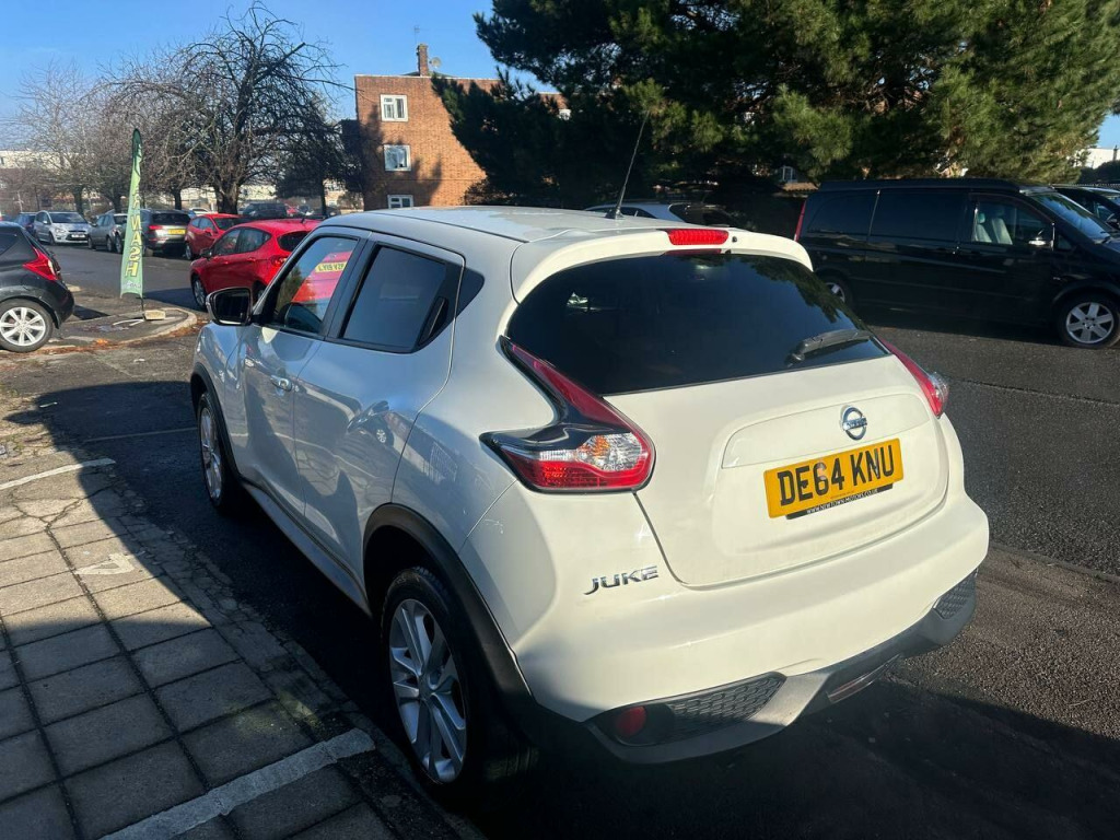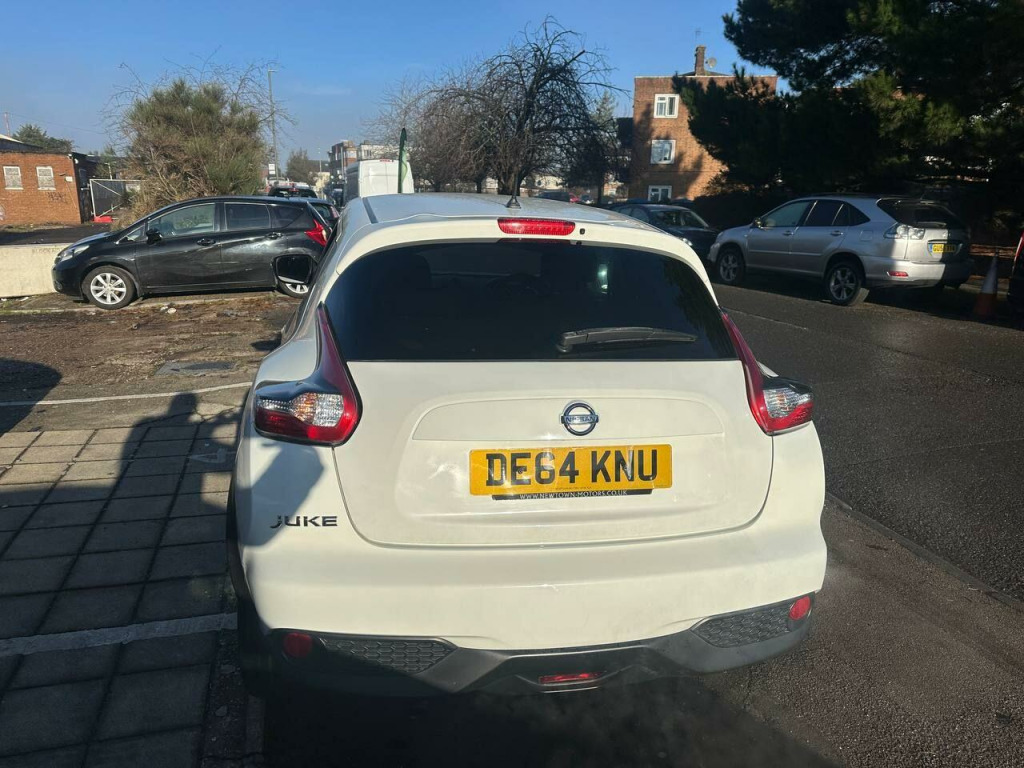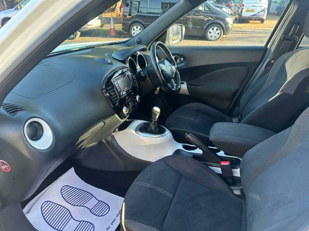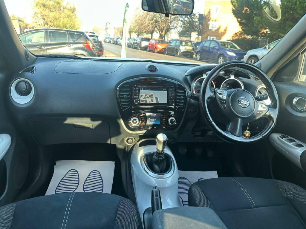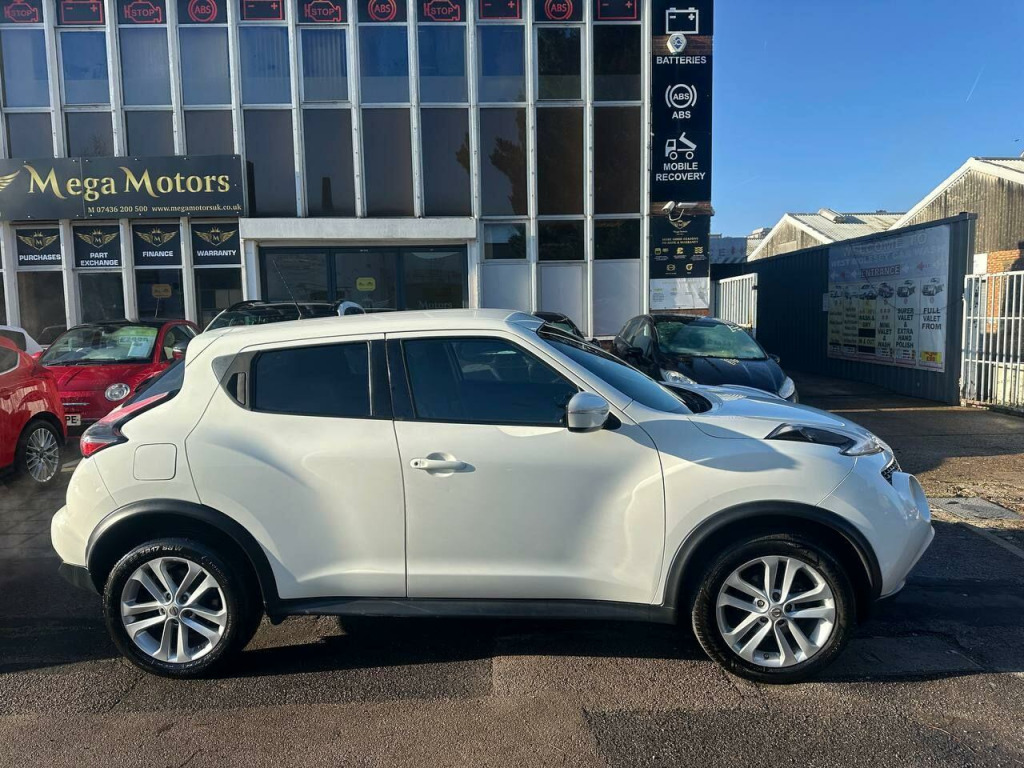 Beautiful Nissan Juke 1.2 DIG-T Acenta Premium in excellent condition. Top Specs, Navigation, Reverse Camera , Electric Windows, Electric Side Mirrors, Climate Control, Steering Control, Cruise Control, Bluetooth Connection, Aux Connection, Alloys, Isofix, Arm Restand many more...., Great Mpg, cheap to Tax and Insure. ULEZ compliant, 2 Keys. The car has been very well looked after and comes with FULL-Service history. We had it serviced recently at 82200 miles on 14/01/2026. It has also been MOTed till 11/01/2027 with no advisory. 3 Months essential warranty with Customer Protect is also included for your peace of mind. It is in very good condition and drives very smoothly with no fault whatsoever. ALL OUR CARS ARE FULLY INSPECTED BY PROFESSIONALS PRIOR TO ADVERTISEMENT & COME WITH 12 MONTHS FREE BASIC AA BREAKDOWN COVER. Finance is also available on request. DRIVE-AWAY INSURANCE IS ALSO AVAILABLE AT A COST. TO VIEW MORE STOCK PLEASE VISIT OUR WEBSITE AT: WWW.MEGAMOTORSUK.CO.UK , emium fabric - grey with white centre console and white exterior pack, 12v socket - front, 17in alloy wheels - sport, 6 speakers, 60-40 split rear folding seats, abs - anti lock brakes, aux-in socket, air vent rings - matching centre console, airbag - driver, airbag - front passenger, airbags - curtain, airbags - side, black headliner, body coloured door mirrors, body coloured handles, brake assist, bumpers - body coloured, chrome interior door handles, climate control, cruise control, dab radio, door trim finishers - matching centre console, driver seat height adjustment, ebd - electronic brakeforce distribution, esp - electronic stability programme, electric door mirrors, first aid kit, front armrest, front door pockets with drinks bottle holders, front dual cupholders, front fog lights, front map reading lights, front passenger seatback pockets, front and rear electric windows, gear knob - insert finisiher - matching centre console, gear shift indicator, glovebox, grey centre console-door trim finishers, head restraints - front, head restraints - rear, high visibility jackets, isofix child seat anchoring points, immobiliser, led daytime running lights, leather gear knob, leather steering wheel, nissan dynamic control system, passenger airbag cut-off switch, pollen filter, power assisted steering, puncture repair kit, radio-cd, rear door child locks, rear parking camera, rear privacy glass, rear tonneau cover integrated into tailgate, remote central locking, safety kit, satellite navigation - nissan connect, seats - sports, steering wheel - rake adjustment, steering wheel mounted audio controls, tpms - tyre pressure monitoring system, telephone - bluetooth integration, touch screen - colour 5.8in, traction control, trip computer, usb port, warning triangle