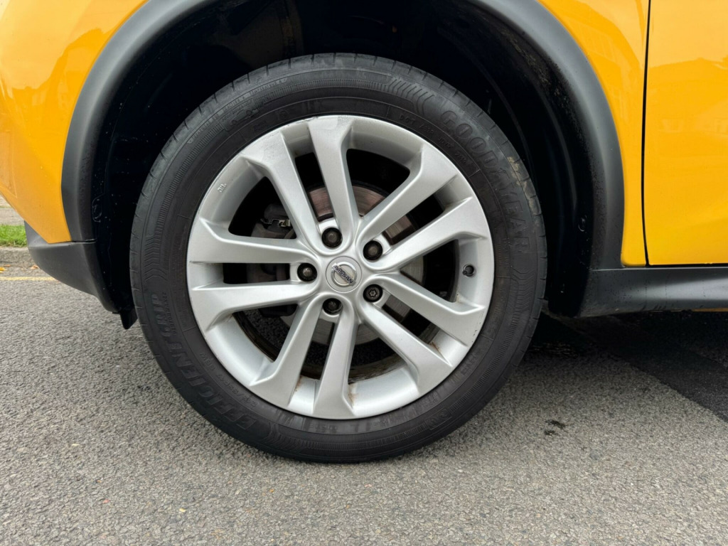 This 2017 Nissan Juke DIG-T N Connecta offers an impressive 50 miles per gallon, making it a wonderfully economical choice. This particular model benefits from a smooth 1.2 litre petrol engine and meets the Euro 6 emission standards. Inside, you'll find the convenience of Intelligent Key with Start Push Button, allowing for keyless entry and ignition. Stay connected on the go with Bluetooth integration for your telephone, and enjoy a comfortable cabin environment thanks to the automatic climate control with pollen filter. Parking is made simpler with the colour reversing camera.The N Connecta trim level ensures you have a well equipped vehicle. Its low CO2 emissions and low insurance group rating further highlight its appeal, indicating that this Juke is designed to be more affordable to run and maintain compared to many other vehicles in its class. This combination of efficiency, technology, and cost effectiveness makes it a smart option for everyday driving.This example is presented in fabulous condition throughout with a great service history, recently replaced timing chain and just serviced. tificial leather with suede - black with yellow centre console, 12v socket - front, 17in alloy wheels - sport, 2 speed wiper with variable intermittent, 3 adjustable rear head restraints, 60-40 split rear folding seats, aux socket for mp3 player, airbag - driver, airbag - front passenger, airbags - curtain, airbags - side, automatic climate control with pollen filter, automatic lights and wipers, black headliner, body-coloured door mirrors with led indicators, boot capacity with flexi-floor board, colour reversing camera, cruise control with speed limiter, dab and internet radio with 6 speakers, drive computer with temperature gauge, esp abs ebd and brake assist, electric folding and heated door mirrors, engine immobiliser, front armrest, front cupholders x2, front door pockets with drinks bottle holders, front fog lights, front seat belt height adjustment, front seat belts with load limiter and pretensioners, front and rear electric windows, gear shift indicator, height adjustable driver seat, isofix child seat anchoring points, intelligent key with start push button, led signature daytime running lights, leather steering wheel and gear knob, nissan dynamic control system, nissanconnect, passenger airbag cut-off switch, power assisted steering - speed sensitive, rear door child locks, rear privacy glass, rear tonneau cover integrated into tailgate, rear wiper with intermittent, steering wheel mounted audio controls, tpms - tyre pressure monitoring system, telephone - bluetooth integration, tilt adjustable steering wheel, traction control, usb port