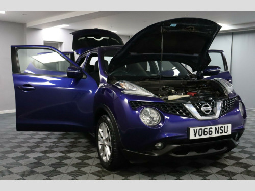 VO66NSU. The Nissan Juke was created for drivers who wanted the style and raised driving position of an SUV in a car that still works well in town. The shape, seating height, and compact size were designed to give more road presence than a hatchback while staying easy to park and live with. The 1.2 DIG-T engine offers Better Fuel Economy and Lower Emissions than larger petrol engines, helping with running costs and insurance.The N-Connecta model adds everyday convenience rather than luxury extras. A touchscreen brings together navigation, media, and phone controls in one place. Bluetooth, Digital Radio, and USB keep music and calls simple. A Colour Reversing Camera helps with visibility when parking, and Cruise Control with Speed Limiter supports steady motorway driving.Automatic Climate Control keeps the cabin set to a chosen temperature, and the Nissan Intelligent Key with Push Button Start removes the need to handle keys. Safety systems such as Electronic Stability Control, Anti-lock Braking, Brake Assist, and Lane-based warnings were included to support confident driving in mixed traffic and weather.This car comes with a Good Service History (11 records), a new 12 month MOT with no advisories, a clear HPI report, two keys, and verified mileage for peace of mind.Finance is available, and we can provide a personalised video on request. Please note that some features (e.g., Navigation/CarPlay) may require an active subscription. Spec details can vary, so just ask if you’d like us to confirm anything.For more info or a finance quote, call ☎️ 0113 257 00 00.. 5in Colour Touchscreen Infotainment System, Cruise Control with Speed Limiter, Telephone - Bluetooth Integration, DAB and Internet Radio with 6 Speakers, 12V Socket - Front, Colour Reversing Camera, USB Port, ESP ABS EBD and Brake Assist, Intelligent Key with Start Push Button, 17in Alloy Wheels - Sport, Electric Folding and Heated Door Mirrors, Automatic Climate Control with Pollen Filter, Steering Wheel Mounted Audio Controls, ISOFIX Child Seat Anchoring Points, Artificial Leather with Suede - Black with Black Centre Console.