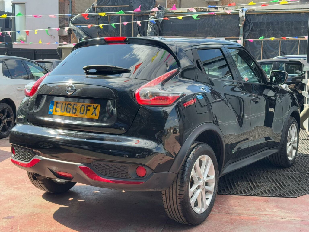 SELECT MOTORS (GB) DELIGHTED TO OFFER YOU THIS STUNNING NISSAN JUKE 1.2 N-CONNECTA 5DR IN BLACK COLOUR AND COMPLEMENTED WITH 17IN SPORT DESIGN ALLOY WHEELS. THIS VEHICLE HAS A HUGE SPECIFICATION WHICH INCLUDES THE FOLLOWING; SATELLITE NAVIGATION SYSTEM, REVERSING CAMERA, BLUETOOTH CONNECTIVITY FOR PHONE AND MEDIA, DAB-FM/AM RADIO, CRUISE CONTROL WITH SPEED LIMITER, AUX SOCKET FOR MP3 PLAYER, AUTOMATIC CLIMATE CONTROL, LED DAYTIME RUNNING LIGHTS, TYRE PRESSURE WARNING SYSTEM. THIS VEHICLE IS ULEZ EXEMPT. , WE ARE OFFERING NATIONWIDE DELIVERY ON ALL VEHICLE (PLEASE GET IN TOUCH DIRECTLY FOR DETAILS). WE CAN ALSO CONDUCT VIRTUAL VIEWINGS AND ACCOMMODATE ANY REQUESTS YOU MAY HAVE. ALL OUR ADVERTISED STOCK IS TEST-DRIVEN, INSPECTED BY OUR MECHANIC TO MAKE SURE OUR CUSTOMERS DRIVE AWAY WITH THE BEST QUALITY CARS. WE CAN PROVIDE A VIDEO WALK AROUND THIS VEHICLE UPON REQUEST. ALL OF OUR VEHICLES ARE SUPPLIED WITH A 3 MONTHS WARRANTY WITH EXTENDED OPTION. 12 MONTHS FREE AA BREAKDOWN COVER. FINANCE AVAILABLE.