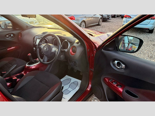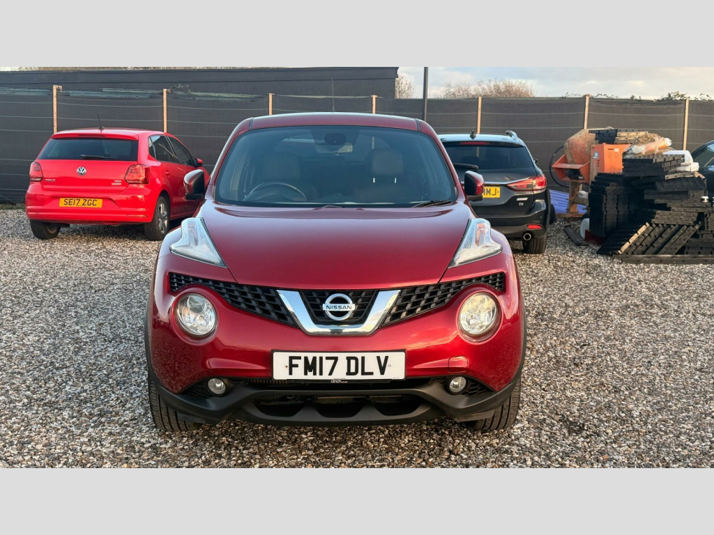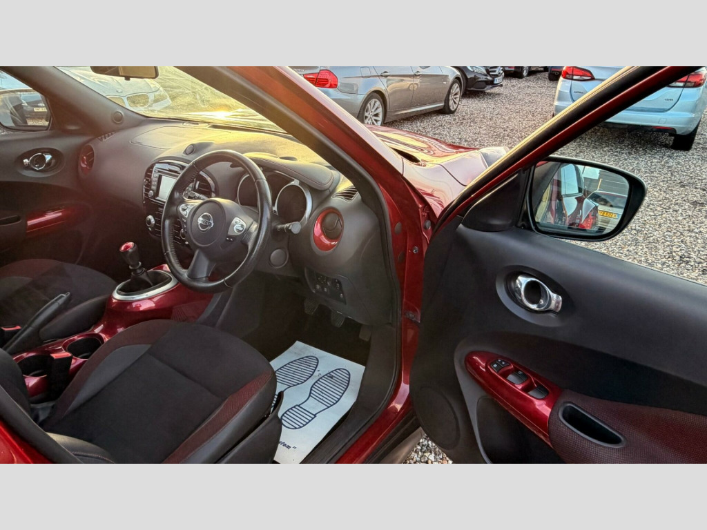 This 2017 Nissan Juke 1.2 DIG-T N-Connecta is a stylish, modern and well-equipped compact SUV that offers a perfect mix of comfort, practicality and sporty driving. Finished in a standout red, it has covered only 43,000 miles, making it a low-mileage example compared to most on the market. With 3 owners from new and powered by a 1.2 petrol DIG-T engine, it delivers great fuel economy while still giving you a responsive and enjoyable drive. The smooth manual gearbox makes it ideal for both city driving and motorway trips.This model is fully ULEZ compliant, so you can drive through any low-emission zone without paying charges. Being the N-Connecta trim, it comes with a strong list of features and a more premium feel than the base models. It includes climate control, which keeps the cabin comfortable all year round, and half-leather trim, giving the interior a more luxurious look and feel. The driving position is high and confident, offering excellent visibility and comfort.The Juke is known for its unique design and compact size, making it perfect for urban driving while still offering the practicality of a small SUV. Inside, you get a touchscreen infotainment system, navigation, reversing camera, Bluetooth, electric mirrors, multifunction steering wheel and plenty of storage. The boot space is practical for everyday life, and the rear seats fold for extra capacity when needed.With its low mileage, modern Euro 6 engine and strong specification, this example stands out as a well-looked-after and reliable choice. It runs smoothly, is cheap to maintain compared to other SUVs, and offers great handling thanks to its compact build.Overall, this Nissan Juke N-Connecta is a clean, stylish and economical SUV that's perfect for first-time drivers, families or anyone wanting something modern and reliable. Ready to drive away message if you want to arrange a viewing or test drive. tificial leather with suede - black with red centre console, 12v socket - front, 17in alloy wheels - sport, 2 speed wiper with variable intermittent, 3 adjustable rear head restraints, 60-40 split rear folding seats, aux socket for mp3 player, airbag - driver, airbag - front passenger, airbags - curtain, airbags - side, automatic climate control with pollen filter, automatic lights and wipers, black headliner, body coloured handles, body-coloured door mirrors with led indicators, boot capacity with flexi-floor board, chrome interior door handles, colour reversing camera, cruise control with speed limiter, dab and internet radio with 6 speakers, drive computer with temperature gauge, esp abs ebd and brake assist, electric folding and heated door mirrors, engine immobiliser, front armrest, front cupholders x2, front door pockets with drinks bottle holders, front fog lights, front map reading lights, front seat belt height adjustment, front seat belts with load limiter and pretensioners, front and rear electric windows, gear shift indicator, glovebox, height adjustable driver seat, isofix child seat anchoring points, intelligent key with start push button, led signature daytime running lights, leather steering wheel and gear knob, nissan dynamic control system, nissanconnect, passenger airbag cut-off switch, power assisted steering - speed sensitive, puncture repair kit, rear door child locks, rear privacy glass, rear tonneau cover integrated into tailgate, rear wiper with intermittent, steering wheel mounted audio controls, tpms - tyre pressure monitoring system, telephone - bluetooth integration, tilt adjustable steering wheel, traction control, usb port
