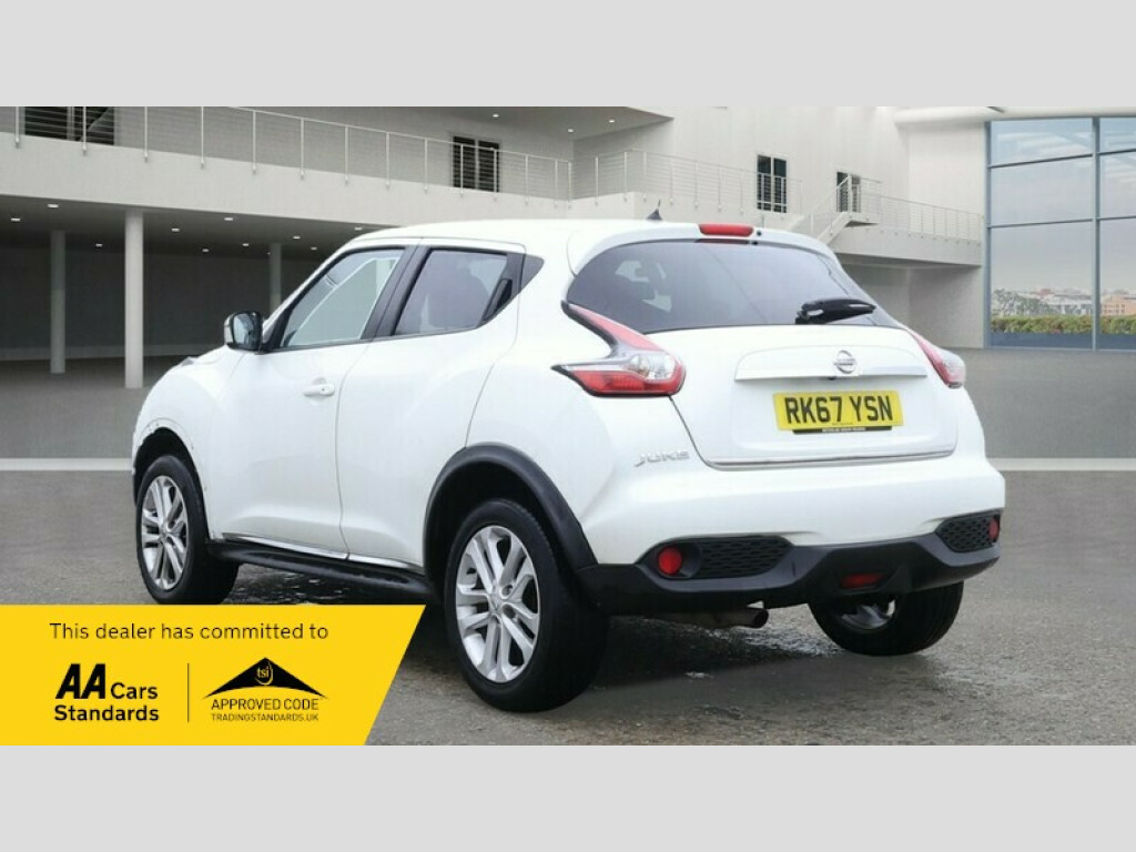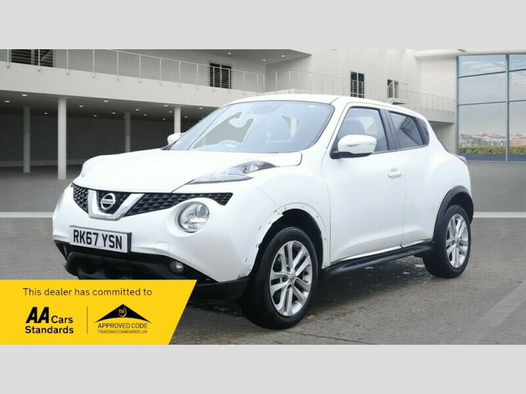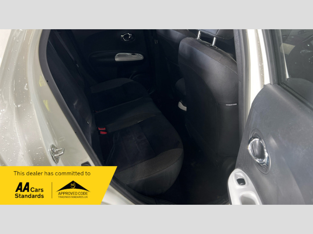 NISSAN JUKE 1.2 DIG-T 113 N-CONNECTA Hatchback DVSA MILEAGE-22k (09/09/2020), 27k (30/09/2021), 35k (06/10/2022), 42k (05/10/2023), 54k (11/10/2024), 65k (15/10/2025) Navigation SD Card Climate Control Half Leather Trim Tyre Repair Kit 17' Alloy Wheels Privacy Glass 12V Power Socket, Cruise Control, Cup Holders, Daytime Running Lights, ESP, Electric Windows, Engine Immobiliser, Folding Rear Seats, Front Airbags, Front Fog Lights, ISOFix Anchor Point, Power Assisted Steering, Privacy/Tinted Glass, Reading Lights, Safety Belts, Satellite Navigation, Side Impact Airbags, Steering Wheel Controls, Traction Control