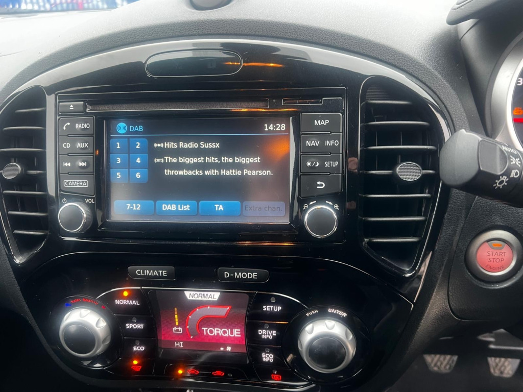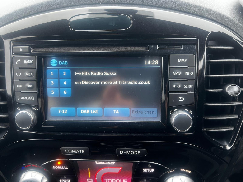 This 2016 Nissan Juke 1.2 DIG-T N-Connecta SUV with 69738 miles on the clock is the perfect combination of style and practicality. Boasting 5 seats and 5 doors, this SUV runs on petrol and is ULEZ compliant, ensuring low emissions in urban areas. With an MOT that expires on 20/08/2026, you can enjoy peace of mind on the road. This Euro 6 model is equipped with modern features such as 12V socket, AUX socket for MP3 player, DAB and Internet radio with 6 speakers, Nissan Connect, and telephone Bluetooth integration. Whether you're cruising around town or heading out for a weekend adventure, this Nissan Juke is ready to take you there in comfort and style.Also features rear view camera sat nav .Please ask about our incredible offers on our warrranties. v socket - front, aux socket for mp3 player, dab and internet radio with 6 speakers, nissanconnect, telephone - bluetooth integration, usb port, 17in alloy wheels - sport, body coloured handles, body-coloured door mirrors with led indicators, electric folding and heated door mirrors, front and rear electric windows, puncture repair kit, rear privacy glass, 2 speed wiper with variable intermittent, 3 adjustable rear head restraints, 60-40 split rear folding seats, automatic climate control with pollen filter, black headliner, boot capacity with flexi-floor board, chrome interior door handles, front armrest, front cupholders x2, front door pockets with drinks bottle holders, front map reading lights, glovebox, height adjustable driver seat, leather steering wheel and gear knob, rear tonneau cover integrated into tailgate, steering wheel mounted audio controls, tilt adjustable steering wheel, airbag - driver, airbag - front passenger, airbags - curtain, airbags - side, esp abs ebd and brake assist, engine immobiliser, front seat belt height adjustment, front seat belts with load limiter and pretensioners, isofix child seat anchoring points, intelligent key with start push button, passenger airbag cut-off switch, rear door child locks, rear wiper with intermittent, traction control, automatic lights and wipers, front fog lights, led signature daytime running lights, colour reversing camera, cruise control with speed limiter, drive computer with temperature gauge, gear shift indicator, nissan dynamic control system, power assisted steering - speed sensitive, tpms - tyre pressure monitoring system