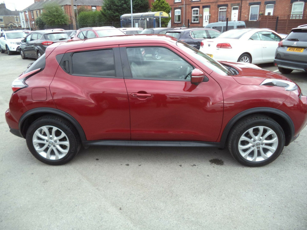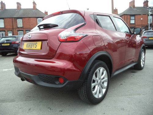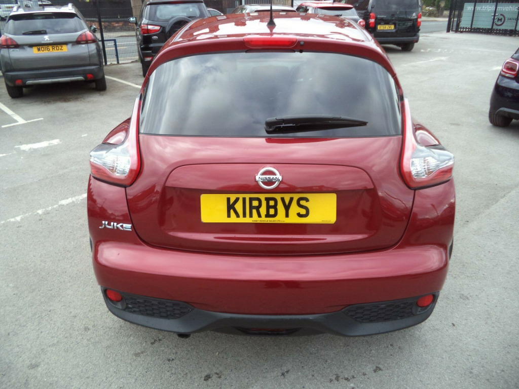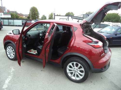 CAR: 57 IS OUR GENUINE LOW MILEAGE, NISSAN JUKE, 1.2 PETROL, FINISHED IN METALLIC MAGNETIC RED WITH CONTRASTING INTERIOR.BEEN A COMPACT SUV WITH 5 DOORS AND A MEDIUM BOOT MAKES THIS A PERFECT CHOICE FOR A FAMILY CAR, COMBINES PRACTICALITY WITH AFFORDABILITY.CAR COMES COMPLETE WITH SERVICE HISTORY.FEATURES INCLUDE: 17IN ALLOY WHEELS, AIR CONDITIONING, DAB RADIO/CD PLAYER, REAR REVERSING CAMERA AND 360 DEGREES CAMERA, HANDS FREE PHONE SYSTEM, BUILT IN SATELLITE NAVIGATION, STEERING WHEEL CONTROLS, CRUISE CONTROL, REAR PRIVACY GLASS, 4X ELECTRIC WINDOWS, BOOK PACK, 2X KEYS, PLUS MUCH MORE. 12 MONTHS MOT ON COMPLETION OF SALE CALL US TODAY ON 01226 750320 TO ARRANGE YOUR VIEWING / TEST DRIVE ALL PAYMENT METHODS WELCOME INCLUDING PART EXCHANGE AND LOW RATE FINANCE, RING OR DROP IN FOR MORE INFORMATION OR A TEST DRIVE, VIEW ALL OUR VEHICLES AT www.kirbysvehiclesales.co.uk ***THE VEHICLE WILL COME WITH A FULL 12 MONTH MOT AND A FULL VIDEO CAN BE PROVIDED OF THE VEHICLE UPON REQUEST DELIVERY ALSO AVAILABLE AT EXTRA COST***. 12V Socket - Front, 17in Alloy Wheels - Urban, 6 Speakers, 60-40 Split Rear Folding Seats, ABS - Anti Lock Brakes, AUX-In Socket, Air Vent Rings - Matching Centre Console, Airbag - Driver, Airbag - Front Passenger, Airbags - Curtain, Airbags - Side, Around View Monitor - 360 Bird-View, Auto Rain Sensing Wipers, Automatic Lighting System, Black Headliner, Blind Spot Warning, Body Coloured Door Mirrors, Body Coloured Handles, Brake Assist, Bumpers - Body Coloured, Chrome Interior Door Handles, Climate Control, Cruise Control, DAB Radio, Door Trim Finishers - Matching Centre Console, Driver Seat Height Adjustment, EBD - Electronic Brakeforce Distribution, ESP - Electronic Stability Programme, Electric Folding and Heated Door Mirrors, First Aid Kit, Front Armrest, Front Door Pockets with Drinks Bottle Holders, Front Dual Cupholders, Front Fog Lights, Front Map Reading Lights, Front Passenger Seatback Pockets, Front and Rear Electric Windows, Gear Knob - Insert Finisiher - Matching Centre Console, Gear Shift Indicator, Glovebox, Grey Centre Console-Door Trim Finishers, Head Restraints - Front, Head Restraints - Rear, High Visibility Jackets, ISOFIX Child Seat Anchoring Points, Immobiliser, Keyless Entry, LED Daytime Running Lights, Lane Departure Warning, Leather Gear Knob, Leather Steering Wheel, Moving Object Detection, Nissan Dynamic Control System, Passenger Airbag Cut-Off Switch, Pollen Filter, Power Assisted Steering, Puncture Repair Kit, Push Start-Stop Button, Radio-CD, Rear Door Child Locks, Rear Parking Camera, Rear Privacy Glass, Rear Tonneau Cover Integrated into Tailgate, Safety Kit, Safety Pack, Safety Shield, Satellite Navigation - Nissan Connect, Seats - Heated Front, Seats - Sports, Steering Wheel - Rake Adjustment, Steering Wheel Mounted Audio Controls, TPMS - Tyre Pressure Monitoring System, Telephone - Bluetooth Integration, Touch Screen - Colour 5.8in, Traction Control, Trip Computer, USB Port, Warning Triangle, Premium Leather - Grey with Red Centre Console and Black Exterior Pack. Part service history