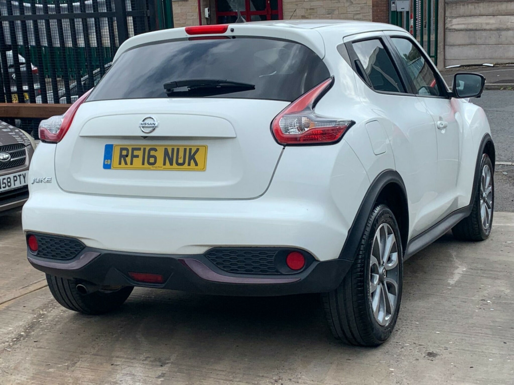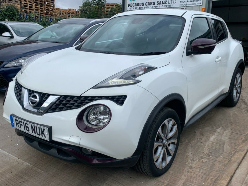 Nissan Juke 1.2 DIG-T Tekna Euro 6 (s/s) 5dr,With only one owner and very low mileage for its age at just 31,365 miles, this 2016 Nissan Juke 1.2L Petrol DIG-T Tekna represents a rare find. The Tekna trim adds a touch of luxury, with premium black leather seats complemented by a black centre console and Purple exterior pack. Enjoy the comfort of heated front seats and automatic climate control, while the pollen filter ensures a pleasant cabin environment. The vehicle benefits from a clear vehicle history check and partial service history, with the last service performed on 11th July 2025 at 31,300 miles. Parking is made easy with the colour 360 reversing camera and Safety Pack, which includes BLIS blind spot assistance and a 360-degree camera.This Euro 6 emission class Nissan Juke comes with a road-worthiness certificate valid until January 2026 and includes a 3-month warranty for added peace of mind. The low insurance group makes this car an economical choice, and with fuel economy of around 50 mpg, running costs are kept to a minimum. The low CO2 emissions mean that this vehicle is more environmentally friendly than many others in its class.For more cars please visit our website https://www.pegasuscarssale.co.uk/3 MONTHS FREE WARRANTY INCLUDED +++PART EXCHANGE WELCOME +++NATIONWIDE DELIVERY AVAILABLE++SAME DAY FINANCE AVAILABLE. WE ALSO PROVIDE A LONG MOT SO BUY WITH CONFIDENCE. 12,24 & 36 MONTHS EXTENDABLE WARRANTY AVAILABLE & THE OPTION OF DRIVE AWAY INSURANCE.ALL DEALER FACILITY ARE OFFERED & WE ARE OPEN 7 DAYS A WEEK. GREAT FINANCE PACKAGE AVAILABLE SO PLEASE INQUIRE WITH US. WE HAVE A DEDICATED AFTER SALES TEAM TO ASSIST WITH POST SALE INQUIRIES.FINANCE FROM A THIRD PARTY COMPANY WILL BE SUBJECT TO A £299 ADMINISTRATION FEE. PLEASE CONFIRM WITH A MEMBER OF STAFF FOR AN ACCURATE SPEC LIST AS THE DATA IS PULLED FROM AUTOTRADER AND NOT ALWAYS CORRECT.. 12V Socket - Front, 17in Alloy Wheels - Urban, 2 Speed Wiper with Variable Intermittent, 3 Adjustable Rear Head Restraints, 60-40 Split Rear Folding Seats, AUX Socket for MP3 Player, Airbag - Driver, Airbag - Front Passenger, Airbags - Curtain, Airbags - Side, Armrest - Coloured Stitching to Matching Centre Console, Automatic Climate Control with Pollen Filter, Automatic Lights and Wipers, Black Headliner, Body Coloured Handles, Body-Coloured Door Mirrors with LED Indicators, Boot Capacity with Flexi-Floor Board, Chrome Interior Door Handles, Colour Reversing Camera, Cruise Control with Speed Limiter, DAB and Internet Radio with 6 Speakers, Drive Computer with Temperature Gauge, ESP ABS EBD and Brake Assist, Electric Folding and Heated Door Mirrors, Engine Immobiliser, Front Armrest, Front Cupholders x2, Front Door Pockets with Drinks Bottle Holders, Front Fog Lights, Front Map Reading Lights, Front Seat Belt Height Adjustment, Front Seat Belts with Load Limiter and Pretensioners, Front and Rear Electric Windows, Gear Shift Indicator, Glovebox, Height Adjustable Driver Seat, ISOFIX Child Seat Anchoring Points, Intelligent Key with Start Push Button, LED Signature Daytime Running Lights, Leather Steering Wheel and Gear Knob, Nissan Dynamic Control System, NissanConnect, Passenger Airbag Cut-Off Switch, Power Assisted Steering - Speed Sensitive, Puncture Repair Kit, Rear Door Child Locks, Rear Privacy Glass, Rear Tonneau Cover Integrated into Tailgate, Rear Wiper with Intermittent, Safety Pack, Seats - Heated Front, Steering Wheel Mounted Audio Controls, TPMS - Tyre Pressure Monitoring System, Telephone - Bluetooth Integration, Tilt Adjustable Steering Wheel, Traction Control, USB Port, Premium Leather - Black with Black Centre Console and Black Exterior Pack. Part service history
