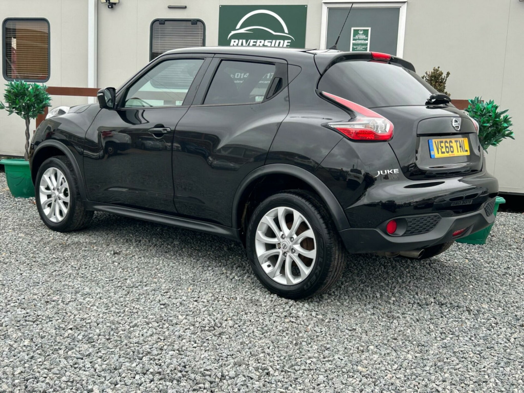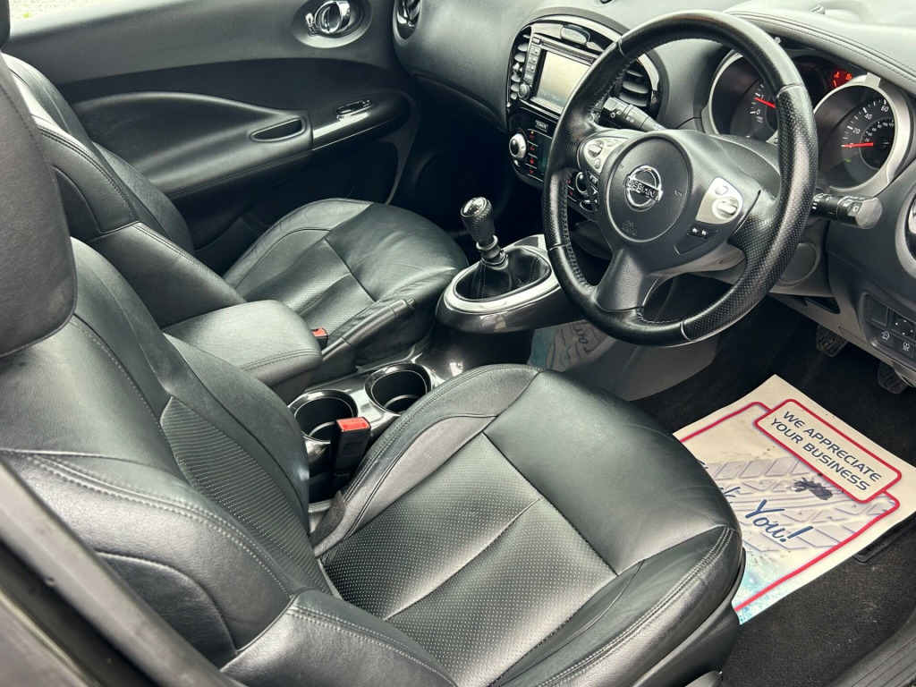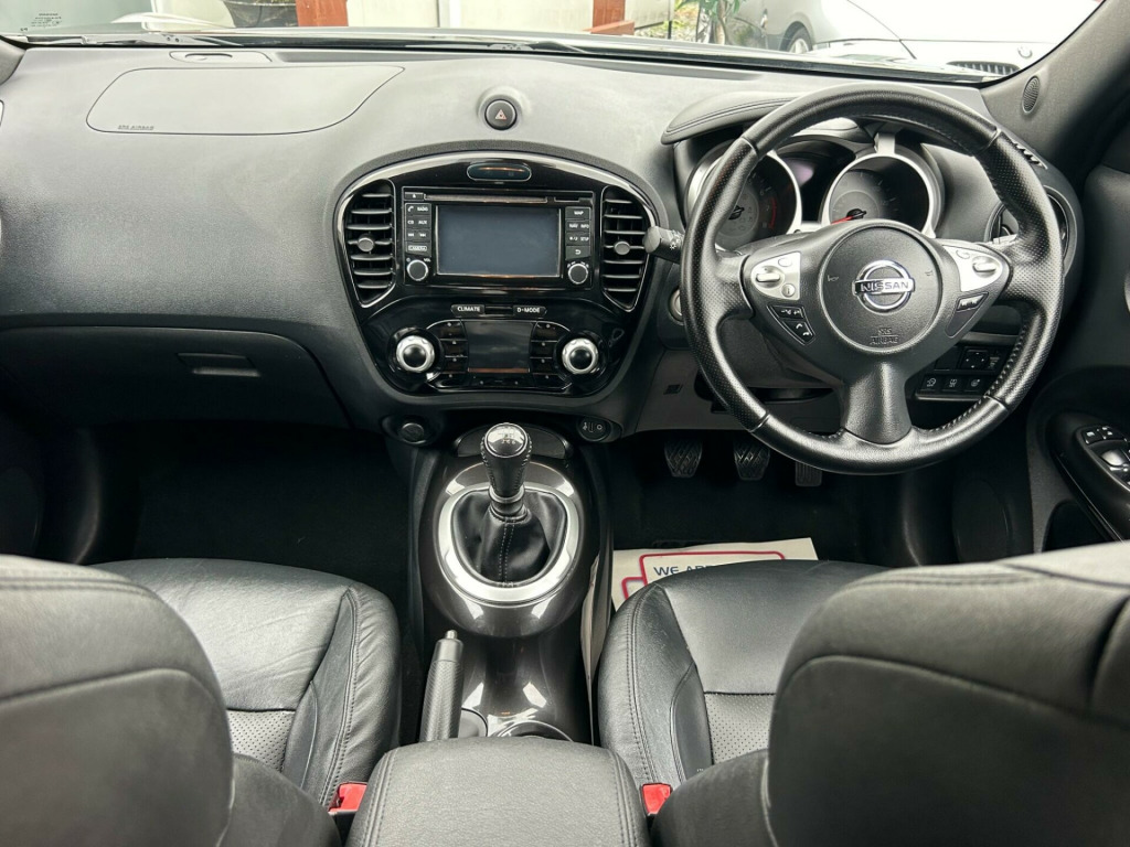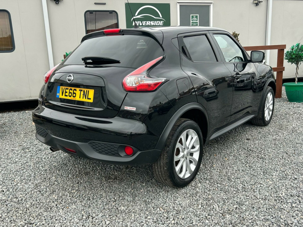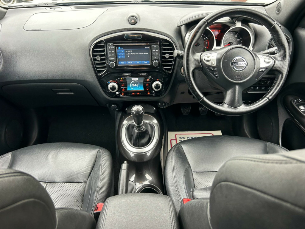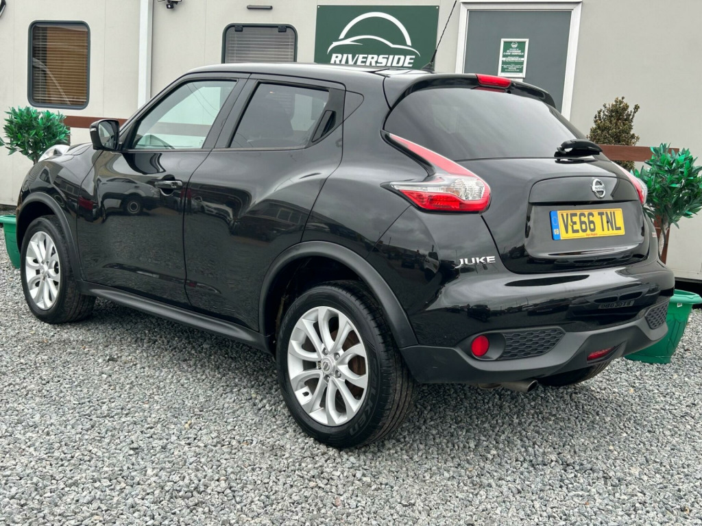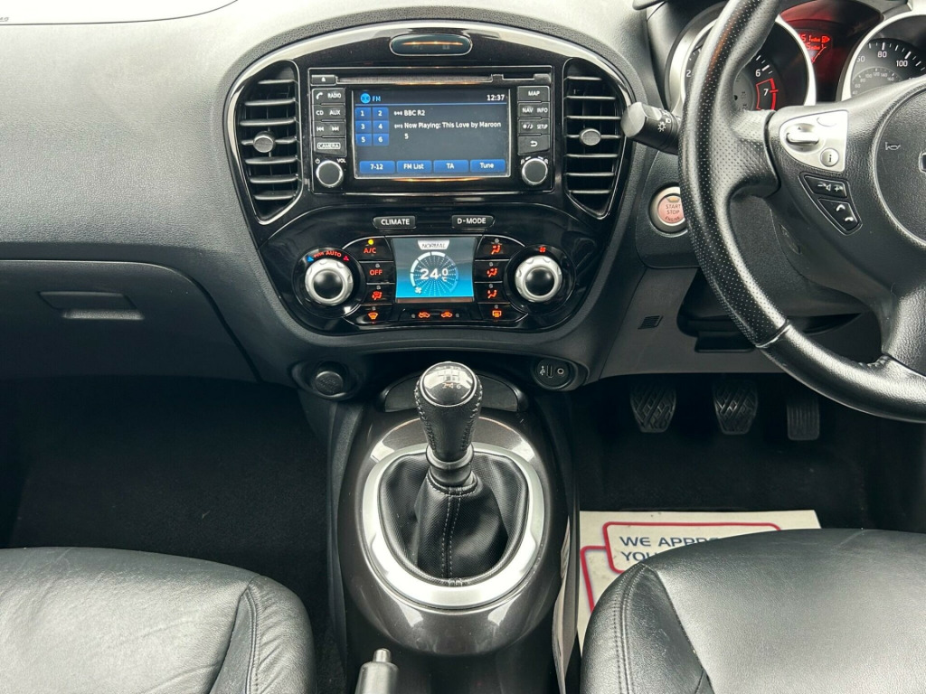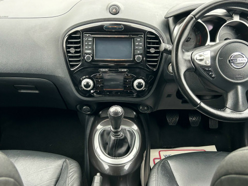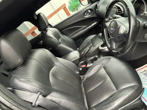 Finished In Black This 2016 Nissan Juke DIG-T Tekna is a superb example, having been owned by only two previous keepers. This stylish hatchback boasts a 1.2 litre petrol engine and meets Euro 6 emissions standards. Inside, you'll find the convenience of Intelligent Key with Start Push Button and Keyless Entry, allowing you to start the engine with the push of a button and unlock the doors without reaching for your keys. Stay connected on the go with Bluetooth integration for your telephone, and enjoy peace of mind with the comprehensive Safety Pack, which includes Blind Spot Assistance and a 360 degree camera for effortless parking. The Tekna trim also features heated front seats for added comfort and a colour reversing camera to assist with parking.This Nissan Juke offers excellent value, highlighted by its low insurance group, making it an economical choice for many drivers. You can also expect impressive fuel economy, achieving up to 50 miles per gallon, which is better than many similar vehicles. Furthermore, its low CO2 emissions contribute to a more environmentally friendly drive. These factors combined demonstrate how this Juke is a well considered option for those seeking a practical, feature packed, and cost effective compact car., v socket - front, 17in alloy wheels - urban, 2 speed wiper with variable intermittent, 3 adjustable rear head restraints, 60-40 split rear folding seats, aux socket for mp3 player, airbag - driver, airbag - front passenger, airbags - curtain, airbags - side, armrest - coloured stitching to matching centre console, automatic climate control with pollen filter, automatic lights and wipers, black headliner, body coloured handles, body-coloured door mirrors with led indicators, boot capacity with flexi-floor board, chrome interior door handles, colour reversing camera, cruise control with speed limiter, dab and internet radio with 6 speakers, drive computer with temperature gauge, esp abs ebd and brake assist, electric folding and heated door mirrors, engine immobiliser, front armrest, front cupholders x2, front door pockets with drinks bottle holders, front fog lights, front map reading lights, front seat belt height adjustment, front seat belts with load limiter and pretensioners, front and rear electric windows, gear shift indicator, glovebox, height adjustable driver seat, isofix child seat anchoring points, intelligent key with start push button, led signature daytime running lights, leather steering wheel and gear knob, nissan dynamic control system, nissanconnect, passenger airbag cut-off switch, power assisted steering - speed sensitive, puncture repair kit, rear door child locks, rear privacy glass, rear tonneau cover integrated into tailgate, rear wiper with intermittent, safety pack, seats - heated front, steering wheel mounted audio controls, tpms - tyre pressure monitoring system, telephone - bluetooth integration, tilt adjustable steering wheel, traction control, usb port