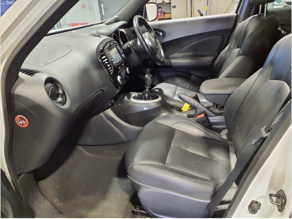 This 2016 Nissan Juke DIG-T Tekna offers exceptional value with its low mileage of just 47,000 miles and a clear vehicle history. This stylish hatchback boasts a 1.2 litre Euro 6 petrol engine and comes with a full service history, ensuring its excellent provenance. Inside, you'll find premium black leather upholstery complemented by a black centre console, while the striking white exterior pack adds a distinctive touch. The Tekna trim level includes a comfort pack featuring an opening panoramic sunroof, perfect for enjoying the open air.Further enhancing your driving experience, this Juke is equipped with a colour reversing camera for easy parking assistance and heated front seats for added comfort during colder months. Automatic climate control with a pollen filter ensures a pleasant cabin environment. This particular model stands out with its low insurance group, making it an economical choice. You can also expect impressive fuel economy of around 50 miles per gallon and low CO2 emissions, demonstrating its efficiency compared to many other vehicles in its class. With only two previous owners, this Juke represents a well maintained and attractive option. UV emium leather - black with black centre console and white exterior pack, comfort pack, 12v socket - front, 17in alloy wheels - urban, 2 speed wiper with variable intermittent, 3 adjustable rear head restraints, 60-40 split rear folding seats, aux socket for mp3 player, airbag - driver, airbag - front passenger, airbags - curtain, airbags - side, armrest - coloured stitching to matching centre console, automatic climate control with pollen filter, automatic lights and wipers, black headliner, body coloured handles, body-coloured door mirrors with led indicators, boot capacity with flexi-floor board, chrome interior door handles, colour reversing camera, cruise control with speed limiter, dab and internet radio with 6 speakers, drive computer with temperature gauge, esp abs ebd and brake assist, electric folding and heated door mirrors, engine immobiliser, front armrest, front cupholders x2, front door pockets with drinks bottle holders, front fog lights, front map reading lights, front seat belt height adjustment, front seat belts with load limiter and pretensioners, front and rear electric windows, gear shift indicator, glovebox, height adjustable driver seat, isofix child seat anchoring points, intelligent key with start push button, led signature daytime running lights, leather steering wheel and gear knob, nissan dynamic control system, nissanconnect, passenger airbag cut-off switch, power assisted steering - speed sensitive, puncture repair kit, rear door child locks, rear privacy glass, rear tonneau cover integrated into tailgate, rear wiper with intermittent, safety pack, seats - heated front, steering wheel mounted audio controls, tpms - tyre pressure monitoring system, telephone - bluetooth integration, tilt adjustable steering wheel, traction control, usb port