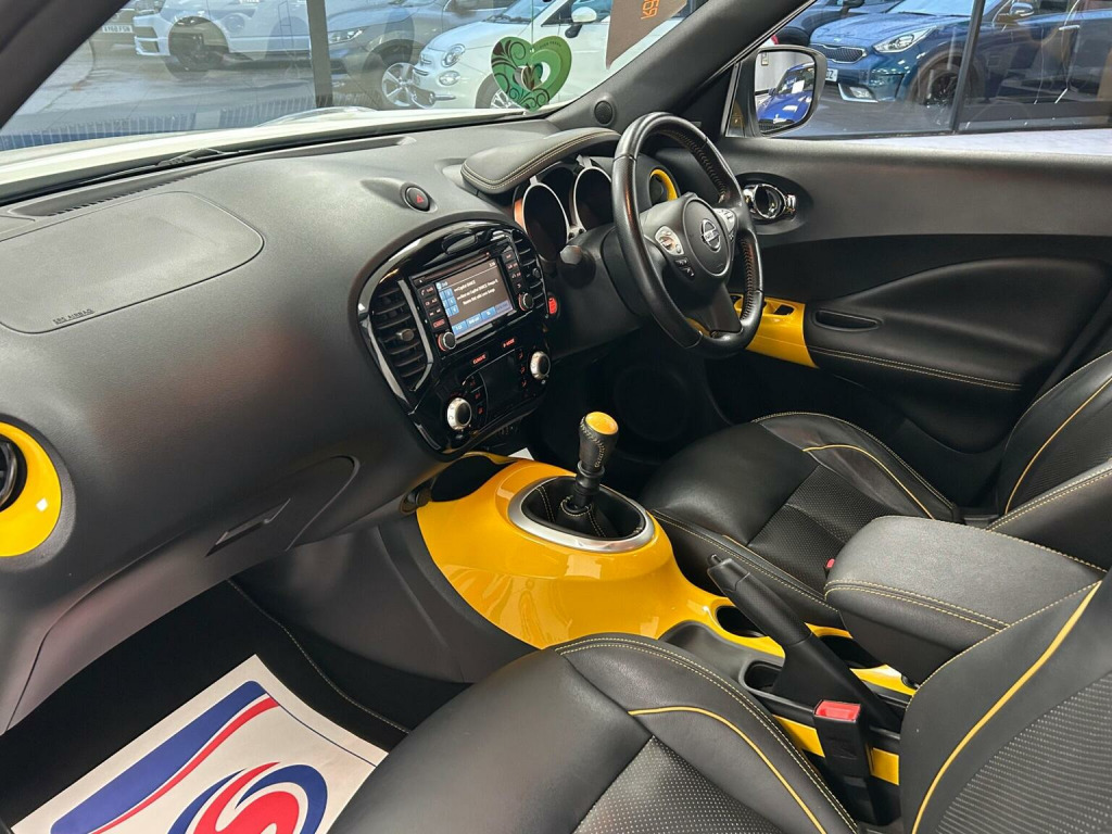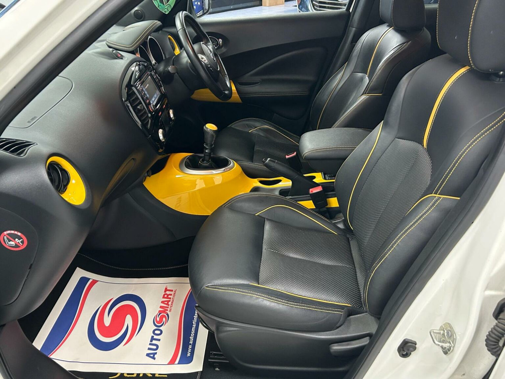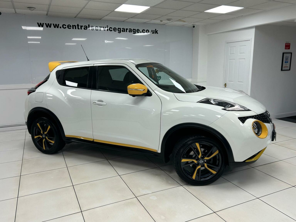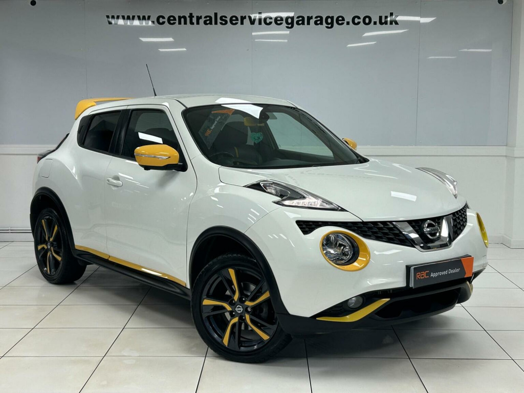 RESERVE & COLLECT - FREE 6 MONTH RAC WARRANTY - 2 OWNERS - BLIND SPOT MONITORS - SAT NAV - 360 CAMERAS - HEATED LEATHER - PRIVACY GLASS - LANE ASSIST - LOW RATE FINANCE DEALS AVAILABLE - Central Service Garage Are Delighted To Offer For Sale This Top Spec Stand Out Nissan Juke Finished In The White Paintwork With Contrasting Yellow Accents & Heated Black Leather Interior. This Juke Benefits From 2 Previous Services & We Have Just Had The Car MOTD, Serviced & Replaced The Front Brake Discs & Pads Making It Ready To Drive Away. This Tekna Model Has The Following Spec: Remote Central Locking, Unmarked Alloy Wheels, DAB Radio/CD, Sat Nav, Reverse & 360 Camera, BlueTooth Hands Free, DIG Sport Mode, Rear Privacy Glass, Multi Function Steering Wheel, Cruise Control, Climate Control, Blind Spot Monitors, Electric Windows & Folding Mirrors, Heated Seats. This Juke Really Does Represent Excellent Value For Money And It Needs To Be Seen To Fully Appreciate The Quality On Offer. Central Service Garage Is A Family Run Business & We Take Great Pride In The Cars We Offer For Sale - Nissan Juke For Sale Doncaster - £200 RESERVATION SECURES THIS CAR - RAC APPROVED DEALER - LOW RATE FINANCE & PCP DEALS AVAILABLE