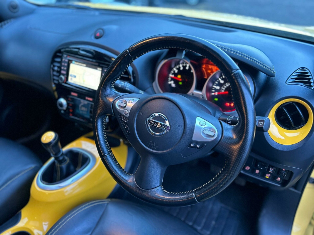 2 Former Keepers, Hpi Clear With Low Warranted Mileage, 2 Keys, Service History, ULEZ Compliant, MOT Until 20/01/2026, Interior And Exterior In Good Condition Throughout, Massive Tekna Specification With A Panoramic Sunroof (Open/Slide), 360° Camera, Satellite Navigation, Black Leather Sport Interior With Heated Front Seats, Yellow-Accented Dashboard Trim, Rear Privacy Glass, Electric Power Folding Wing Mirrors, Telephone And Audio Bluetooth, Alloy Wheels With Good Tyres All Around, Cruise Control, LED Daytime Running Lights (DRL), Blind Spot Monitoring, Colour Information Touch Screen Display, Automatic Headlights And Wiper Blades, DAB Radio, Leather Trimmed Multi-Functional Steering Wheel, Auto Climate Control With Air Conditioning, 4 x Electric Windows And Electric Door Side Mirrors, Isofix Points, Centre Console Plus All The Standard Features Of A Nissan Juke 1.2 DIG-T Tekna, ALL CARS CONSIDERED IN PART EXCHANGE , PLEASE CALL TO BOOK INSPECTIONS/TEST DRIVES , LINES OPEN TILL LATE, EXTENDED WARRANTY AVAILABLE , TOP RATED COMPANY FOR OVER 7 YEARS - BUY WITH CONFIDENCE , ALSO DELIVERING NATIONWIDE. 12V Socket - Front, 17in Alloy Wheels - Urban, 2 Speed Wiper with Variable Intermittent, 3 Adjustable Rear Head Restraints, 60-40 Split Rear Folding Seats, AUX Socket for MP3 Player, Airbag - Driver, Airbag - Front Passenger, Airbags - Curtain, Airbags - Side, Armrest - Coloured Stitching to Matching Centre Console, Automatic Climate Control with Pollen Filter, Automatic Lights and Wipers, Black Headliner, Body Coloured Handles, Body-Coloured Door Mirrors with LED Indicators, Boot Capacity with Flexi-Floor Board, Chrome Interior Door Handles, Colour Reversing Camera, Cruise Control with Speed Limiter, DAB and Internet Radio with 6 Speakers, Drive Computer with Temperature Gauge, ESP ABS EBD and Brake Assist, Electric Folding and Heated Door Mirrors, Engine Immobiliser, Front Armrest, Front Cupholders x2, Front Door Pockets with Drinks Bottle Holders, Front Fog Lights, Front Map Reading Lights, Front Seat Belt Height Adjustment, Front Seat Belts with Load Limiter and Pretensioners, Front and Rear Electric Windows, Gear Shift Indicator, Glovebox, Height Adjustable Driver Seat, ISOFIX Child Seat Anchoring Points, Intelligent Key with Start Push Button, LED Signature Daytime Running Lights, Leather Steering Wheel and Gear Knob, Nissan Dynamic Control System, NissanConnect, Passenger Airbag Cut-Off Switch, Power Assisted Steering - Speed Sensitive, Puncture Repair Kit, Rear Door Child Locks, Rear Privacy Glass, Rear Tonneau Cover Integrated into Tailgate, Rear Wiper with Intermittent, Safety Pack, Seats - Heated Front, Steering Wheel Mounted Audio Controls, TPMS - Tyre Pressure Monitoring System, Telephone - Bluetooth Integration, Tilt Adjustable Steering Wheel, Traction Control, USB Port.