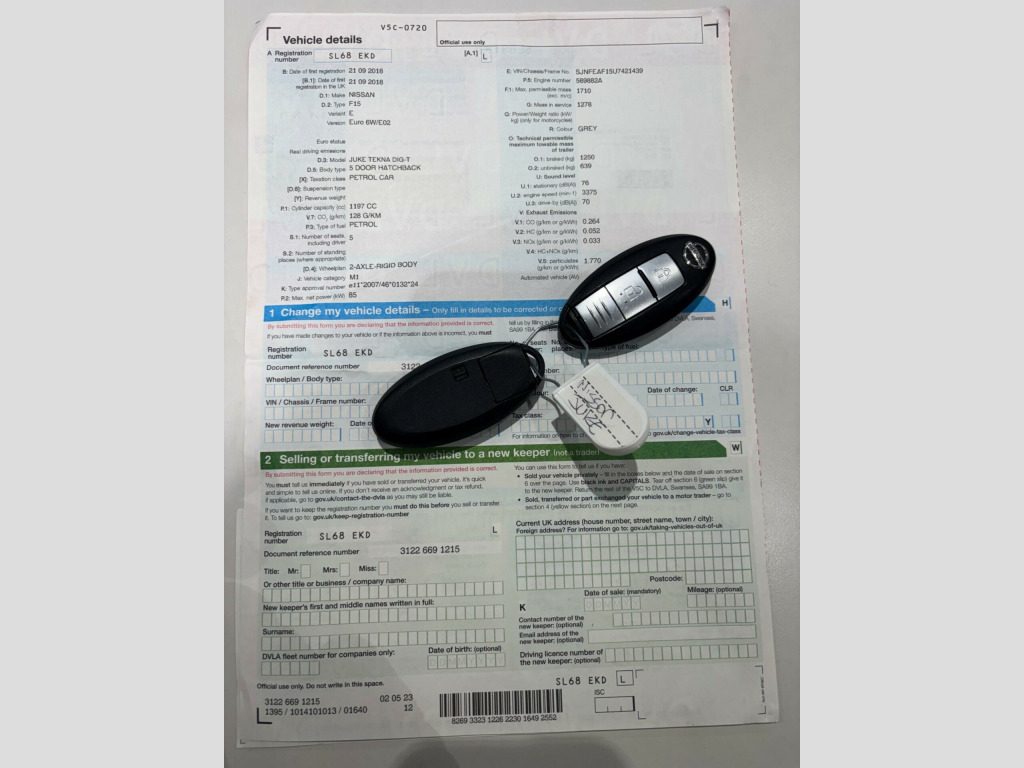 Discover this 2018 Nissan Juke DIG-T Tekna, a stylish and practical choice for any driver. This Euro 6 compliant model boasts a responsive 1.2L petrol engine and comes equipped with a suite of advanced features designed for your convenience and safety. Navigate tight spaces with ease thanks to the 360 Degree Around View Monitor, which includes a colour reversing camera and parking assistance. Stay aware of your surroundings with the Blind Spot Warning system, and enjoy seamless connectivity with Bluetooth integration for your telephone. Automatic headlights with a dusk sensor ensure optimal visibility in all conditions.This Juke Tekna offers excellent running costs, achieving an impressive highlight of 50 mpg, making it an economical option for your daily journeys. Its low CO2 emissions and low insurance group further highlight its cost effectiveness compared to similar vehicles. This combination of fuel efficiency, safety technology, and affordability makes the 2018 Nissan Juke DIG-T Tekna a compelling proposition.. 12V Socket - Front, 17in Alloy Wheels - Urban, 3 Adjustable Rear Head Restraints, 360 Degree Around View Monitor, 6 Airbags, 60-40 Split Rear Folding Seats, AM-FM-CD Audio System, AUX Socket for MP3 Player, Automatic Climate Control with Pollen Filter, Automatic Headlights - Dusk Sensor, BOSE Personal Sound System, Black Headliner, Blind Spot Warning, Body Coloured Door Mirrors, Body Coloured Handles, Chrome Interior Door Handles, Colour Reversing Camera, Cruise Control with Speed Limiter, DAB Radio, Dark Chrome Grille, Door Mirrors with LED Indicators, Door-Boot Open Warning Light, Drive Computer with Temperature Gauge, Driver and Passenger Sun Visor with Vanity Mirror, ESP ABS EBD and Brake Assist, Electric Folding and Heated Door Mirrors, Electric Front Windows with Driver One-Touch, Engine Immobiliser, Flexi-Board Boot Storage System, Front Armrest, Front Cupholders x2, Front Door Pockets with Drinks Bottle Holders, Front Map Reading Lights, Front Seat Belt Height Adjustment, Front Seat Belts with Load Limiter and Pretensioners, Gear Shift Indicator, Glovebox, Heated Rear Windscreen, Height Adjustable Driver Seat, ISOFIX Child Seat Anchoring Points, Intelligent Key - iKey- with Start Push Button, Interior Courtesy Light Operated by All Doors, Interior Personalisation - Energy Orange, Interior Personalisation - Enigma Black, Interior Personalisation - Power Blue, LED Daytime Running Lights, LED Front Fog Lights, Lane Departure Warning, Leather Steering Wheel and Gear Knob, Low Fuel Level Warning Light, Moving Object Detection, Nissan Dynamic Control System, NissanConnect, Oil Level Gauge, Outside Temperature Gauge, Passenger Airbag Cut-Off Switch, Power Assisted Steering - Speed Sensitive, Puncture Repair Kit, Rain Sensing Windscreen Wipers, Rear Courtesy Lights, Rear Door Child Locks, Rear Electric Windows, Rear Privacy Glass, Rear Tonneau Cover Integrated into Tailgate, Rear Wiper with Intermittent, Rev Counter, Seats - Heated Front, Steering Wheel Mounted Audio Controls, TPMS - Tyre Pressure Monitoring System, Telephone - Bluetooth Integration, Tilt Adjustable Steering Wheel, Trip Computer, USB Port. Full dealership history