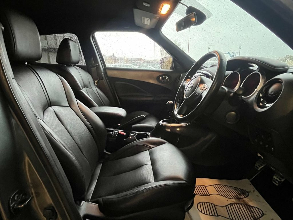Moto Vation Car Sales are offering this Nissan Juke in a great colour- Grey with full Black leather interior. Reasonable miles for the age- 80K and with only two previous owners from new, it is clear it has been loved. Would make a great first time car with its low running and insurance costs. Supplied with a Full Years MOT and Service History attached- last in our Service Centre in 11/25. Bosting a great specification including a Multi Functional Steering Wheel, AUX, USB, 18" Alloys, Heated Seats, Keyless Entry, Auto Headlghts, Bluetooth, Sat Nav, Reverse Camera, Cruise Control, Start/ Stop and Isofix. £195 annual tax. Please confirm with a Sales Executive the amount of keys this vehicle comes with. All of our vehicles come with a 3 months Nationwide warranty and a 12 months basic AA breakdown cover. Please read our reviews! Please note- the above vehicle specification is confirmed and correct. The vehicle specification listed elsewhere may sometimes be inaccurate so please check with the Sales team when enquiring to clarify this prior to purchase. Premium Leather - Black with Black Centr, Gun Metallic, 12V Socket - Front, 18in Alloy Wheels, 2 Speed Wiper with Variable Intermittent, 3 Adjustable Rear Head Restraints, 60-40 Split Rear Folding Seats, AUX Socket for MP3 Player, Airbag - Driver, Airbag - Front Passenger, Airbags - Curtain, Airbags - Side, Armrest - Coloured Stitching to Matching, Automatic Climate Control with Pollen Fi, Automatic Lights and Wipers, Black Headliner, Body Coloured Handles, Boot Capacity with Flexi-Floor Board, Chrome Interior Door Handles, Colour Reversing Camera, Cruise Control with Speed Limiter, DAB and Internet Radio with 6 Speakers, Drive Computer with Temperature Gauge, ESP ABS EBD and Brake Assist, E