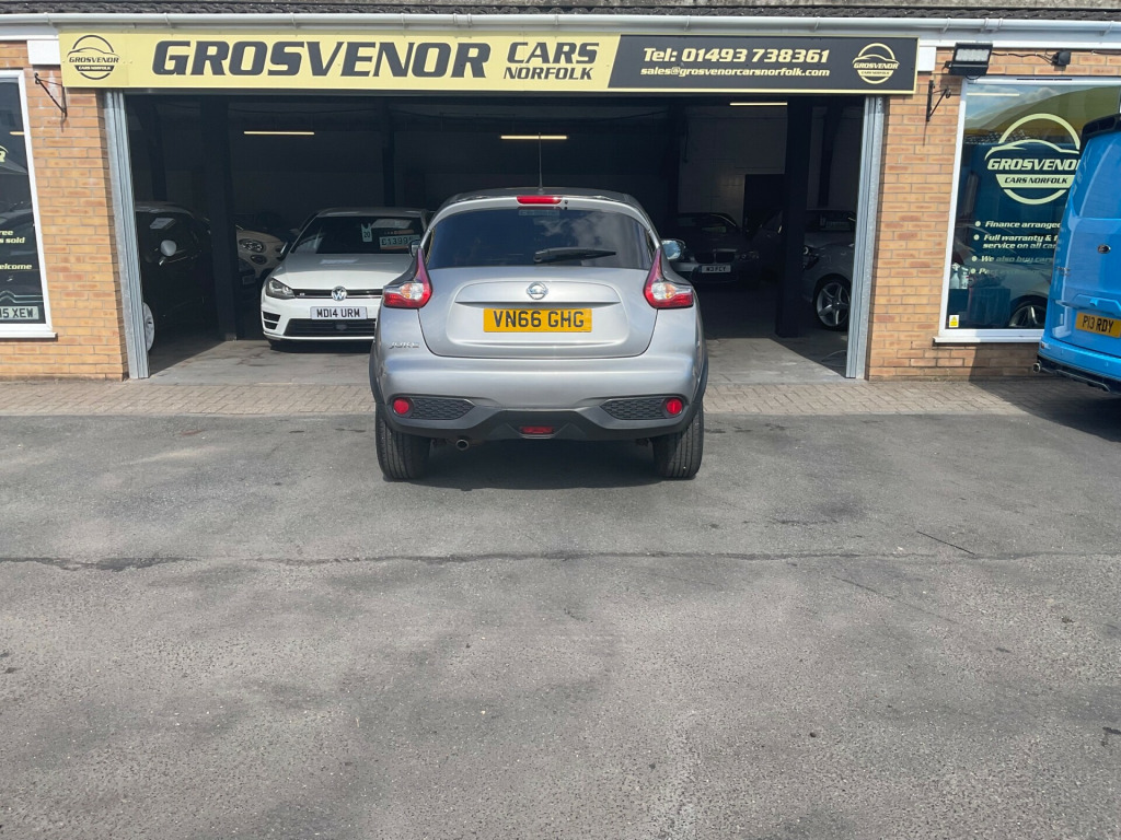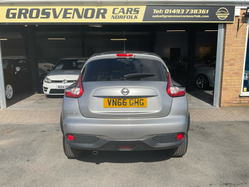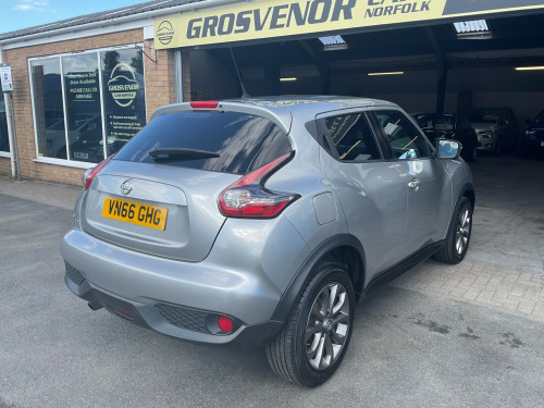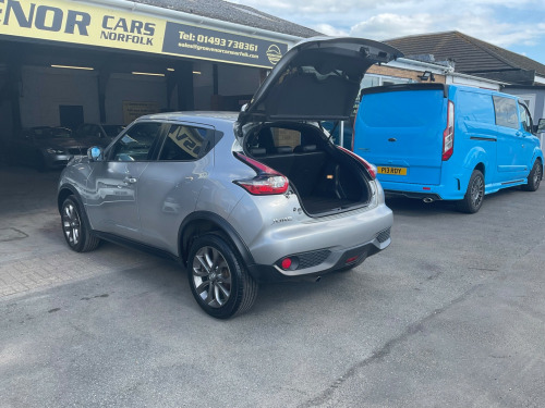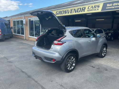 This 2016 Nissan Juke 1.2 DIG-T Tekna SUV with 55000 miles on the clock is the perfect family vehicle, offering 5 seats and 5 doors for easy access. Powered by a reliable petrol engine, this car is ULEZ compliant and comes with an MOT valid until 23/05/2026. Its Euro 6 (s/s) emissions rating ensures it meets the latest environmental standards. Equipped with modern features such as DAB and Internet Radio with 6 speakers, NissanConnect, and Bluetooth Integration, it provides a comfortable and connected driving experience. With its spacious interior and stylish design, this SUV is a practical and sleek choice for anyone in the market for a reliable and efficient vehicle.At Grosvenor Cars Norfolk all our customers have the added peace of mind that all our vehicles are supplied with a minimum of 8 months mot, sales service, pre delivery inspection & 6 months parts & labour warranty for total peace of mind. We also have our own workshop facilities on site with use of free courtesy cars available. Part exchange welcome & finance available. We offer both PCP and Hire Purchase agreements, please call us for a free quotation or more information. All our vehicles have vast specifications, in most cases, far too much too list, so please always check the vehicles exact specification prior to purchase. We always have at least 30 vehicles in stock to choose from. For more information, please call 01493 738361 or visit our website www.grosvenorcarsnorfolk.co.uk v socket - front, aux socket for mp3 player, dab and internet radio with 6 speakers, nissanconnect, telephone - bluetooth integration, usb port, 17in alloy wheels - urban, body coloured handles, body-coloured door mirrors with led indicators, electric folding and heated door mirrors, front and rear electric windows, puncture repair kit, rear privacy glass, 2 speed wiper with variable intermittent, 3 adjustable rear head restraints, 60-40 split rear folding seats, armrest - coloured stitching to matching centre console, automatic climate control with pollen filter, black headliner, boot capacity with flexi-floor board, chrome interior door handles, front armrest, front cupholders x2, front door pockets with drinks bottle holders, front map reading lights, glovebox, height adjustable driver seat, leather steering wheel and gear knob, rear tonneau cover integrated into tailgate, seats - heated front, steering wheel mounted audio controls, tilt adjustable steering wheel, airbag - driver, airbag - front passenger, airbags - curtain, airbags - side, esp abs ebd and brake assist, engine immobiliser, front seat belt height adjustment, front seat belts with load limiter and pretensioners, isofix child seat anchoring points, intelligent key with start push button, passenger airbag cut-off switch, rear door child locks, rear wiper with intermittent, safety pack, traction control, automatic lights and wipers, front fog lights, led signature daytime running lights, colour reversing camera, cruise control with speed limiter, drive computer with temperature gauge, gear shift indicator, nissan dynamic control system, power assisted steering - speed sensitive, tpms - tyre pressure monitoring system