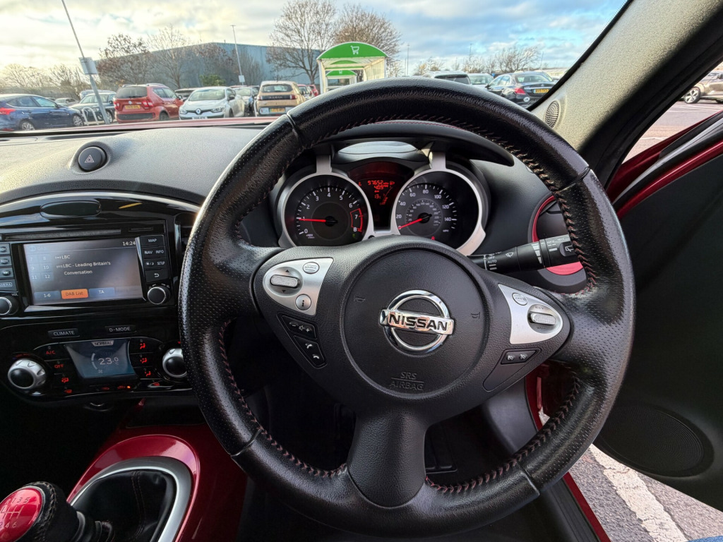 For sale is a 2018 Nissan Juke 1.2 DIG-T Tekna SUV with 97000 miles on the clock, running on petrol and with an MOT that expires on 18/02/2026. This 5-door, 5-seat vehicle is ULEZ compliant, making it ideal for city driving. The SUV is equipped with a manual transmission and Euro 6 (s/s) engine generating 115 ps. With its spacious interior and stylish exterior, this Juke offers a comfortable and enjoyable driving experience. Heated seats and one farmer keeper. A reliable choice for those seeking a fuel-efficient and practical vehicle, this Nissan Juke is ready for its next owner., Our top priority is always to ensure we provide the utmost quality support, and guidance to our customers to make their decisions accordingly.