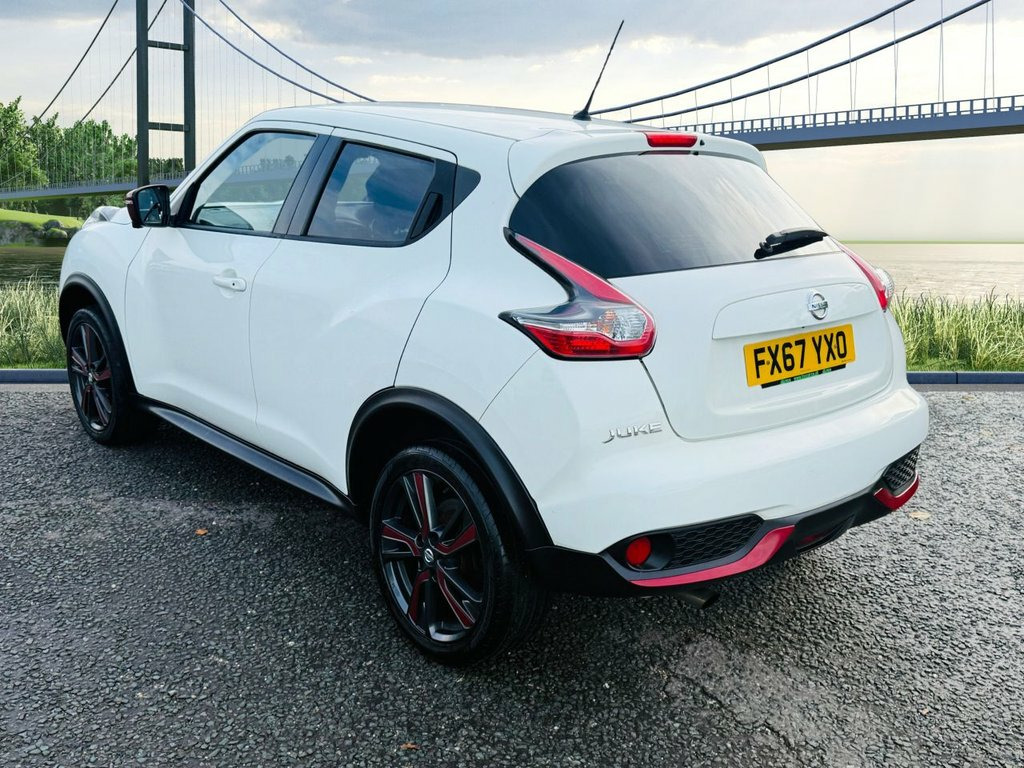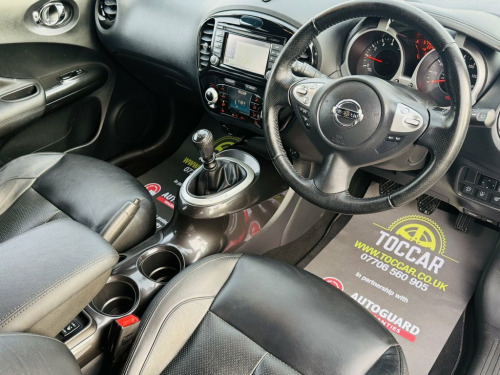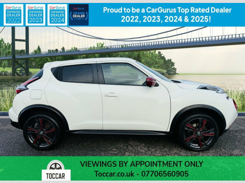 We are pleased to offer this Nissan Juke 1.2 DIG-T Tekna SUV in White. This stylish hatchback is equipped with a 1.2 litre petrol engine and meets Euro 6 emissions standards. Inside, you'll find comfortable heated front seats and automatic climate control with a pollen filter to keep the cabin pleasant. For convenience and safety, it features an intelligent key with a push button start, keyless entry, a colour reversing camera, and a comprehensive safety pack including blind spot assistance and a 360 degree camera system. The Nissan Juke DIG-T Tekna stands out with its impressive fuel economy, achieving up to 50 miles per gallon, which is better than many similar vehicles. It also benefits from a low insurance group, making it an economical choice for many drivers. Furthermore, its low CO2 emissions indicate a more environmentally friendly performance compared to other cars in its class. We will supply this car with an MOT (no advisories) and service carried out by an approved service centre. For further peace of mind an Autoguard Warranty is available to purchase. Viewing is by appointment please. Part-ex welcome. Finance available. Please see our quality used vehicles at www.toccar.co.uk 12V Socket - Front, AUX Socket for MP3 Player, DAB and Internet Radio with 6 Speakers, NissanConnect, Telephone - Bluetooth Integration, USB Port, 17in Alloy Wheels - Urban, Body Coloured Handles, Body-Coloured Door Mirrors with LED Indi, Electric Folding and Heated Door Mirrors, Front and Rear Electric Windows, Puncture Repair Kit, Rear Privacy Glass, 2 Speed Wiper with Variable Intermittent, 3 Adjustable Rear Head Restraints, 60-40 Split Rear Folding Seats, Armrest - Coloured Stitching to Matching, Automatic Climate Control with Pollen Fi, Black Headliner, Boot Capacity with Flexi-Floor Board, Chrome Interior Door Handles, Front Armrest, Front Cupholders x2, Front Door Pockets with Drinks