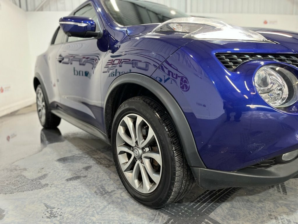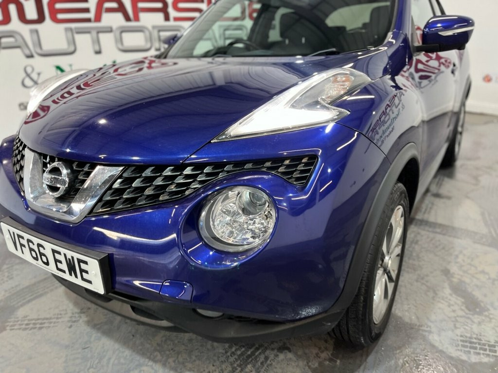 Nissan Juke 1.2 DIG-T Tekna SUV 5dr Petrol Manual Euro 6 (s/s) (115 PS). A well-equipped example supplied with two keys. This high-spec Tekna model includes alloy wheels, privacy glass, keyless start, folding door mirrors, blind-spot monitoring, automatic lights, cruise control, Bluetooth, DAB radio, satellite navigation, surround-view and reversing cameras, full leather interior, heated front seats and climate control. A stylish and compact SUV offering great comfort, technology and efficiency. 12V Socket - Front, 17in Alloy Wheels - Urban, 2 Speed Wiper with Variable Intermittent, 3 Adjustable Rear Head Restraints, 60-40 Split Rear Folding Seats, AUX Socket for MP3 Player, Airbag - Driver, Airbag - Front Passenger, Airbags - Curtain, Airbags - Side, Armrest - Coloured Stitching to Matching, Automatic Climate Control with Pollen Fi, Automatic Lights and Wipers, Black Headliner, Body Coloured Handles, Body-Coloured Door Mirrors with LED Indi, Boot Capacity with Flexi-Floor Board, Chrome Interior Door Handles, Colour Reversing Camera, Cruise Control with Speed Limiter, DAB and Internet Radio with 6 Speakers, Drive Computer with Temperature Gauge, ESP ABS EBD and Brake Assist, Electri