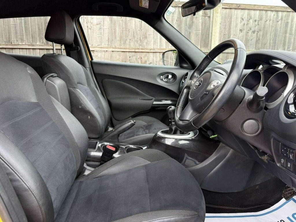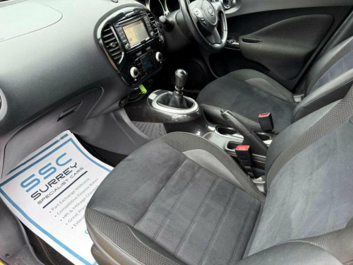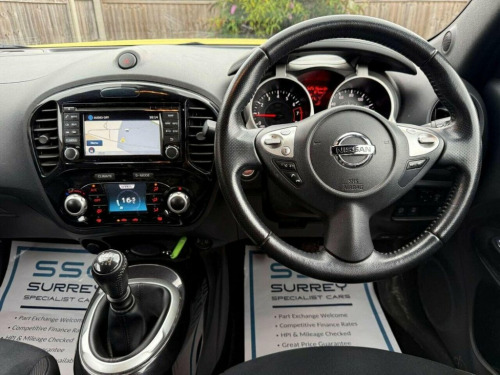 Surrey Specialist Cars are proud to present our lovely Nissan Juke N-Connecta DIG-T. This amazing car comes with Service History, finished in stunning metallic yellow with half leather seats. The car has a MOT until January 2026 so it is ready to go. The 1.2 Petrol engine offers great economy at over 50 MPG on combined cycle. Features Include Multifunction Steering Wheel, Trip Computer, Satellite Navigation, Parking Camera, Speed Limiter, Cruise Control, Stereo/Phone Control, Touch Screen, FM/DAB Radio, CD Player, Bluetooth Audio, AUX Input, Climate Control, Drive Mode Selector, USB Input, 12V Charging Socket, Electric Windows, 6 Speed Manual Gearbox, 17 Inch Alloy Wheels and two Remote Control Keys to name a few. We are open 7 days a week, and prepare all of our cars to the highest standards. We have a Click & Collect option available, and can also arrange delivery on request. All cars are HPI clear and a full history report is provided with every car. We welcome any inspection and viewing is highly recommended. All cars are available with our AA warranty starting from just ?150 for 3 months. Debit and credit card facilities are available and we offer competitive finance packages. If you have any questions or would like to view any of our cars give us a call or drop us a message on whatsapp 01483 363 144 to arrange an appointment with one of our team. We also offer full bespoke walkaround videos on request. We are always on the lookout for high quality stock, if you have 12V Socket - Front, 17in Alloy Wheels - Sport, 2 Speed Wiper with Variable Intermittent, 3 Adjustable Rear Head Restraints, 60-40 Split Rear Folding Seats, AUX Socket for MP3 Player, Airbag - Driver, Airbag - Front Passenger, Airbags - Curtain, Airbags - Side, Automatic Climate Control with Pollen Fi, Automatic Lights and Wipers, Black Headliner, Body Coloured Handles, Body-Coloured Door Mirrors with LED Indi, Boot Capacity with Flexi-Floor Board, Chrome Interior Door Handles, Colour Reversing Camera, Cruise Control with Speed Limiter, DAB and Internet Radio with 6 Speakers, Drive Computer with Temperature Gauge, ESP ABS EBD and Brake Assist, Electric Folding and Heated Door Mirrors, Engine