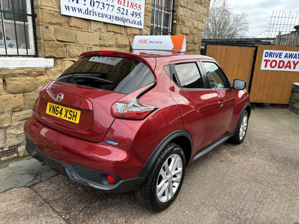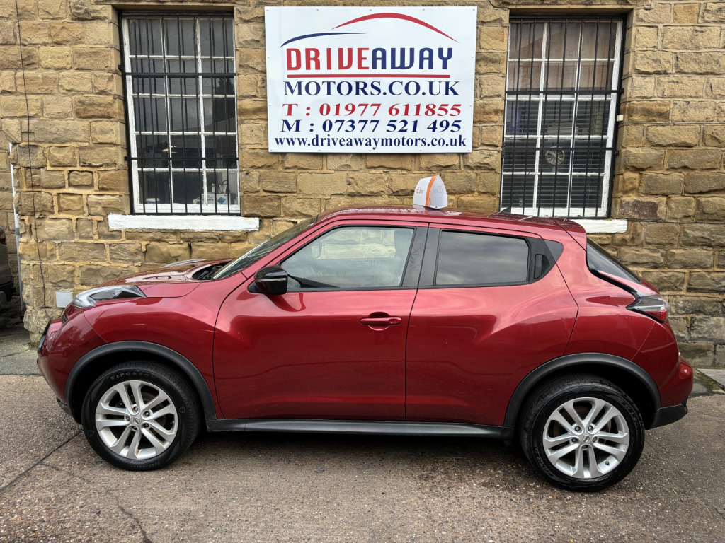 2014 NISSAN JUKE 1.5 DIESEL 5 DOOR RED, 12 MONTHS MOT (NO ADVISORIES), OIL & FILTER SERVICE, £20 ROAD TAX, EXCELLENT CONDITION THROUGHOUT, 12 MONTHS FREE RAC ROADSIDE COVER, RAC PLATINUM WARRANTY, PROFESSIONALLY VALETED, CLEAR ON EXPERIAN, £100 DEPOSIT SECURES THIS VEHICLE, DRIVEAWAY TODAY! Driveaway Motors is centrally located in the village of Ackworth, West Yorkshire, WF7 7HY, close to Doncaster, Barnsley, Wakefield, Pontefract and Castleford, Excellent reviews, Established 2011, Over 20 vehicles in stock, Finance available with no deposit, Extended warranty available, Part exchange considered, New vehicles arriving daily please visit driveawaymotors.co.uk, If you require any further information then please do not hesitate to contact us, Next MOT due 01/01/2027, Last serviced on 19/12/2025 at 72,906 miles, Part service history, 5 seats, Red, Any inspection, viewing or test drive welcome, £4,500. , This car comes with:, 12V Socket - Front, 17in Alloy Wheels - Sport, 6 Speakers, 60-40 Split Rear Folding Seats, ABS - Anti Lock Brakes, AUX-In Socket, Air Vent Rings - Matching Centre Console, Black Headliner, Body Coloured Door Mirrors, Body Coloured Handles, Brake Assist, Bumpers - Body Coloured, Chrome Interior Door Handles, Climate Control, Cruise Control, DAB Radio, Door Trim Finishers - Matching Centre Console, Driver Seat Height Adjustment, EBD - Electronic Brakeforce Distribution, ESP - Electronic Stability Programme, Electric Door Mirrors, Front Armrest, Front Door Pockets with Drinks Bottle Holders, Front Dual Cupholders, Front Fog Lights, Front Map Reading Lights, Front Passenger Seatback Pockets, Front and Rear Electric Windows, Gear Knob - Insert Finisiher - Matching Centre Console, Gear Shift Indicator, Glovebox, Grey Centre Console-Door Trim Finishers, Head Restraints - Front, Head Restraints - Rear, High Visibility Jackets, ISOFIX Child Seat Anchoring Points, Immobiliser, LED Daytime Running Lights, Leather Gear Knob, Leather Steering Wheel, Nissan Dynamic Control System, Passenger Airbag Cut-Off Switch, Pollen Filter, Power Assisted Steering, Puncture Repair Kit, Radio-CD, Rear Door Child Locks, Rear Parking Camera, Rear Privacy Glass, Rear Tonneau Cover Integrated into Tailgate, Remote Central Locking, Safety Kit, Satellite Navigation - Nissan Connect, Seats - Sports, Steering Wheel - Rake Adjustment, Steering Wheel Mounted Audio Controls, TPMS - Tyre Pressure Monitoring System, Telephone - Bluetooth Integration, Touch Screen - Colour 5.8in, Traction Control, Trip Computer, USB Port, Warning Triangle.
