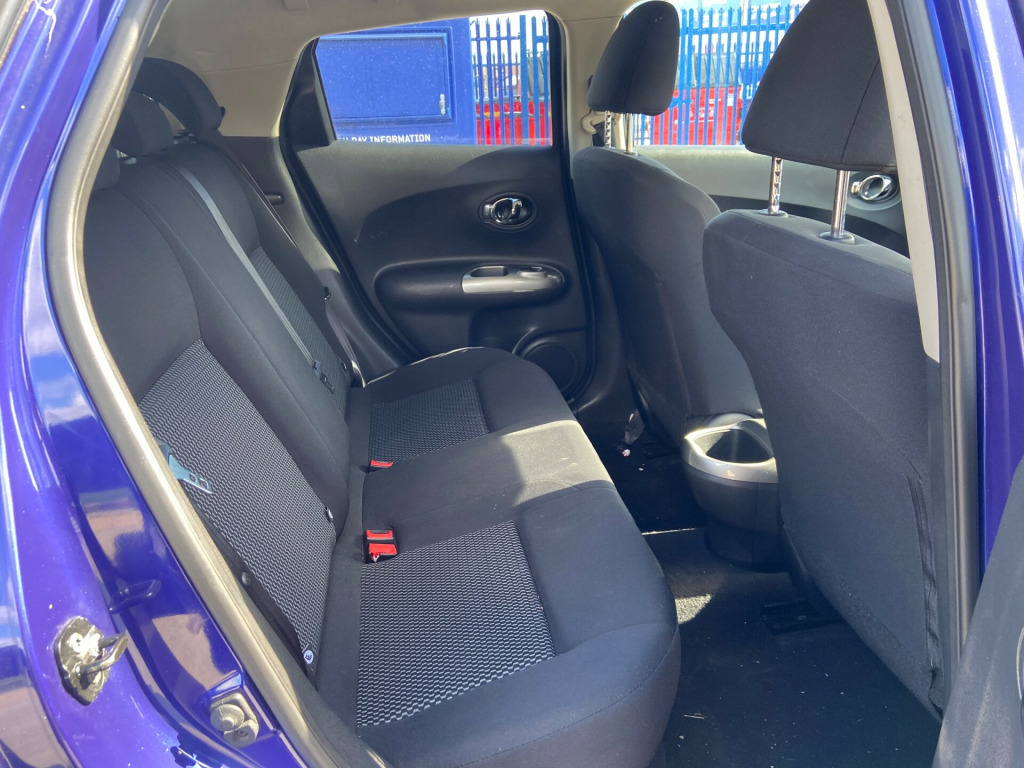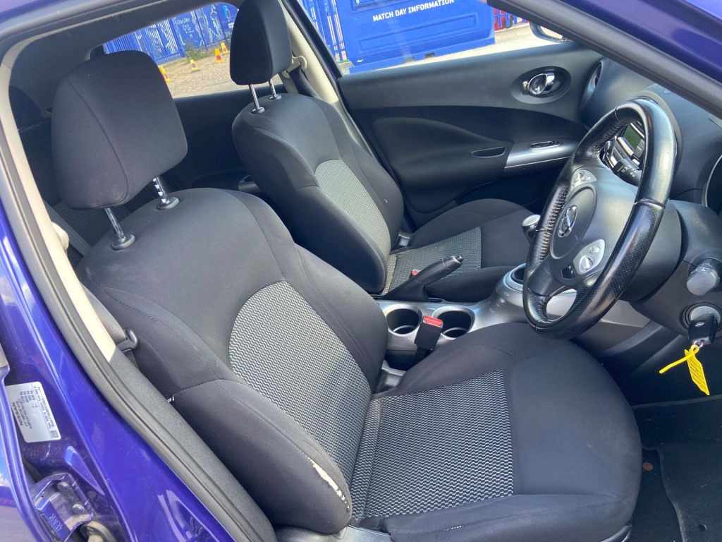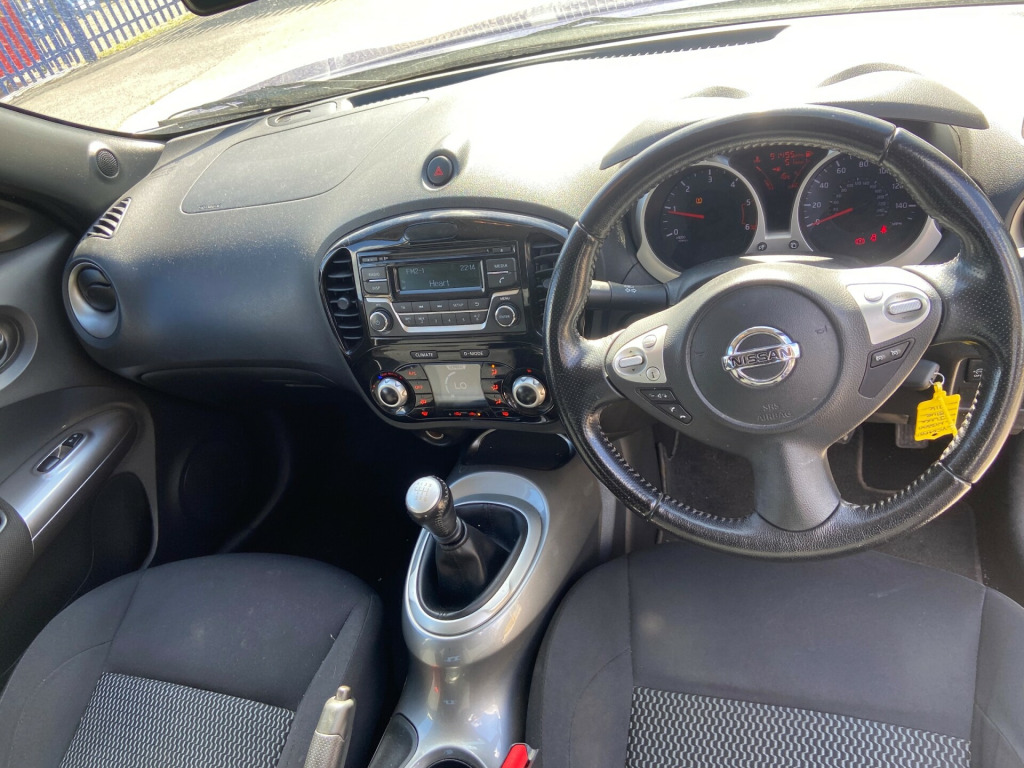This 2014 Nissan Juke 1.5 dCi 8v Acenta SUV with a powerful 110 ps diesel engine has driven 91981 miles and comes with a valid MOT until 17/12/2025. The spacious SUV features 5 doors, 5 seats, and includes convenient amenities such as a 12V Socket in the front, AUX-In Socket, Radio-CD, and 4 speakers. Additionally, the car is equipped with Bluetooth Integration, making it easy to stay connected while on the road. With its reliable diesel engine and ample seating capacity, this Nissan Juke is perfect for both city driving and long-distance journeys.Please ask about our incredible offers on our warranties. v socket - front, aux-in socket, radio-cd, speakers x4, telephone - bluetooth integration, usb port, 17in alloy wheels - sport, body coloured door mirrors, body coloured handles, bumpers - body coloured, electric door mirrors, front and rear electric windows, puncture repair kit, rear privacy glass, 60-40 split rear folding seats, chrome interior door handles, climate control, driver seat height adjustment, front door pockets with drinks bottle holders, front dual cupholders, front map reading lights, front passenger seatback pockets, glovebox, grey centre console-door trim finishers, head restraints - front, head restraints - rear, headliner - grey, leather gear knob, leather steering wheel, pollen filter, rear tonneau cover integrated into tailgate, steering wheel - rake adjustment, steering wheel mounted audio controls, abs - anti lock brakes, airbag - driver, airbag - front passenger, airbags - curtain, airbags - side, brake assist, ebd - electronic brakeforce distribution, esp - electronic stability programme, first aid kit, high visibility jackets, isofix child seat anchoring points, immobiliser, passenger airbag cut-off switch, rear door child locks, remote central locking, safety kit, traction control, warning triangle, cruise control, gear shift indicator, nissan dynamic control system, power assisted steering, tpms - tyre pressure monitoring system, trip computer, front fog lights, led daytime running lights