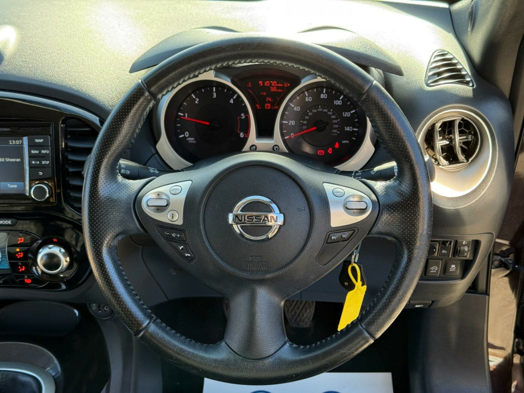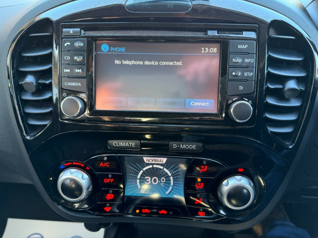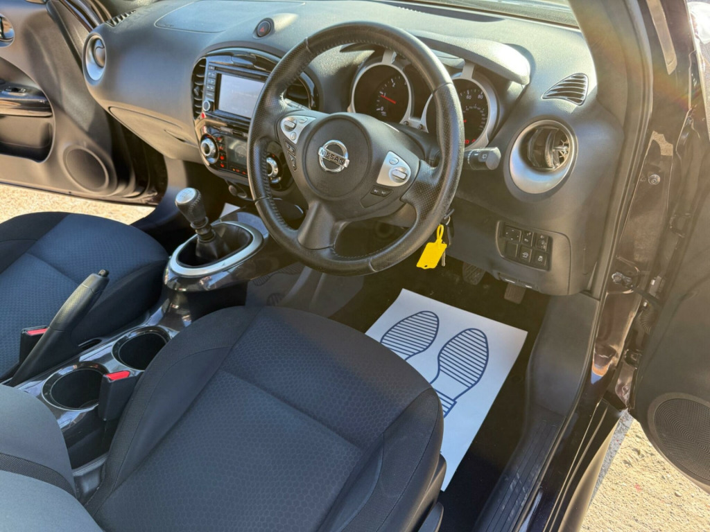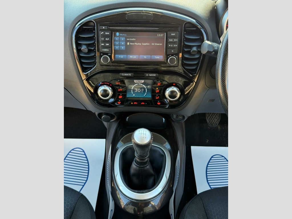 This Nissan Juke dCi n-tec from 2014 boasts a clear vehicle history check, offering you peace of mind. This stylish crossover features a 1.5 litre diesel engine and comes with MOT valid until February 2026. Inside, you'll find Colour reversing camera, touch-screen navigation, bluetooth connectivity including music streaming, Climate Control Air Conditioning to keep you comfortable in all seasons.The Juke n-tec is designed to be economical, achieving an impressive 71 miles per gallon, and only £20 yearly road tax cost which is excellent for its class. It also benefits from a low insurance group, meaning lower running costs. Furthermore, its low CO2 emissions highlight its efficiency, making it a sensible choice for many drivers. 0 yearly road tax, colour reverse parking camera, nissan connect with touch-screen navigation system, bluetooth hands-free phone connectivity, premium fabric - grey, climate control air conditioning, stereo radio/cd/usb/mp3/music streaming via bluetooth, steering wheel mounted audio controls, speakers x6, 18in alloy wheels, remote central locking with 2 keys, front and rear electric windows, tinted glass, electric door mirrors, privacy glass - rear windows, cruise control, speed limiter, 6 speed gearbox, computer (drivers information centre), driver seat height adjustment, black centre console-door trim finishers, 3 adjustable rear head restraints, isofix child seat anchoring points, 60-40 split rear folding seats, 12v socket - front, abs - anti lock brakes, airbag - driver, airbag - front passenger, airbags - curtain, airbags - side, black bezel combi lights, body coloured door mirrors, body coloured handles, brake assist, bumpers - body coloured, chrome exhaust finisher, chrome interior door handles, door mirrors - gloss black, ebd - electronic brakeforce distribution, esp - electronic stability programme, electric speed-sensitive power steering, engine immobiliser, front cupholders x2, front door pockets with drinks bottle holders, front fog lights, front map reading lights, glovebox, nissan dynamic control system, passenger airbag cut-off switch, passenger seat back pockets, pollen filter, rear door child locks, rear tonneau cover integrated into tailgate, steering wheel - leather and gear knob, tilt adjustable steering wheel