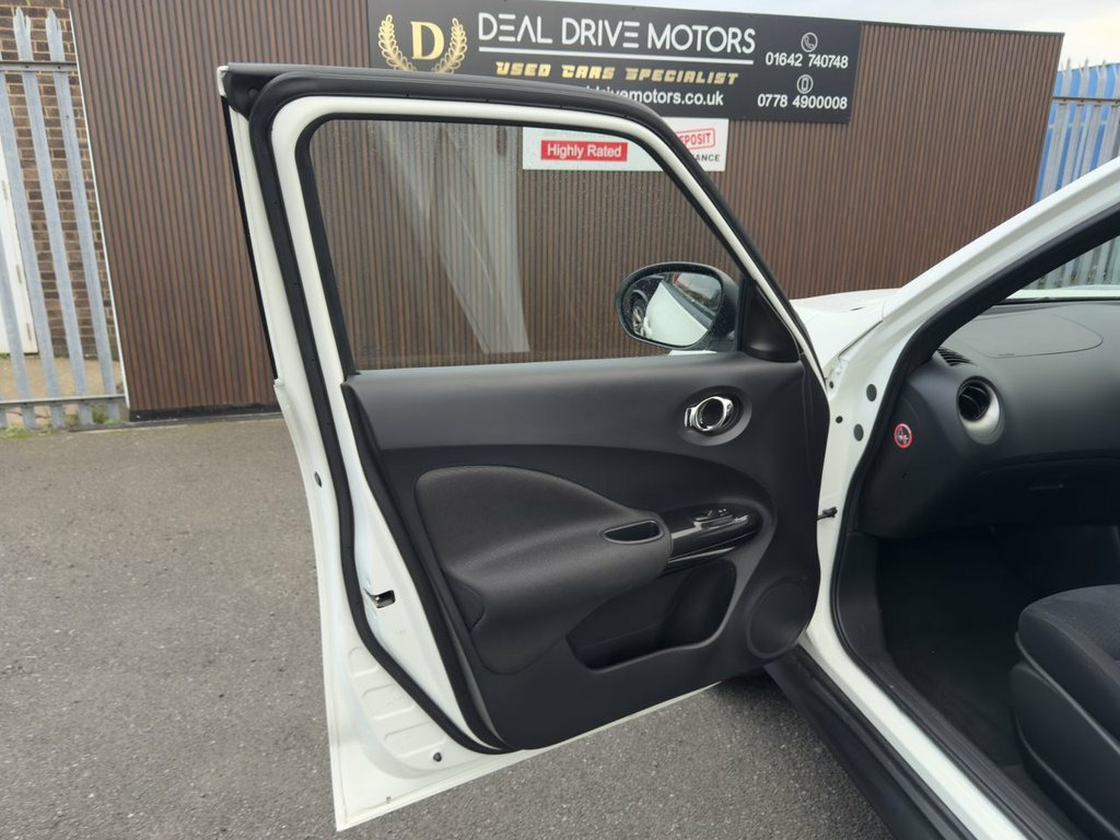 2014 (14) Nissan Juke 1.5 dCi n-tec SUV 5dr Diesel Manual — 110 PS Available now at DealDrive Motors. A bold and compact crossover offering sporty looks, low running costs, and high equipment levels. Powered by a 1.5L diesel engine delivering 110 PS through a smooth-shifting manual gearbox — a perfect blend of fun and fuel efficiency. High-spec n-tec trim includes: Satellite navigation, reversing camera, cruise control, Bluetooth connectivity, climate control, USB and AUX input, DAB radio, Nissan Connect infotainment system, electric folding mirrors, 18" alloy wheels, and privacy glass. The Juke's raised ride height, compact footprint, and dynamic styling make it ideal for urban drivers wanting added confidence and visibility. Its clever interior layout offers surprising practicality, with split-fold rear seats and useful boot space. HPI clear stock for peace of mind. Well looked after, stylish, and economical — ready for its next adventure. 12V Socket - Front, 18in Alloy Wheels, 3 Adjustable Rear Head Restraints, 60-40 Split Rear Folding Seats, ABS - Anti Lock Brakes, AUX-In Socket, Airbag - Driver, Airbag - Front Passenger, Airbags - Curtain, Airbags - Side, Black Bezel Combi Lights, Black Centre Console-Door Trim Finishers, Bluetooth Telephone Integration, Body Coloured Door Mirrors, Body Coloured Handles, Brake Assist, Bumpers - Body Coloured, CD Radio with MP3 Playback, Chrome Exhaust Finisher, Chrome Interior Door Handles, Climate Control Air Conditioning, Colour Reversing Camera, Cruise Control, Door Mirrors - Gloss Black, Driver Seat Height Adjustment, EBD - Electronic Brakeforce Distribution, ESP - Electronic Stability