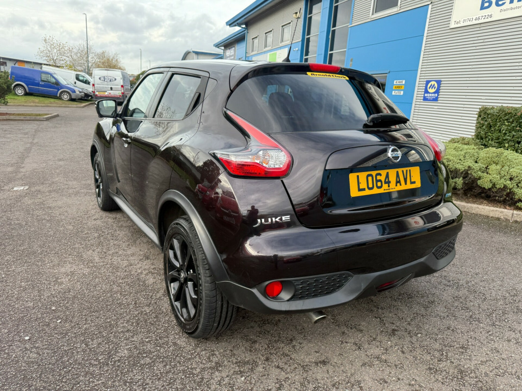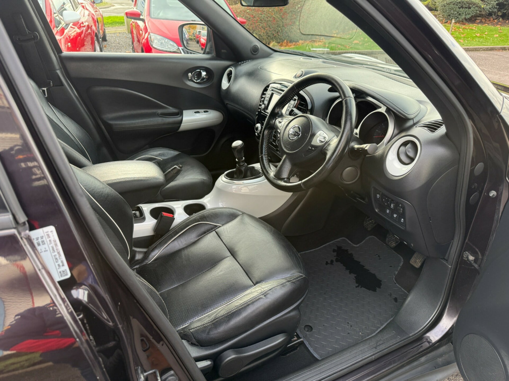 NEW STOCK AWAITING PREP - This 2014 Nissan Juke is a sleek and reliable SUV, perfect for anyone looking for a durable vehicle with plenty of space.PAINT - GAB - nightshade purple With just 98462 miles on the clock, this diesel-powered car is built to last. Its MOT expires on 13/03/2026, so you can drive with peace of mind. The spacious interior boasts 5 seats and 5 doors, providing ample room for both passengers and cargo. Equipped with a 1.5 dCi 8v Tekna engine, this car offers powerful performance and excellent fuel efficiency. Its Euro 5 (s/s) rating ensures low emissions, making it an environmentally friendly choice. Additionally, this Juke comes with modern features such as a DAB radio, 6 speakers, and an AUX-In socket, providing the latest in-car entertainment options. With its sleek design and reliable performance, this Nissan Juke is a top choice for anyone in need of a versatile and dependable SUV., v socket - front, 6 speakers, aux-in socket, dab radio, radio-cd, satellite navigation - nissan connect, telephone - bluetooth integration, touch screen - colour 5.8in, usb port, 17in alloy wheels - urban, body coloured door mirrors, body coloured handles, bumpers - body coloured, electric folding and heated door mirrors, front and rear electric windows, puncture repair kit, rear privacy glass, 60-40 split rear folding seats, air vent rings - matching centre console, auto rain sensing wipers, black headliner, chrome interior door handles, climate control, door trim finishers - matching centre console, driver seat height adjustment, front armrest, front door pockets with drinks bottle holders, front dual cupholders, front map reading lights, front passenger seatback pockets, gear knob - insert finisiher - matching centre console, glovebox, grey centre console-door trim finishers, head restraints - front, head restraints - rear, leather gear knob, leather steering wheel, pollen filter, push start-stop button, rear tonneau cover integrated into tailgate, seats - heated front, seats - sports, steering wheel - rake adjustment, steering wheel mounted audio controls, abs - anti lock brakes, airbag - driver, airbag - front passenger, airbags - curtain, airbags - side, brake assist, ebd - electronic brakeforce distribution, esp - electronic stability programme, first aid kit, high visibility jackets, isofix child seat anchoring points, immobiliser, keyless entry, passenger airbag cut-off switch, rear door child locks, safety kit, safety pack, safety shield, traction control, warning triangle, around view monitor - 360 bird-view, blind spot warning, cruise control, gear shift indicator, lane departure warning, moving object detection, nissan dynamic control system, power assisted steering, rear parking camera, tpms - tyre pressure monitoring system, trip computer, automatic lighting system, front fog lights, led daytime running lights
