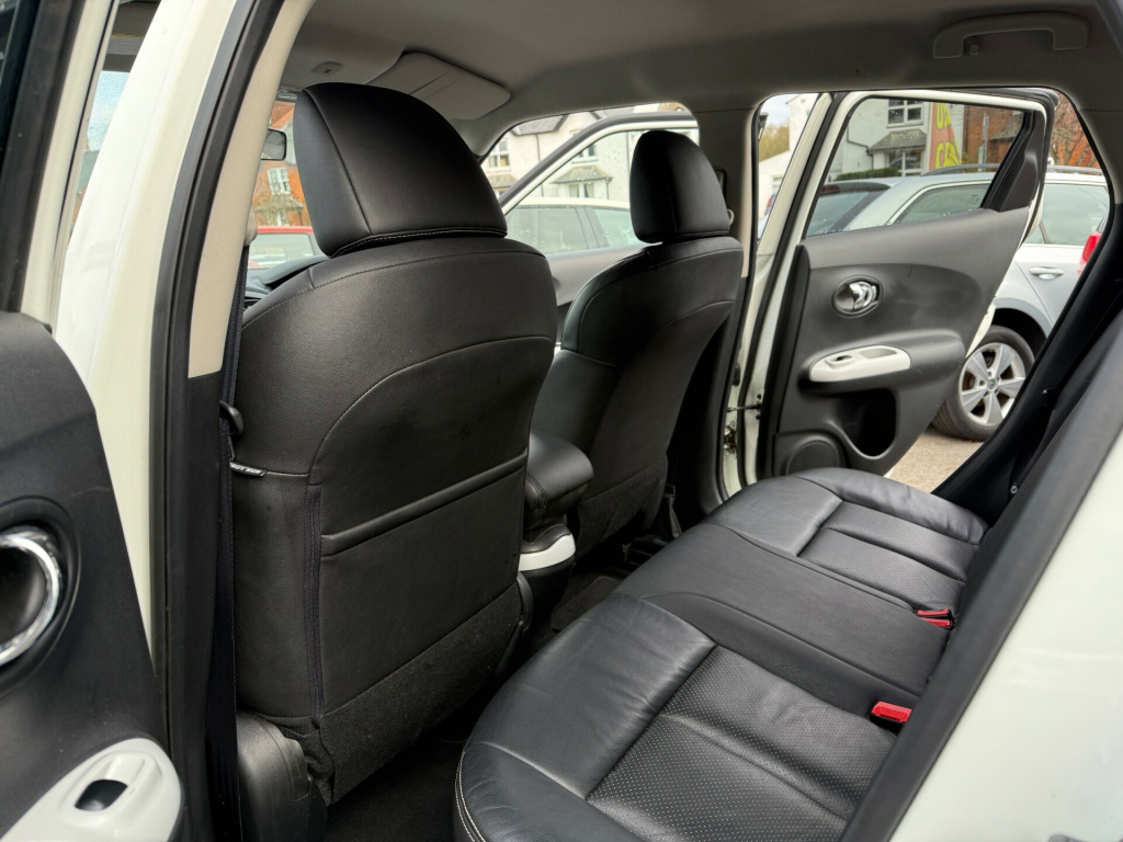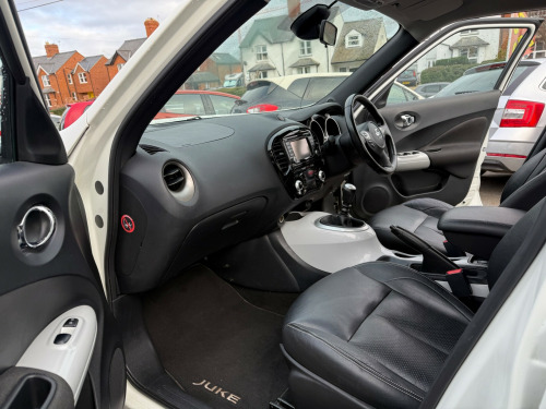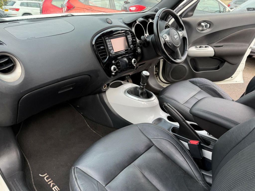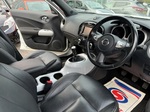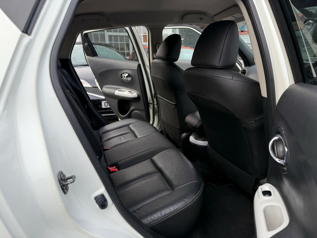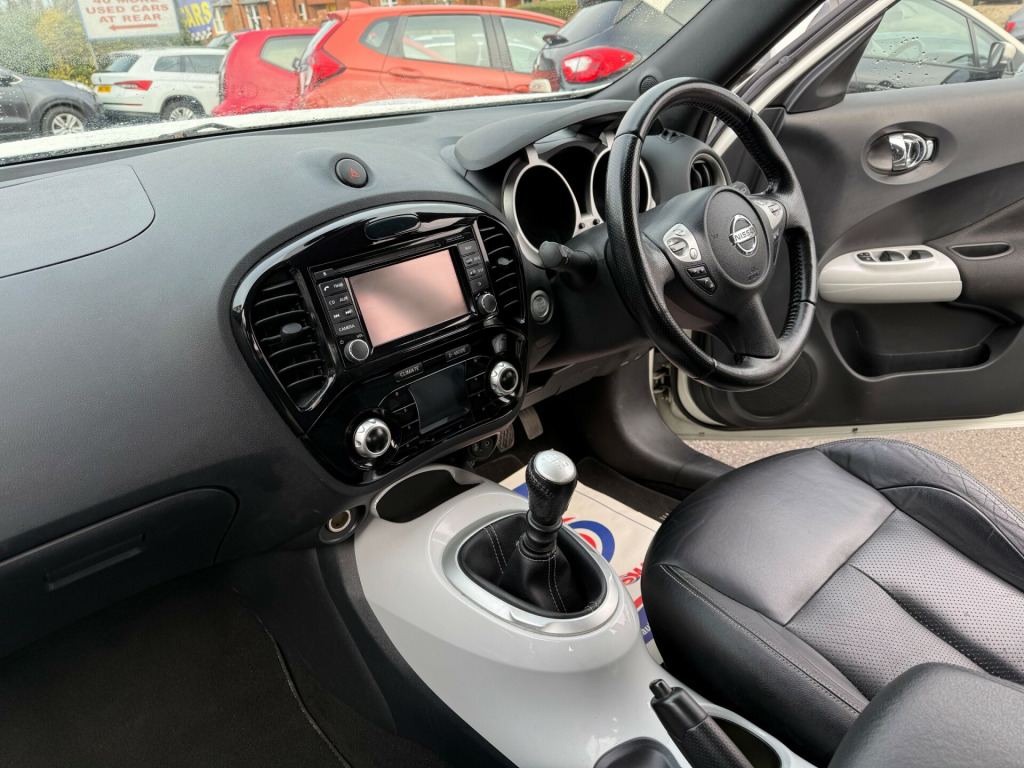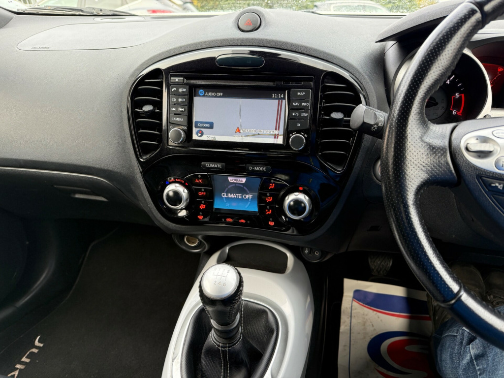 Lovely great specification Nissan juke with 12 months mot mot mot and service v socket - front, aux-in socket, bluetooth telephone integration, cd radio with mp3 playback, nissan connect with touch-screen navigation system, speakers x6, usb port, 17in alloy wheels - urban, body coloured door mirrors, body coloured handles, bumpers - body coloured, chrome exhaust finisher, electric folding and heated door mirrors, front and rear electric windows, rear privacy glass, 3 adjustable rear head restraints, 60-40 split rear folding seats, auto rain sensing wipers, chrome interior door handles, climate control air conditioning, driver seat height adjustment, front cupholders x2, front door pockets with drinks bottle holders, front map reading lights, glovebox, passenger seat back pockets, pollen filter, rear tonneau cover integrated into tailgate, red stitching, seats - heated front, steering wheel - leather and gear knob, steering wheel mounted audio controls, tilt adjustable steering wheel, abs - anti lock brakes, airbag - driver, airbag - front passenger, airbags - curtain, airbags - side, brake assist, ebd - electronic brakeforce distribution, esp - electronic stability programme, engine immobiliser, isofix child seat anchoring points, intelligent key, passenger airbag cut-off switch, rear door child locks, remote central locking, automatic lighting system, front fog lights, colour reversing camera, cruise control, electric speed-sensitive power steering, nissan dynamic control system, reversing camera, speed limiter, trip computer