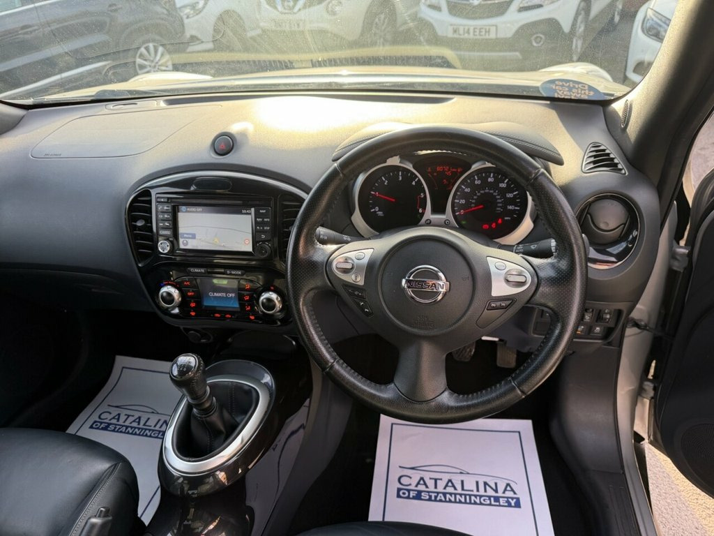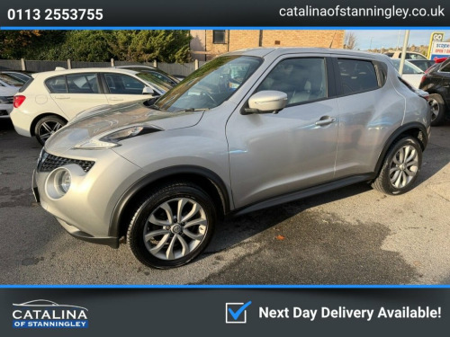 Nissan Juke 1.5 dCi Tekna – £20 Tax | Heated Leather | 7 Services Diesel | Manual | Euro 5 | 110 PS | 80,708 Miles | MOT Until 08-12-2026 This Nissan Juke 1.5 dCi Tekna is a well-maintained, high-spec example of Nissan's popular compact SUV. With just 80,708 miles from new, two former keepers, and an excellent 7-service history up to 80k, it has been cared for to a high standard throughout its life. Powered by the economical 1.5 dCi diesel engine producing 110 PS, it delivers smooth performance and superb fuel economy, with only £20 annual road tax keeping running costs exceptionally low. Finished in silver with a full leather interior, this range-topping Tekna model comes loaded with premium features including satellite navigation, Bluetooth, cameras, alloy wheels, and heated seats, offering comfort and convenience in abundance. A clean, great-spec example of the Nissan Juke Tekna — combining low running costs, strong equipment levels, and stylish design. 2015 NISSAN JUKE 1.5 dCi 8v Tekna SUV 5dr is offered to you for sale in Pudsey, Leeds, finished in silver this NISSAN JUKE 1.5 dCi 8v Tekna SUV 5dr is one of many handpicked used cars that used car dealer, Catalina of Stanningley, Pudsey, Leeds have available for sale. 12V Socket - Front, 17in Alloy Wheels - Urban, 6 Speakers, 60-40 Split Rear Folding Seats, ABS - Anti Lock Brakes, AUX-In Socket, Air Vent Rings - Matching Centre Console, Airbag - Driver, Airbag - Front Passenger, Airbags - Curtain, Airbags - Side, Around View Monitor - 360 Bird-View, Auto Rain Sensing Wipers, Automatic Lighting System, Black Headliner, Blind Spot Warning, Body Coloured Door Mirrors, Body Coloured Handles, Brake Assist, Bumpers - Body Coloured, Chrome Interior Door Handles, Climate Control, Cruise Control, DAB Radio, Door Trim Finishers - Matching Centre Co, Driver Seat Height Adjustment, EBD - Electronic Brakeforce Distribution, ESP - Electronic Stability Programme, Electr