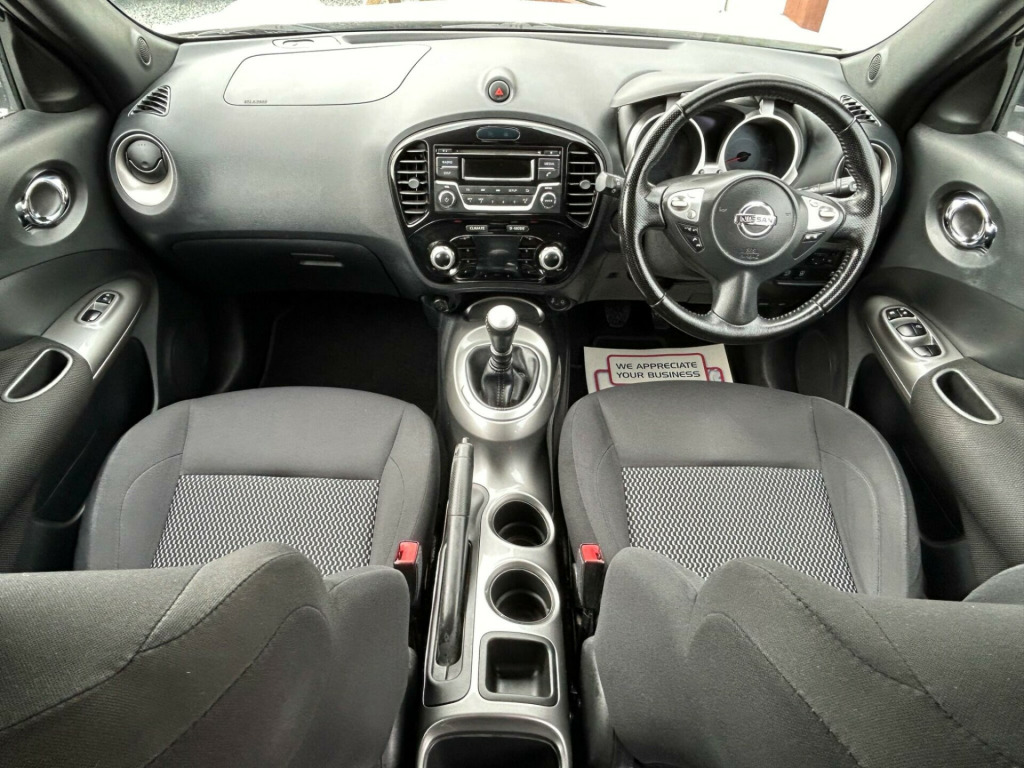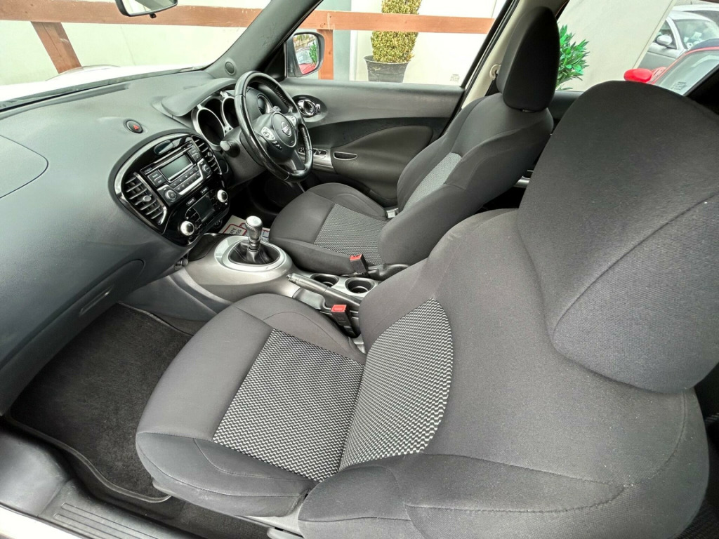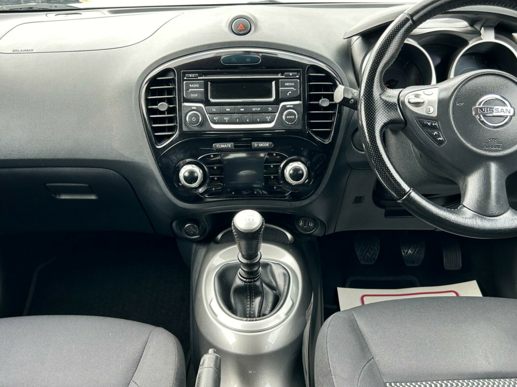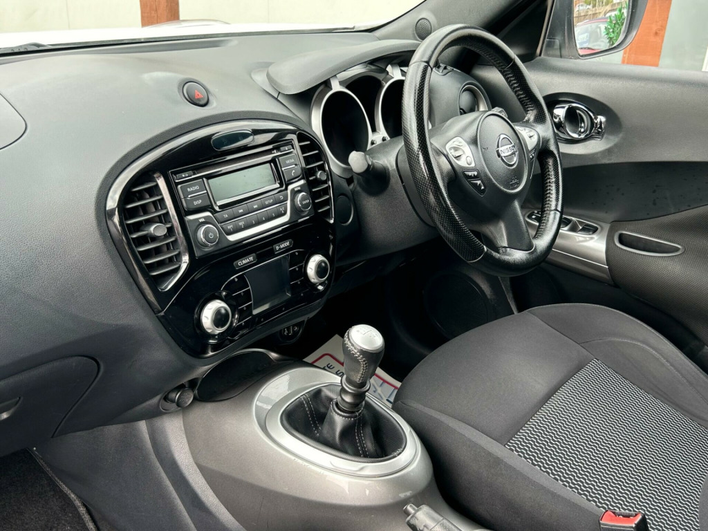 Finished In White This 2015 Nissan Juke is a particularly appealing find. New In Stock Just Arrived. As a dCi Acenta variant with the Acenta trim, this Juke is equipped with a 1.5L diesel engine and adheres to Euro 6 emission standards. The interior benefits from the convenience of Bluetooth integration for telephone use, alongside automatic climate control with a pollen filter, ensuring a comfortable environment whether you're on a short trip or a longer journey.This Juke stands out with its impressive fuel economy of 71 mpg, meaning lower running costs compared to similar vehicles. Furthermore, it falls into a low insurance group, offering potential savings on your premiums. The low CO2 emissions also mean that this vehicle is more environmentally friendly than other comparable models., v socket - front, 17in alloy wheels - sport, 2 speed wiper with variable intermittent, 3 adjustable rear head restraints, 60-40 split rear folding seats, aux socket for mp3 player, airbag - driver, airbag - front passenger, airbags - curtain, airbags - side, automatic climate control with pollen filter, body coloured handles, body-coloured door mirrors with led indicators, boot capacity with flexi-floor board, cd radio with 4 speakers, chrome interior door handles, cruise control with speed limiter, drive computer with temperature gauge, esp abs ebd and brake assist, electric adjustable door mirrors, engine immobiliser, front cupholders x2, front door pockets with drinks bottle holders, front fog lights, front map reading lights, front seat belt height adjustment, front seat belts with load limiter and pretensioners, front and rear electric windows, gear shift indicator, glovebox, grey centre console-door trim finishers, headliner - grey, height adjustable driver seat, isofix child seat anchoring points, led signature daytime running lights, leather steering wheel and gear knob, nissan dynamic control system, passenger airbag cut-off switch, power assisted steering - speed sensitive, puncture repair kit, rear door child locks, rear privacy glass, rear tonneau cover integrated into tailgate, rear wiper with intermittent, remote central locking, steering wheel mounted audio controls, tpms - tyre pressure monitoring system, telephone - bluetooth integration, tilt adjustable steering wheel, traction control, usb port