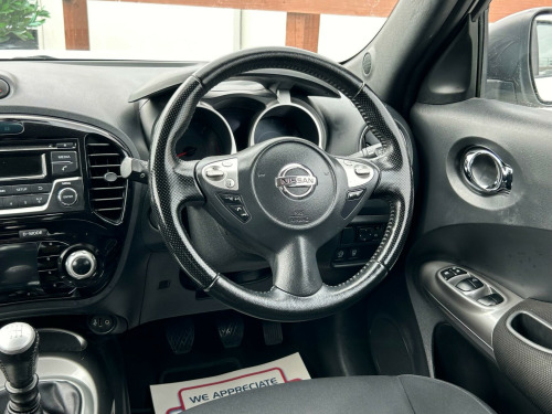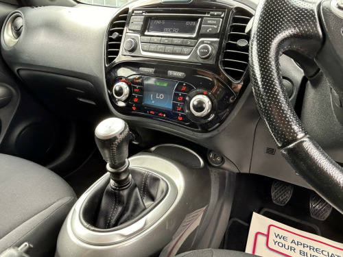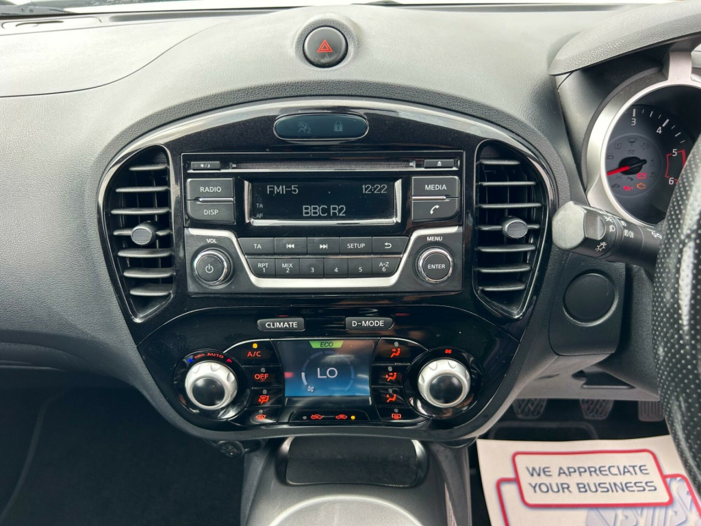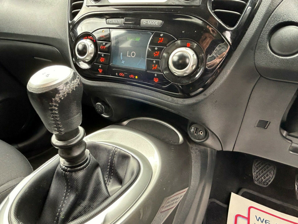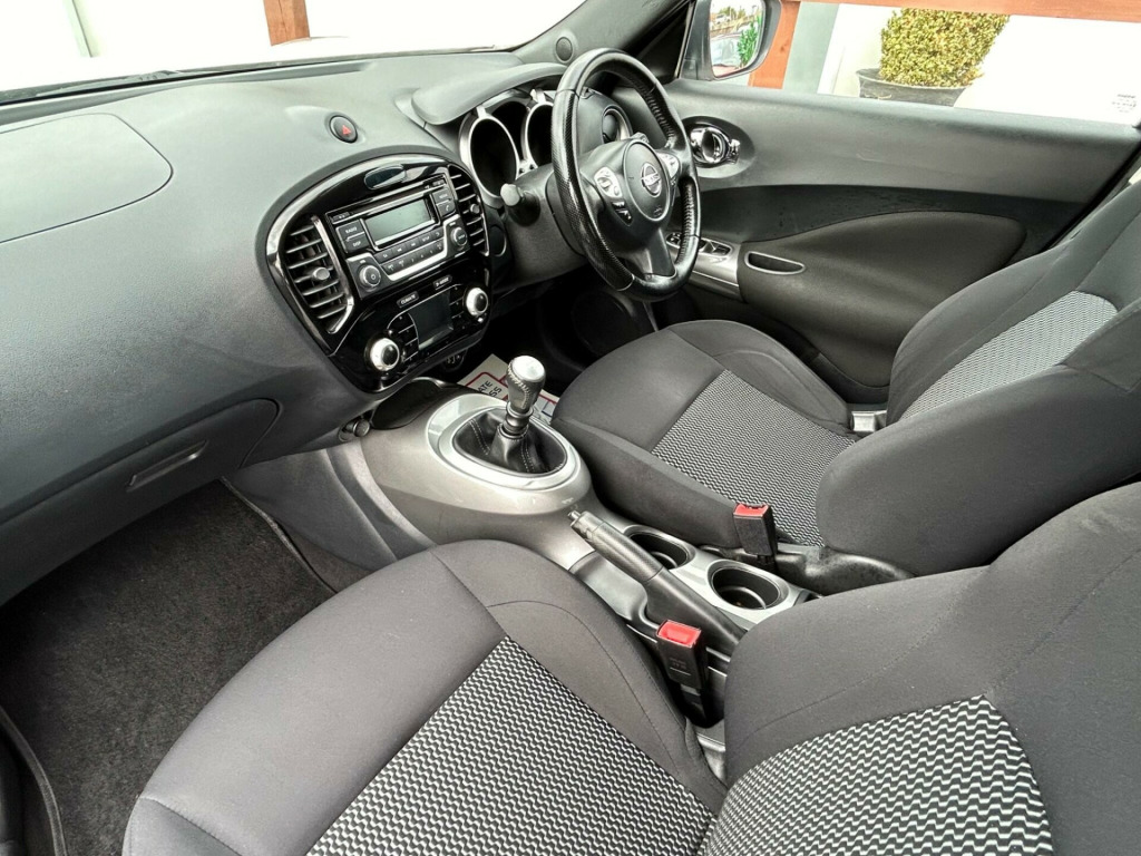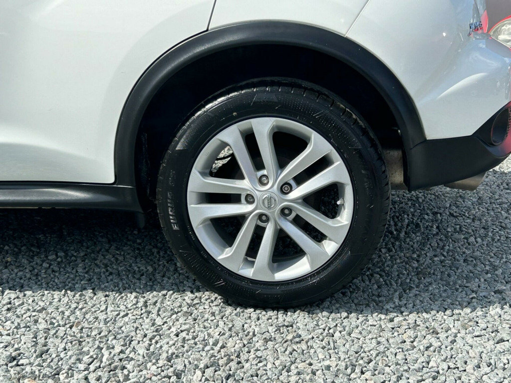Finished In White This 2015 Nissan Juke is a particularly appealing find. New In Stock Just Arrived. As a dCi Acenta variant with the Acenta trim, this Juke is equipped with a 1.5L diesel engine and adheres to Euro 6 emission standards. The interior benefits from the convenience of Bluetooth integration for telephone use, alongside automatic climate control with a pollen filter, ensuring a comfortable environment whether you're on a short trip or a longer journey.This Juke stands out with its impressive fuel economy of 71 mpg, meaning lower running costs compared to similar vehicles. Furthermore, it falls into a low insurance group, offering potential savings on your premiums. The low CO2 emissions also mean that this vehicle is more environmentally friendly than other comparable models., v socket - front, 17in alloy wheels - sport, 2 speed wiper with variable intermittent, 3 adjustable rear head restraints, 60-40 split rear folding seats, aux socket for mp3 player, airbag - driver, airbag - front passenger, airbags - curtain, airbags - side, automatic climate control with pollen filter, body coloured handles, body-coloured door mirrors with led indicators, boot capacity with flexi-floor board, cd radio with 4 speakers, chrome interior door handles, cruise control with speed limiter, drive computer with temperature gauge, esp abs ebd and brake assist, electric adjustable door mirrors, engine immobiliser, front cupholders x2, front door pockets with drinks bottle holders, front fog lights, front map reading lights, front seat belt height adjustment, front seat belts with load limiter and pretensioners, front and rear electric windows, gear shift indicator, glovebox, grey centre console-door trim finishers, headliner - grey, height adjustable driver seat, isofix child seat anchoring points, led signature daytime running lights, leather steering wheel and gear knob, nissan dynamic control system, passenger airbag cut-off switch, power assisted steering - speed sensitive, puncture repair kit, rear door child locks, rear privacy glass, rear tonneau cover integrated into tailgate, rear wiper with intermittent, remote central locking, steering wheel mounted audio controls, tpms - tyre pressure monitoring system, telephone - bluetooth integration, tilt adjustable steering wheel, traction control, usb port