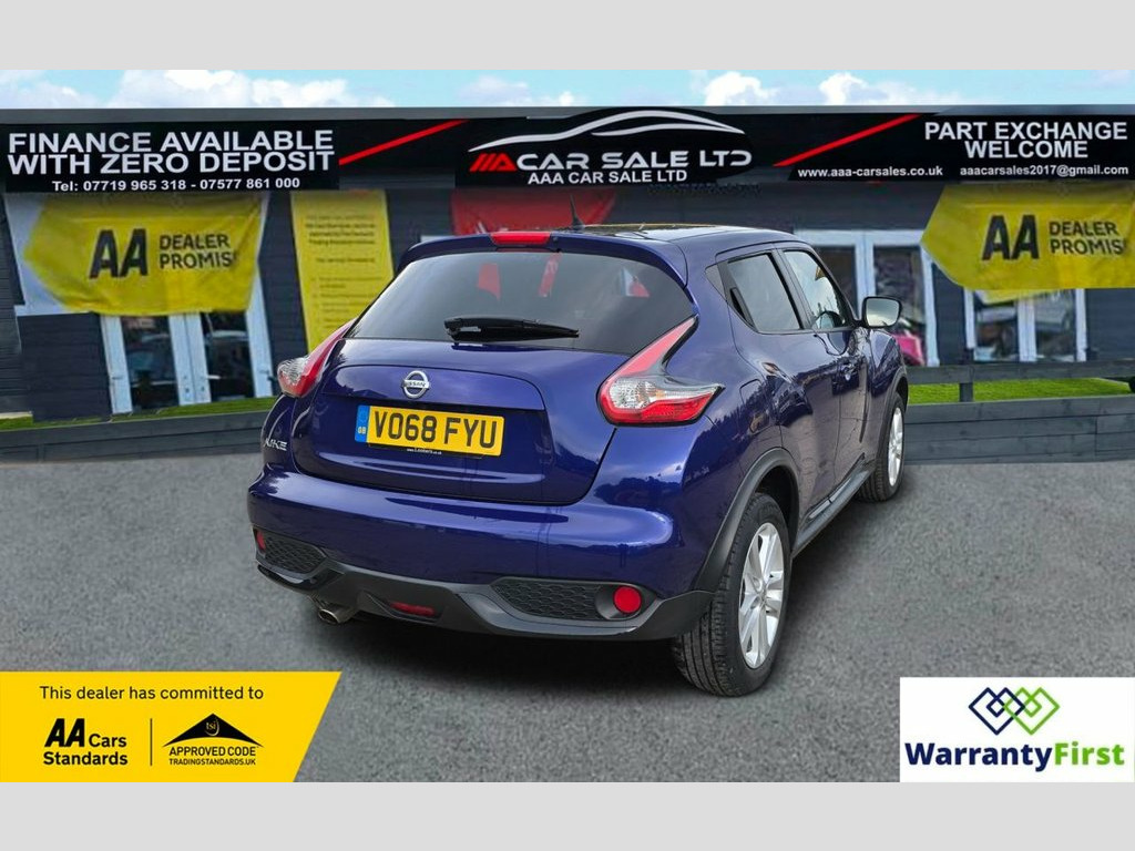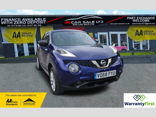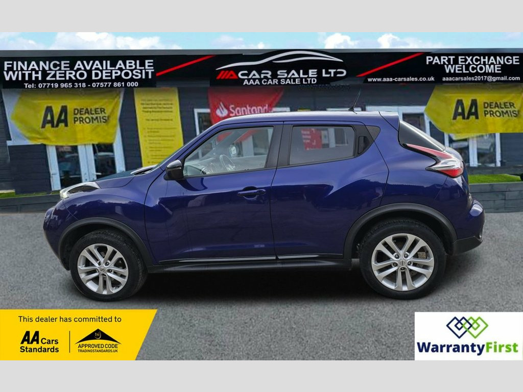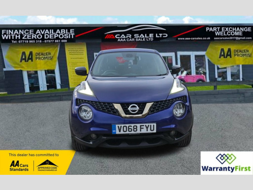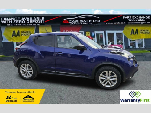 **AAA CAR SALES DARLINGTON LTD HAVE THE PLEASURE TO PRESENT NISSAN JUKE 1.5 dCi Bose Personal Edition SUV 5dr Diesel Manual Euro 6 (s/s) (110 ps) IN INK BLUE PAINT WORK, SERVICE HISTORY SERVICED AT 4K, 13K, 25K, 43K, 57K, 69K, 80K AND A SERVICE BY US AT 82K,ALL OUR CARS GO THROUGH 72 POINT INSPECTION,ALL OF OUR CARS COME WITH 12 MONTHS AA BREAKDOWN COVER, FRESH MOT WITHOUT ADVISORIES,INTERIM SERVICE,HPI CHECKED VIA EXPERIAN,3 MONTHS WARRANTY WITH THE OPTION TO UPGRADE ***AUTOTRADER CUSTOMER SERVICE AWARD 2019,2020,2021,2022,2023 and 2024 YEAR ON YEAR***, WE ARE OPEN 7 DAYS A WEEK FOR YOUR CONVIENIENCE,CALL 01325 511665 OR EMAIL US AT [email protected] or visit our website www.aaa-carsales.co.uk, , Service history, Clean bodywork, Cloth interior - Clean Condition, Tyre condition good, YOU CAN BUY WITH FULL CONFIDENCE FROM AAA CARS CHECK OUR AUTOTRADER REVIEWS FOR FULL PEACE OF MIND, Ink Blue, 12V Socket - Front, 16in Alloy Wheels - Aero Bi-Tone Black, 3 Adjustable Rear Head Restraints, 6 Airbags, 60-40 Split Rear Folding Seats, AM-FM-CD Audio System, AUX Socket for MP3 Player, Automatic Climate Control with Pollen Fi, Automatic Headlights - Dusk Sensor, BOSE Personal Sound System, Body Coloured Handles, Chrome Interior Door Handles, Colour Reversing Camera, Cruise Control with Speed Limiter, DAB Radio, Dark Chrome Grille, Door Mirrors with LED Indicators, Door-Boot Open Warning Light, Drive Computer with Temperature Gauge, Driver and Passenger Sun Visor with Vani, ESP ABS EBD and Brake Assist, Electric Folding and Heated Door Mirrors, Electric Front Windows with Driver