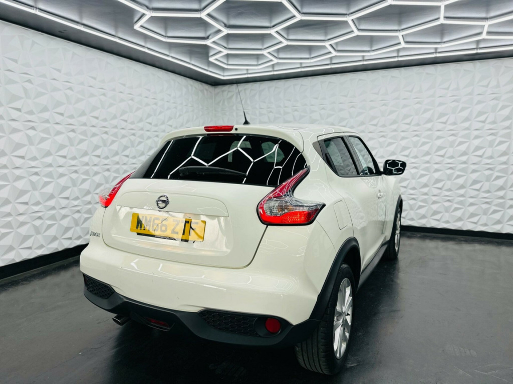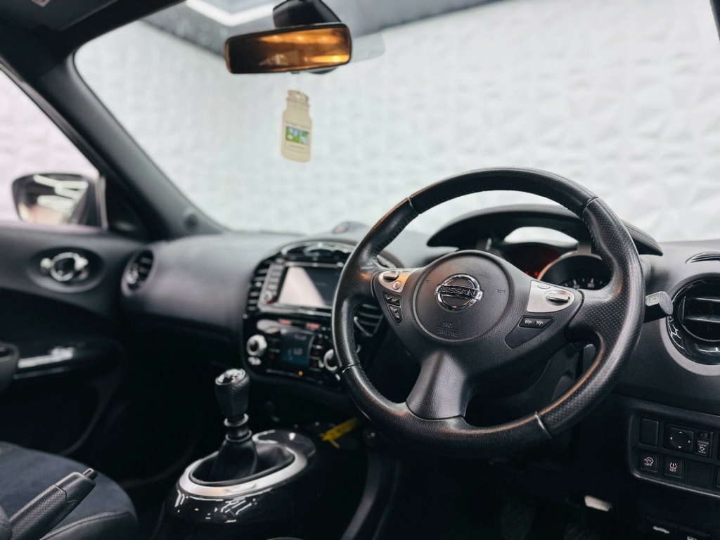 WE ARE PROUD TO OFFER THIS LOVELY NISSAN JUKE FINISHED IN FROZEN WHITE. COMES WITH A CONTRASTING BLACK LEATHER/ CLOTH INTERIOR. THIS VEHICLE WILL COME WITH A LONG MOT AND A RECENT SERVICE READY FOR THE NEW OWNER. ONLY 1 LADY OWNER FROM BRAND NEW. THIS VEHICLE COMES WITH A HUGE AMOUNT OF SPEC. COMES WITH A HALF LEATHER INTERIOR, MEDIA SYSTEM, BLUETOOTH, DAB RADIO, REVERSE CAMERA, MULTI FUNCTIONAL STEERING WHEEL, ALLOY WHEELS PLUS MUCH MORE. THIS VEHICLE REALLY NEEDS TO BE SEEN TO BE APPRECIATED. HERE AT E.S.A AUTOMOTIVE LTD WE OFFER AS STANDARD A 12 MONTHS AA BREAKDOWN COVER, 5 DAY DRIVEAWAY INSURANCE & A COMPREHENSIVE 3 MONTHS WARRANTY ON ALL VEHICLES. RESERVE ANY VEHICLE WITH A £99 REFUNDABLE DEPOSIT. WE HAVE A HUGE PANEL OF LENDERS FOR GOOD&BAD FINANCE SO WHY NOT CALL US TODAY. WE ARE COMMITED TO THE AA CARS STANDARDS & ALSO TRADING STANDARDS APPROVED. WE ARE THE PROUD WINNERS OF THE AUTOTRADER RETAILERS CUSTOMER CHOICE AWARD WINNER FOR 2020, ALSO THE PROUD WINNERS OF THE 2021/22 CAR DEALER OF THE YEAR (YORKSHIRE) PRESTIGE AWARD AND FINALLY WE HAVE WON THE CAR/VAN DEALER OF THE YEAR (SOUTH YORKSHIRE) 2023. WITH 100 PERCENT POSITIVE VERIFIED REVIEWS & SELECTED HIGHLY RATED BY AUTOTRADER 2019,20,21,22,23,2024 AND ON ROUTE TO BEING HIGHLY RATED FOR 2025. WE TAKE PRIDE IN NOT JUST SELLING CARS BUT AN AMAZING AFTERCARE SERVICE. CALL THE TEAM TODAY TO START YOUR CAR BUYING JOURNEY.. 12V Socket - Front, 17in Alloy Wheels - Sport, 2 Speed Wiper with Variable Intermittent, 3 Adjustable Rear Head Restraints, 60-40 Split Rear Folding Seats, AUX Socket for MP3 Player, Airbag - Driver, Airbag - Front Passenger, Airbags - Curtain, Airbags - Side, Automatic Climate Control with Pollen Filter, Automatic Lights and Wipers, Black Headliner, Body Coloured Handles, Body-Coloured Door Mirrors with LED Indicators, Boot Capacity with Flexi-Floor Board, Chrome Interior Door Handles, Colour Reversing Camera, Cruise Control with Speed Limiter, DAB and Internet Radio with 6 Speakers, Drive Computer with Temperature Gauge, ESP ABS EBD and Brake Assist, Electric Folding and Heated Door Mirrors, Engine Immobiliser, Front Armrest, Front Cupholders x2, Front Door Pockets with Drinks Bottle Holders, Front Fog Lights, Front Map Reading Lights, Front Seat Belt Height Adjustment, Front Seat Belts with Load Limiter and Pretensioners, Front and Rear Electric Windows, Gear Shift Indicator, Glovebox, Height Adjustable Driver Seat, ISOFIX Child Seat Anchoring Points, Intelligent Key with Start Push Button, LED Signature Daytime Running Lights, Leather Steering Wheel and Gear Knob, Nissan Dynamic Control System, NissanConnect, Passenger Airbag Cut-Off Switch, Power Assisted Steering - Speed Sensitive, Puncture Repair Kit, Rear Door Child Locks, Rear Privacy Glass, Rear Tonneau Cover Integrated into Tailgate, Rear Wiper with Intermittent, Steering Wheel Mounted Audio Controls, TPMS - Tyre Pressure Monitoring System, Telephone - Bluetooth Integration, Tilt Adjustable Steering Wheel, Traction Control, USB Port, Nissan Care Warranty, Artificial Leather with Suede - Black with Black Centre Console, Artificial Leather with Suede - Black with Black Centre Console and Black Exterior Pack, Comfort Pack. Full service history