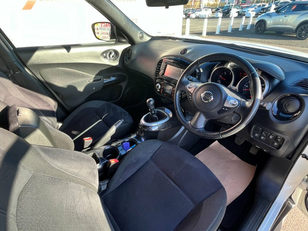The 2016 Nissan Juke 1.5 dCi N-Connecta is a very economical compact SUV. With combined fuel consumption around 70 mpg, CO? emissions of 104 g/km, and just £20 annual road tax, it's cheap to run. The N-Connecta trim brings great kit — 7″ touchscreen with navigation, rear-view camera, climate control, cruise control, Bluetooth and 60/40 split rear seats. That split rear folding makes it practical for both passengers and cargo, and the small footprint makes city driving easy. Thanks to its distinctive design and efficient diesel engine, the Juke remains popular among drivers seeking style, economy and sensible running costs. 12V Socket - Front, 17in Alloy Wheels - Sport, 2 Speed Wiper with Variable Intermittent, 3 Adjustable Rear Head Restraints, 60-40 Split Rear Folding Seats, AUX Socket for MP3 Player, Airbag - Driver, Airbag - Front Passenger, Airbags - Curtain, Airbags - Side, Automatic Climate Control with Pollen Fi, Automatic Lights and Wipers, Black Headliner, Body Coloured Handles, Body-Coloured Door Mirrors with LED Indi, Boot Capacity with Flexi-Floor Board, Chrome Interior Door Handles, Colour Reversing Camera, Cruise Control with Speed Limiter, DAB and Internet Radio with 6 Speakers, Drive Computer with Temperature Gauge, ESP ABS EBD and Brake Assist, Electric Folding and Heated Door Mirrors, Engine