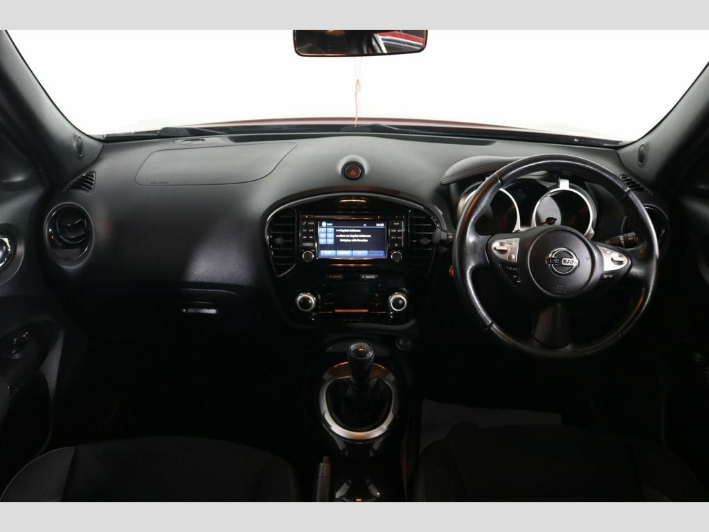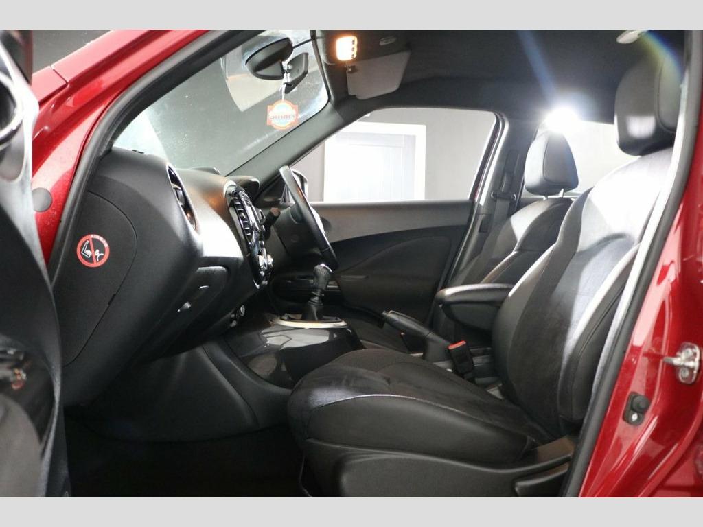 AWB Motors are pleased to present this stunning Nissan Juke finished in Magnetic Red complemented by 17in Gun Metal ALLOY WHEELS and Front Fog Lights. At the heart of the dash is a Colour Display showing functions such as SATNAV. Make your calls handsfree using the BLUETOOTH Interface. Charge your phone using the USB port. Perfect for listening to your favourite music either from your phone through the AUX port or simply using the DAB Radio. These alongside all other radio functions can be controlled using the Multifunction Steering Wheel. Park with ease thanks to PARKING CAMERA Fitted. Drive in comfort whatever the journey with both CRUISE CONTROL and CLIMATE CONTROL with AIR CONDITIONING. Safe for your children with ISOFIX Anchorage Points. Other useful ancillaries include Auto Lights and Wipers, POWER FOLD Electric Mirrors, 4 Way Electric Windows and Remote Central Locking. Cheap to run being just £20 TAX and thanks to its Fuel Efficient Engine achieving 70+MPG. Magnetic Red, 12V Socket - Front, 17in Alloy Wheels - Sport, 2 Speed Wiper with Variable Intermittent, 3 Adjustable Rear Head Restraints, 60-40 Split Rear Folding Seats, AUX Socket for MP3 Player, Airbag - Driver, Airbag - Front Passenger, Airbags - Curtain, Airbags - Side, Automatic Climate Control with Pollen Fi, Automatic Lights and Wipers, Black Headliner, Body Coloured Handles, Body-Coloured Door Mirrors with LED Indi, Boot Capacity with Flexi-Floor Board, Chrome Interior Door Handles, Colour Reversing Camera, Cruise Control with Speed Limiter, DAB and Internet Radio with 6 Speakers, Drive Computer with Temperature Gauge, ESP ABS EBD and Brake Assist, Electric Folding and Heated Door Mi