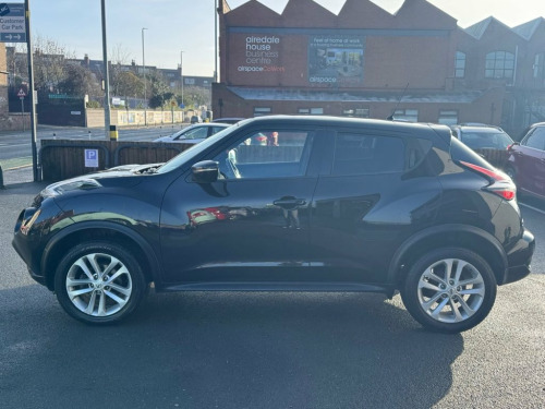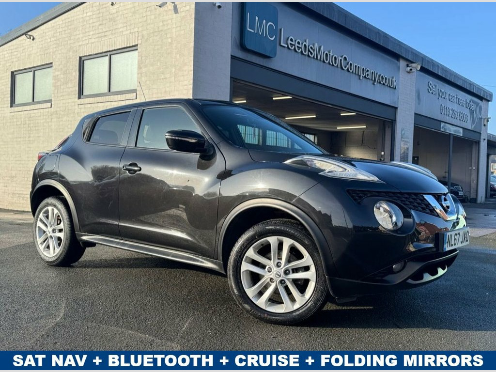 Nissan Juke 1.5 dCi N-Connecta in Pearl black metallic paintwork complimented by 17 inch alloys. Spec includes, sat nav, Bluetooth, DAB radio, reverse camera, power folding wing mirrors, keyless - keyless entry / power button start button, climate control with A/C, multi-function steering with cruise control, auto lights, auto headlights, trip computer and much more. Call 0113 2636003 or visit leedsmotorcompany.co.uk. Pearl Black, 12V Socket - Front, 17in Alloy Wheels - Sport, 2 Speed Wiper with Variable Intermittent, 3 Adjustable Rear Head Restraints, 60-40 Split Rear Folding Seats, AUX Socket for MP3 Player, Airbag - Driver, Airbag - Front Passenger, Airbags - Curtain, Airbags - Side, Automatic Climate Control with Pollen Fi, Automatic Lights and Wipers, Black Headliner, Body Coloured Handles, Body-Coloured Door Mirrors with LED Indi, Boot Capacity with Flexi-Floor Board, Chrome Interior Door Handles, Colour Reversing Camera, Cruise Control with Speed Limiter, DAB and Internet Radio with 6 Speakers, Drive Computer with Temperature Gauge, ESP ABS EBD and Brake Assist, Electric Folding and Heated Door Mir