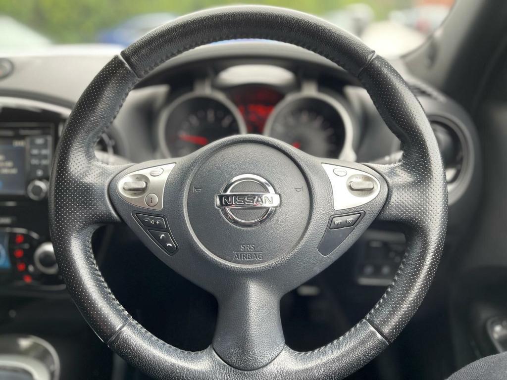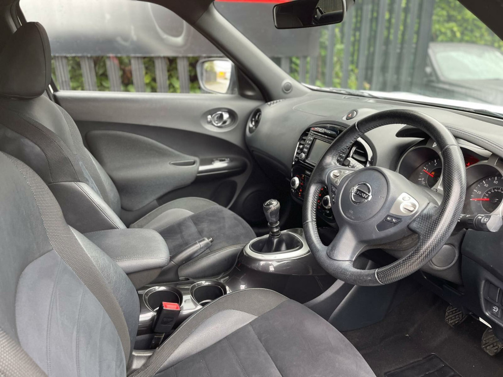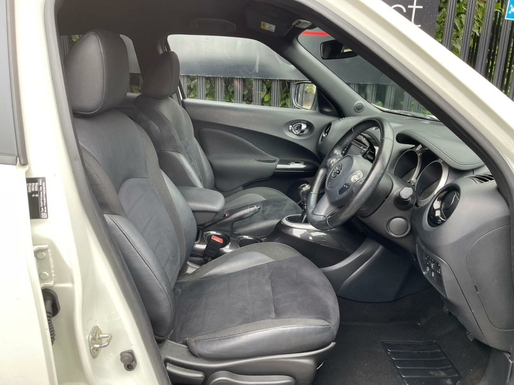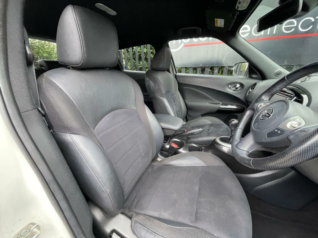 FINANCE & PART EXCHANGE AVAILABLE* - Only 2 registered keepers & 72,159 miles from new, SERVICE HISTORY, 2 KEYS - this FANTASTIC NISSAN JUKE 1.5 DCI N-CONNECTA is finished in stunning sports white & is complimented with contrasting full black leather & cream alcantara sports trim and extends itself to the following additional features - on board satellite navigation system, reverse camera, climate control / automatic air conditioning, trip computer, cruise control with speed limiter, leather trimmed multi function steering wheel, Bluetooth telephone prep, DAB digital radio, media input, keyless entry & start, start / stop, privacy glass, drive mode select, electric folding & heated exterior mirrors, auto headlights, power assisted steering, abs, airbags, electric windows, remote central locking, head restraints, Nissan 17'' sports alloy wheels finished in stunning sports gloss black, Nissan anti theft system. ***FINANCE AVAILABLE - subject to status. T&C's apply.***PART EXCHANGE AVAILABLE***ALL VEHICLES ARE HPI & NATIONAL MILEAGE REGISTER CHECKED***THE AA WARRANTY IS SUBJECT TO TERMS & CONDITIONS AND DOES NOT COVER VEHICLES THAT ARE BEING USED FOR TAXI, PRIVATE HIRE, CHAUFFEURING PURPOSES OR FOR REWARD.***Please note, that the specifications/components/features etc. are generic to that vehicle of the type advertised but may not be included in the specific vehicle that is for sale. It is for the intended purchaser to satisfy themselves of the presence or absence of any specifications/components/features before sale. Please ask if you are uncertain of anything and we will see if we can assist.. 12V Socket - Front, 17in Alloy Wheels - Sport, 2 Speed Wiper with Variable Intermittent, 3 Adjustable Rear Head Restraints, 60-40 Split Rear Folding Seats, AUX Socket for MP3 Player, Airbag - Driver, Airbag - Front Passenger, Airbags - Curtain, Airbags - Side, Automatic Climate Control with Pollen Filter, Automatic Lights and Wipers, Black Headliner, Body Coloured Handles, Body-Coloured Door Mirrors with LED Indicators, Boot Capacity with Flexi-Floor Board, Chrome Interior Door Handles, Colour Reversing Camera, Cruise Control with Speed Limiter, DAB and Internet Radio with 6 Speakers, Drive Computer with Temperature Gauge, ESP ABS EBD and Brake Assist, Electric Folding and Heated Door Mirrors, Engine Immobiliser, Front Armrest, Front Cupholders x2, Front Door Pockets with Drinks Bottle Holders, Front Fog Lights, Front Map Reading Lights, Front Seat Belt Height Adjustment, Front Seat Belts with Load Limiter and Pretensioners, Front and Rear Electric Windows, Gear Shift Indicator, Glovebox, Height Adjustable Driver Seat, ISOFIX Child Seat Anchoring Points, Intelligent Key with Start Push Button, LED Signature Daytime Running Lights, Leather Steering Wheel and Gear Knob, Nissan Dynamic Control System, NissanConnect, Passenger Airbag Cut-Off Switch, Power Assisted Steering - Speed Sensitive, Puncture Repair Kit, Rear Door Child Locks, Rear Privacy Glass, Rear Tonneau Cover Integrated into Tailgate, Rear Wiper with Intermittent, Steering Wheel Mounted Audio Controls, TPMS - Tyre Pressure Monitoring System, Telephone - Bluetooth Integration, Tilt Adjustable Steering Wheel, Traction Control, USB Port.