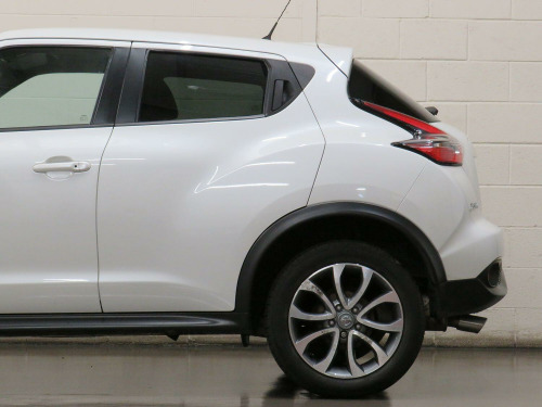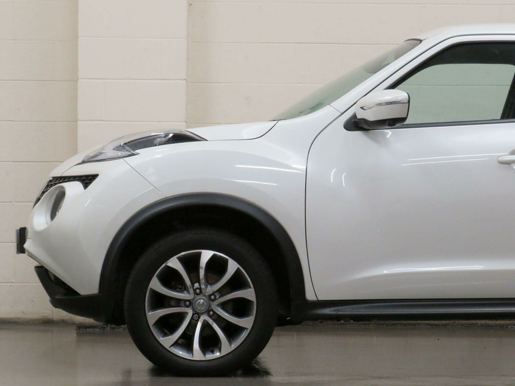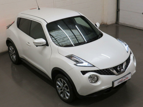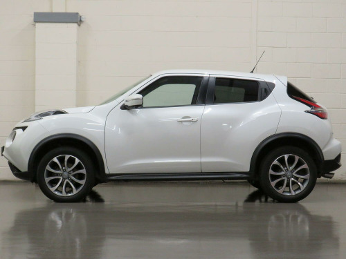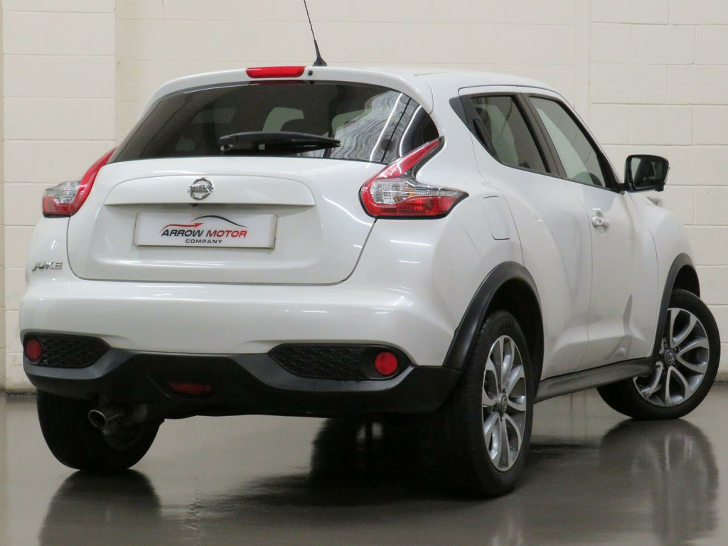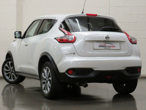 Arrow Motor Company are pleased to present this fantastic Nissan Juke Tekna, finished in the stunning Premium Pearlescent White Paintwork, with contrasting Full Black Leather Interior. Equipped with Nissans 1.5-Litre Diesel Engine capable of producing 108bhp whilst providing the most economical of drivers with a highly respectable 70.6mpg, with potential to rise to 74.3mpg in Extra-Urban environments. This Particular Example is Complimented by only £20 Road Tax Per Year and a Comprehensive Service History. This vehicle also benefits from the following impressive list of features, , ↓ ↓ ↓ ↓ ↓ ↓ ↓ ↓ ↓ ↓ ↓ ↓ ↓ ↓ ↓ ↓ ↓ ↓ ↓ ↓, , ...Interior Features... , Satellite Navigation System | 6-Inch Multimedia Touchscreen Display | Cluster Display | Rear Parking Camera Display | Birds Eye View Parking Camera Display | Climate Control with Digital Display and Air-Conditioning | 3x Adjustable Full Leather Heated Front Seats | 6x Surround Sound Speaker System | Cruise Control | Automatic Headlight Switch | Bluetooth Telephone and Media Streaming | DAB Radio | Speed Limiter | Multifunction Black Leather Steering Wheel | Front and Rear Electric Window Controls | CD Player | AUX / USB Input | Economic Stop/Start System | Sport Mode Display | Eco Mode Display | Electrically Adjustable Folding Wing Mirror Controls | Tyre Pressure Monitoring System | Black Leather Gear-Shifter Cover | Black Leather Centre Console | Glovebox Storage | Vanity Mirrors | Multifunctional Trip Computer | ISOFIX | Gyro Air Vents | 2 Cupholders | Central Locking | Traction Control | 12V Socket |, , ... Exterior Features... , 17-Inch 10 Spoke Metallic Silver Diamond Cut Alloy Wheels | Rear Parking Camera | Wing Mirror Mounted Cameras | LED Day Time Running Lights | Keyless Entry | Rear Privacy Glass | Electrically Adjustable Wing Mirrors | Front and Rear Electric Windows | Body Coloured Wing Mirrors with Integrated Indicators | Chrome Lined Front Grill | Black Trim and Flared Wheel Arches | Integrated Rear Door Handles | Front Fog Lights | Electric Windows | Heated Rear Window | Chrome Exhaust Tip | Body Coloured Roof | Body Coloured Door Handles |
