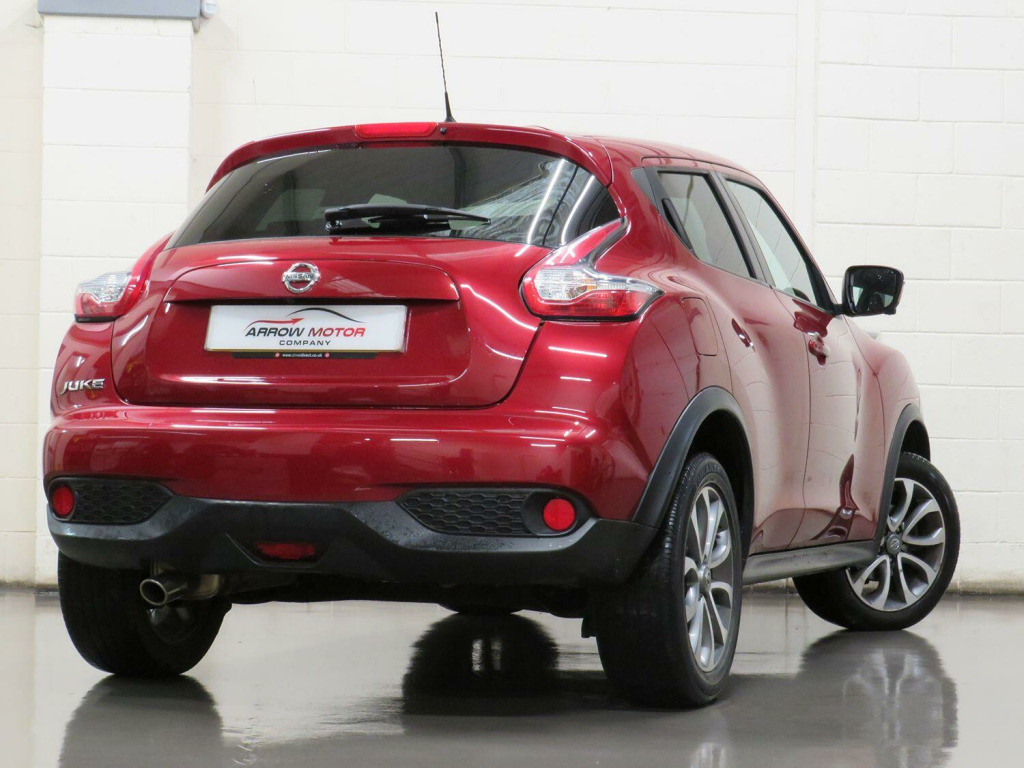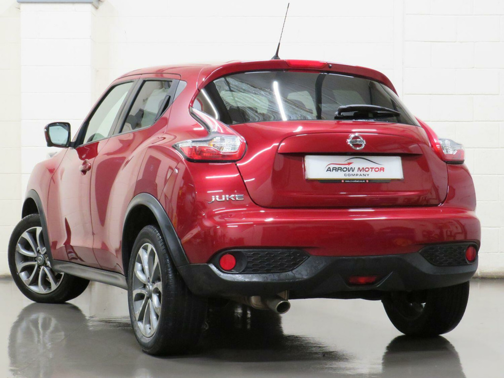 Arrow Motor Company are pleased to present this fantastic Nissan Juke Tekna, finished in the stunning Metallic Burgundy Red Paintwork, with contrasting Full Black Leather Interior. Equipped with Nissans 1.6-Litre Diesel Engine capable of producing 108bhp whilst providing the most economical of drivers with a highly respectable 70.6mpg, with potential to rise to 74.3mpg in Extra-Urban environments. This Particular Example has a (FSH) Full Service History. This vehicle also benefits from the following impressive list of features, , ↓ ↓ ↓ ↓ ↓ ↓ ↓ ↓ ↓ ↓ ↓ ↓ ↓ ↓ ↓ ↓ ↓ ↓ ↓ ↓, , ...Interior Features... , Satellite Navigation System | 6-Inch Multimedia Touchscreen Display | Miniature Cluster Display | Rear Parking Camera Display | Birds Eye View Parking Camera Display | Climate Control with Digital Display and Air-Conditioning | 3x Adjustable Full Leather Heated Front Seats | 6x Surround Sound Speaker System | Cruise Control | Automatic Headlight Switch | Bluetooth Telephone and Media Streaming | DAB Radio | Speed Limiter | Multifunction Black Leather Steering Wheel | Front and Rear Electric Window Controls | CD Player | AUX / USB Input | Economic Stop/Start System | Sport Mode Display | Eco Mode Display | Electrically Adjustable Folding Wing Mirror Controls | Tyre Pressure Monitoring System | Black Leather Gear-Shifter Cover | Black Leather Centre Console | Glovebox Storage | Vanity Mirrors | Multifunctional Trip Computer | ISOFIX | Gyro Air Vents | 2 Cupholders | Central Locking | Traction Control | 12V Socket |, , ... Exterior Features... , 17-Inch 10 Spoke Diamond Cut Alloy Wheels | Rear Parking Camera | Wing Mirror Mounted Cameras | LED Day Time Running Lights | Keyless Entry | Rear Privacy Glass | Automatic Headlights | Electrically Adjustable Wing Mirrors | Front and Rear Electric Windows | Body Coloured Wing Mirrors with Integrated Indicators | Chrome Exhaust Tip | Chrome Lined Front Grill | Black Trim and Flared Wheel Arches | Integrated Rear Door Handles | Front Fog Lights | Electric Windows | Heated Rear Window | Body Coloured Roof | Body Coloured Door Handles |