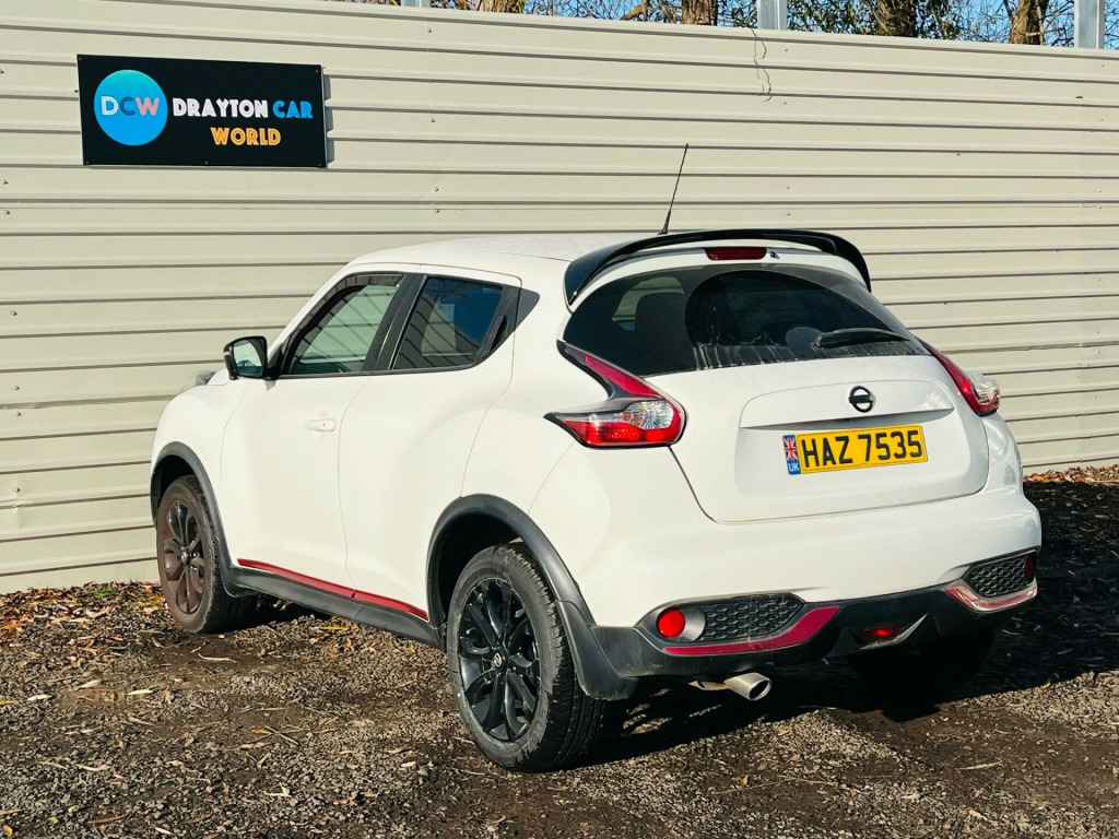 **HOME DELIVERY AVAILABLE**Drayton Car World are delighted to offer this stunning Nissan Juke Tekna the car is presented in excellent condition both inside and out. It has clearly been cherished by its 1 previous keeper from new. It benefits from a full-service history and new MOT. HPI clear. ulez compliant ,we offer a 3-month warranty and 12 months of AA Breakdown Cover, home delivery is available so you can buy from the comfort of your own home. we are open from 10am to 7pm ,7 DAYS A WEEK,ALL PART EXCHANGE ARE WELCOME ***ADDRESS *** Willowdene, The Common West Drayton UB7 7HQ*** v socket - front, 17in alloy wheels - urban, 2 speed wiper with variable intermittent, 3 adjustable rear head restraints, 60-40 split rear folding seats, aux socket for mp3 player, airbag - driver, airbag - front passenger, airbags - curtain, airbags - side, armrest - coloured stitching to matching centre console, automatic climate control with pollen filter, automatic lights and wipers, black headliner, body coloured handles, body-coloured door mirrors with led indicators, boot capacity with flexi-floor board, chrome interior door handles, colour reversing camera, cruise control with speed limiter, dab and internet radio with 6 speakers, drive computer with temperature gauge, esp abs ebd and brake assist, electric folding and heated door mirrors, engine immobiliser, front armrest, front cupholders x2, front door pockets with drinks bottle holders, front fog lights, front map reading lights, front seat belt height adjustment, front seat belts with load limiter and pretensioners, front and rear electric windows, gear shift indicator, glovebox, height adjustable driver seat, isofix child seat anchoring points, intelligent key with start push button, led signature daytime running lights, leather steering wheel and gear knob, nissan dynamic control system, nissanconnect, passenger airbag cut-off switch, power assisted steering - speed sensitive, puncture repair kit, rear door child locks, rear privacy glass, rear tonneau cover integrated into tailgate, rear wiper with intermittent, safety pack, seats - heated front, steering wheel mounted audio controls, tpms - tyre pressure monitoring system, telephone - bluetooth integration, tilt adjustable steering wheel, traction control, usb port