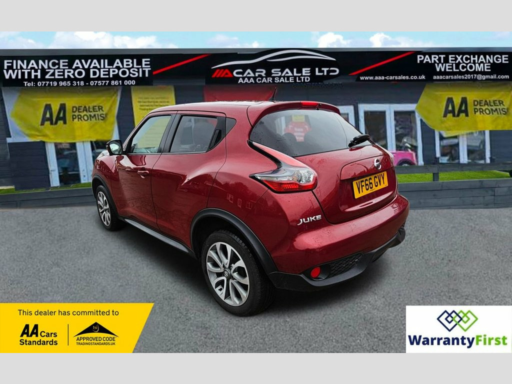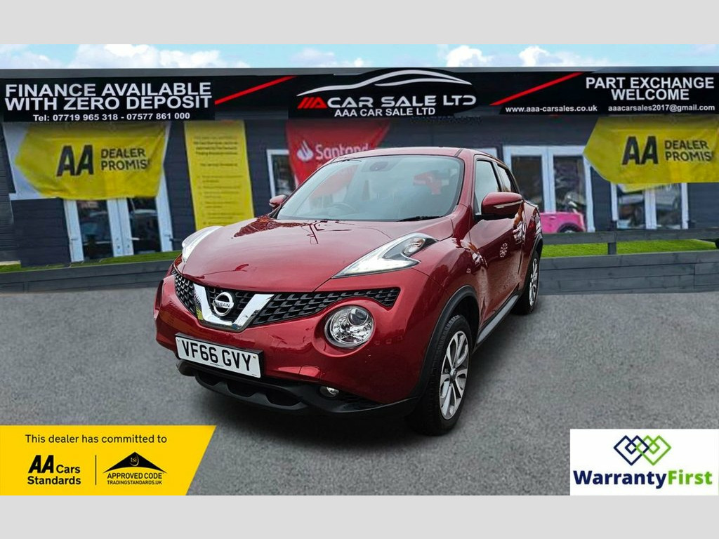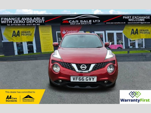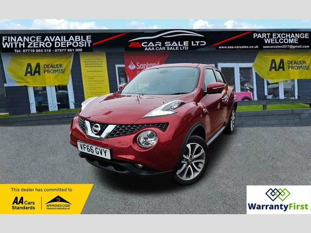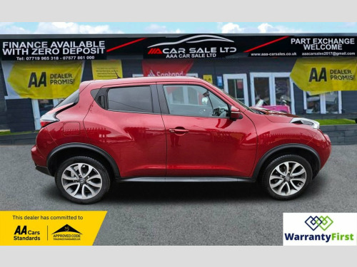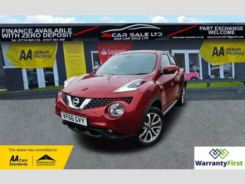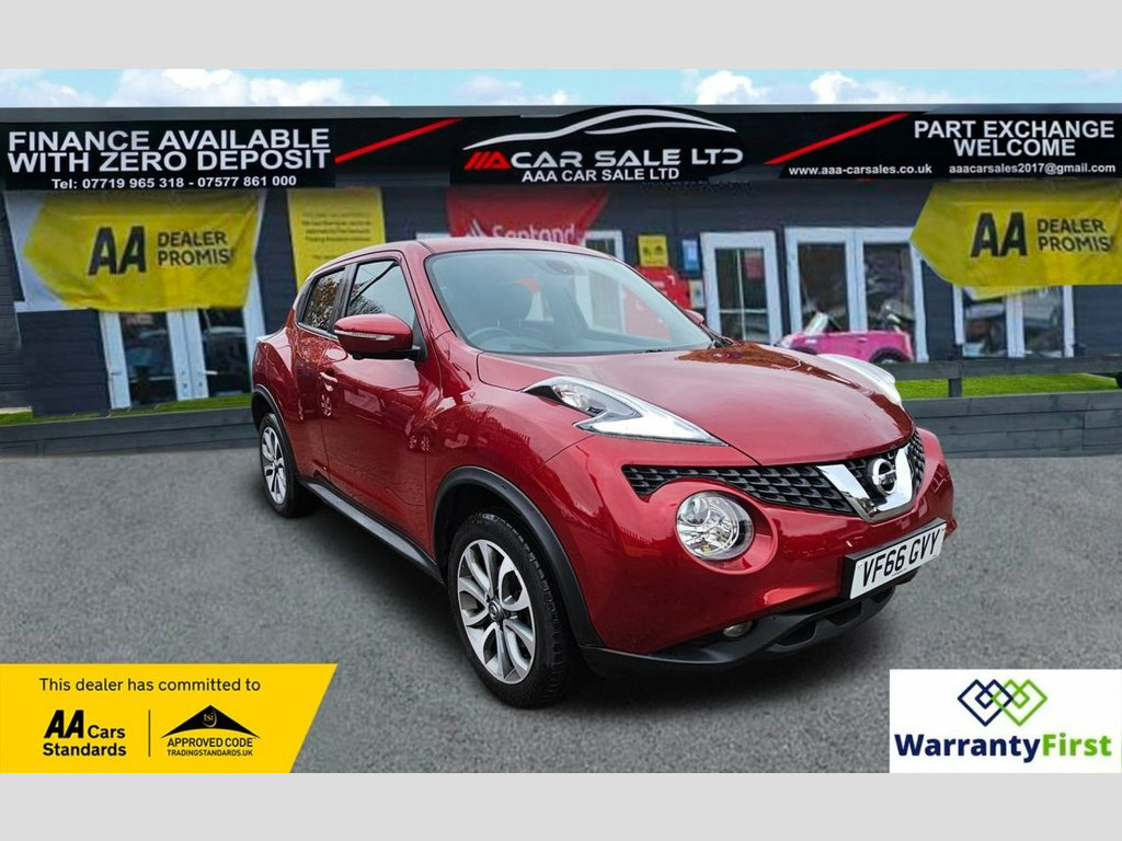 **AAA CAR SALES DARLINGTON LTD HAVE THE PLEASURE TO PRESENT NISSAN JUKE 1.5 dCi Tekna SUV 5dr Diesel Manual Euro 6 (s/s) (110 ps) IN MAGNETIC RED PAINT WORK, SERVICE HISTORY SERVICED AT 8K, 20K, 30K, 58K AND A SERVICE BY US AT 64K,ALL OUR CARS GO THROUGH 72 POINT INSPECTION,ALL OF OUR CARS COME WITH 12 MONTHS AA BREAKDOWN COVER, FRESH MOT WITHOUT ADVISORIES,INTERIM SERVICE,HPI CHECKED VIA EXPERIAN,3 MONTHS WARRANTY WITH THE OPTION TO UPGRADE ***AUTOTRADER CUSTOMER SERVICE AWARD 2019,2020,2021,2022,2023 and 2024 YEAR ON YEAR***, WE ARE OPEN 7 DAYS A WEEK FOR YOUR CONVIENIENCE,CALL 01325 511665 OR EMAIL US AT [email protected] or visit our website www.aaa-carsales.co.uk, , Service history, Clean bodywork, Cloth interior - Clean Condition, Tyre condition good, YOU CAN BUY WITH FULL CONFIDENCE FROM AAA CARS CHECK OUR AUTOTRADER REVIEWS FOR FULL PEACE OF MIND, Magnetic Red, 12V Socket - Front, 17in Alloy Wheels - Urban, 2 Speed Wiper with Variable Intermittent, 3 Adjustable Rear Head Restraints, 60-40 Split Rear Folding Seats, AUX Socket for MP3 Player, Airbag - Driver, Airbag - Front Passenger, Airbags - Curtain, Airbags - Side, Armrest - Coloured Stitching to Matching, Automatic Climate Control with Pollen Fi, Automatic Lights and Wipers, Black Headliner, Body Coloured Handles, Body-Coloured Door Mirrors with LED Indi, Boot Capacity with Flexi-Floor Board, Chrome Interior Door Handles, Colour Reversing Camera, Cruise Control with Speed Limiter, DAB and Internet Radio with 6 Speakers, Drive Computer with Temperature Gauge, ESP ABS EBD and Brake A