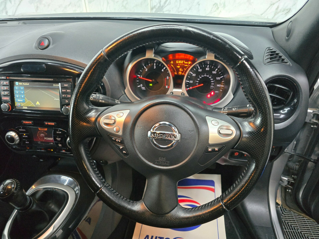 6 MONTHS WARRANTY AND BREAKDOWN COVER WITH THIS CAR.Low mileage 63k miles. 2 former keepers only.FULL SERVICE HISTORY. MOT 02 SEPT 2026. We just done the fresh service.This stunning Nissan Juke has been sourced directly from its Previous Private Owner. Every now and again, a car comes into stock at Top Right Car Centre, that you cannot help but fall in love with.Top Spec Tekna has massive centre touch screen SATNAV, 360 degree reversing camera, full leather interior with heated seats, driving modes, daytime running led lights, all electric windows, privacy glass, auto folding electric side mirrors, digital dual climate control, cruise control.Clean Car in Silver colour. Great comfortable family car. Well maintained body work and interior. Bullet fast response. Checked by our engineers. Professionally detailed. Good reliable runner. Price checked. We've just completed a full pre delivery inspection on the car to give you complete piece of mind. central locking key. Smooth gear box. Clean Alloy wheels. Excellent condition tyres. Multimedia has Bluetooth RADIO CD mp3 USB AUX. Run with no fault strong reliable engine. Good fuel economy. First to see will buy it this well looked after car. cat S. p/x welcome. We do price our cars/van as competitively as possible and because of this we sell cars/vans very quickly. BE QUICK! MISS IT - MISS OUT. With so much variety, quality and highly rated award winner 2024, it is no wonder we are super busy all the time. Why Buy From Top Right Car Centre?Thoroughly Inspected Cars. All our vehicles are quality-checked and HPi verified, giving you peace of mind with every purchase.Multi Award-Winning Family Business. As a trusted family-run business, we have earned awards for our customer service and expertise.Hand-Picked, Quality Cars. We carefully select only the finest cars with full service histories, so you can drive away with confidence.Test Driven for Assurance. Each car is personally test-driven by our team, ensuring it meets our high standards.Delivery Service available. v socket - front, aux socket for mp3 player, dab and internet radio with 6 speakers, nissanconnect, telephone - bluetooth integration, usb port, 17in alloy wheels - urban, body coloured handles, body-coloured door mirrors with led indicators, electric folding and heated door mirrors, front and rear electric windows, puncture repair kit, rear privacy glass, 2 speed wiper with variable intermittent, 3 adjustable rear head restraints, 60-40 split rear folding seats, armrest - coloured stitching to matching centre console, automatic climate control with pollen filter, black headliner, boot capacity with flexi-floor board, chrome interior door handles, front armrest, front cupholders x2, front door pockets with drinks bottle holders, front map reading lights, glovebox, height adjustable driver seat, leather steering wheel and gear knob, rear tonneau cover integrated into tailgate, seats - heated front, steering wheel mounted audio controls, tilt adjustable steering wheel, airbag - driver, airbag - front passenger, airbags - curtain, airbags - side, esp abs ebd and brake assist, engine immobiliser, front seat belt height adjustment, front seat belts with load limiter and pretensioners, isofix child seat anchoring points, intelligent key with start push button, passenger airbag cut-off switch, rear door child locks, rear wiper with intermittent, safety pack, traction control, automatic lights and wipers, front fog lights, led signature daytime running lights, colour reversing camera, cruise control with speed limiter, drive computer with temperature gauge, gear shift indicator, nissan dynamic control system, power assisted steering - speed sensitive, tpms - tyre pressure monitoring system