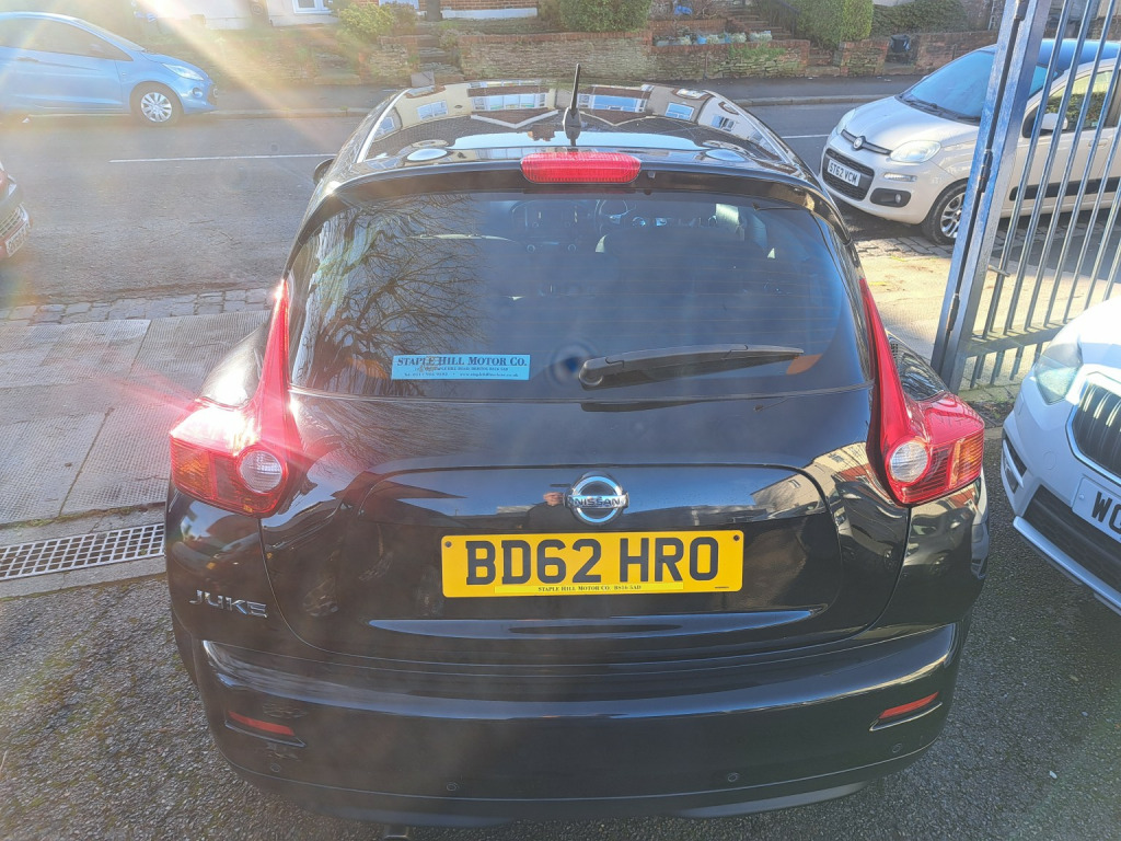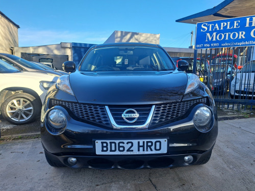Nissan Juke 1.6 Acenta finished in Black (Manual), 75164 miles, only 2 previous owners. This 2012 Nissan Juke Acenta is a great find with remarkably low mileage for its age, having covered just 75164 miles. Very good service history which will include a interim service when the car is sold This particular model is equipped with a 1.6 litre petrol engine and benefits from desirable features such as climate control air conditioning for your comfort and Bluetooth telephone integration, allowing for handsfree calls. , You will appreciate the impressive fuel economy of this Juke, achieving up to 49 miles per gallon, which is better than many similar vehicles. Furthermore, its low insurance group and low CO2 emissions also contribute to making this a more economical choice to own and run. Only £3,999, , Fantastic low rates of finance available. Includes 3 month comprehensive parts & labour warranty with an option to extend. Part exchange welcome. **Follow us on Facebook and Twitter Staple Hill Motors @Hill Staple ** Please call 0117 9569393 for more information on this vehicle.