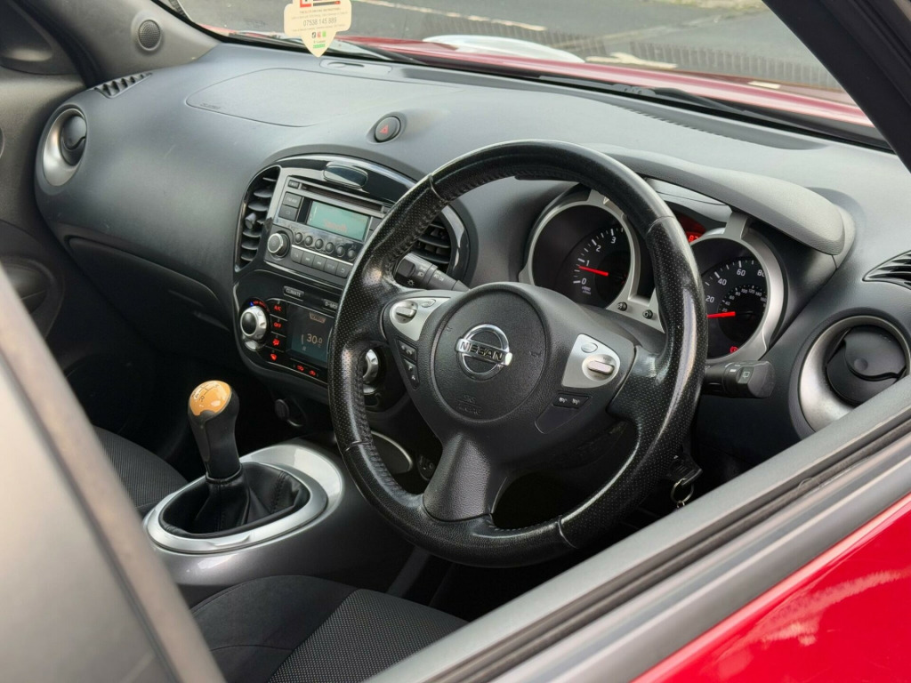 Empire Cars are proud to present this stunning Nissan Juke 1.6 Acenta. Previous owner has had the car from 2012 kept up to date with all major maintenance and services. The car comes with service history including 6 stamps and drives absolutely amazingly. Finished in a gorgeous metallic red. It in great condition for the year and mileage it is, making it the perfect choice for a family car. Comes with some fantastic features including cruise control, air conditioning, AUX and USB connections with much more. The vehicle has a clear history report along with an amazing MOT history. The car drives absolutely amazingly and will be released with a 12M advisory free MOT, fresh PDI service and a free 18 month warranty plan included at the advertised price covering all major mechanicals- that is nationwide and can be extended. ✅18-Month Premium Warranty (Covers all mechanical & electrical components – parts & labour included, unlimited claim limits)✅ Nationwide Warranty Coverage with options to extend up to 36 months✅ Experian HPI Clear & Verified✅ Free Train Station Collection ServiceWhy Buy from Empire Cars?Auto Trader Highly Rated 2023FCA RegulatedRated Excellent on Google, AutoTrader & CarGurusNationwide Delivery AvailableHP & PCP Finance from 0% DepositWe’ll clear existing finance on your part exchangeBest price guaranteed for part exchangePre-Delivery Inspection & Full Valet IncludedVirtual Appointments & Video Viewings AvailableReserve your next vehicle for just £99 – fully refundable, with the balance paid on delivery. Comes with our 7-Day Money-Back Guarantee for complete confidence.???? Contact us 24/7 on WhatsApp: 07361 226063???? Email: [email protected] quality, transparency, and value at Empire Cars – where your next car comes with confidence included.. 12V Socket - Front, 17in Alloy Wheels - Sport, 3 Adjustable Rear Head Restraints, 60-40 Split Rear Folding Seats, ABS - Anti Lock Brakes, AUX-In Socket, Airbag - Driver, Airbag - Front Passenger, Airbags - Curtain, Airbags - Side, Bluetooth Telephone Integration, Body Coloured Door Mirrors, Body Coloured Handles, Body-Coloured Door Handles, Brake Assist, Bumpers - Body Coloured, CD Radio with MP3 Playback, Chrome Exhaust Finisher, Chrome Interior Door Handles, Climate Control Air Conditioning, Driver Seat Height Adjustment, EBD - Electronic Brakeforce Distribution, ESP - Electronic Stability Programme, Electric Door Mirrors, Electric Speed-Sensitive Power Steering, Engine Immobiliser, Front Cupholders x2, Front Door Pockets with Drinks Bottle Holders, Front Fog Lights, Front Map Reading Lights, Front and Rear Electric Windows, Glovebox, Grey Centre Console-Door Trim Finishers, ISOFIX Child Seat Anchoring Points, Nissan Dynamic Control System, Passenger Airbag Cut-Off Switch, Passenger Seat Back Pockets, Pollen Filter, Rear Door Child Locks, Rear Tonneau Cover Integrated into Tailgate, Remote Central Locking, Speed Limiter, Steering Wheel - Leather and Gear Knob, Steering Wheel Mounted Audio Controls, Tilt Adjustable Steering Wheel, Trip Computer, USB Port, Cruise Control, Casual Fabric - Grey, Climate Control, 17'' Alloy Wheels, Cruise Control. Part service history