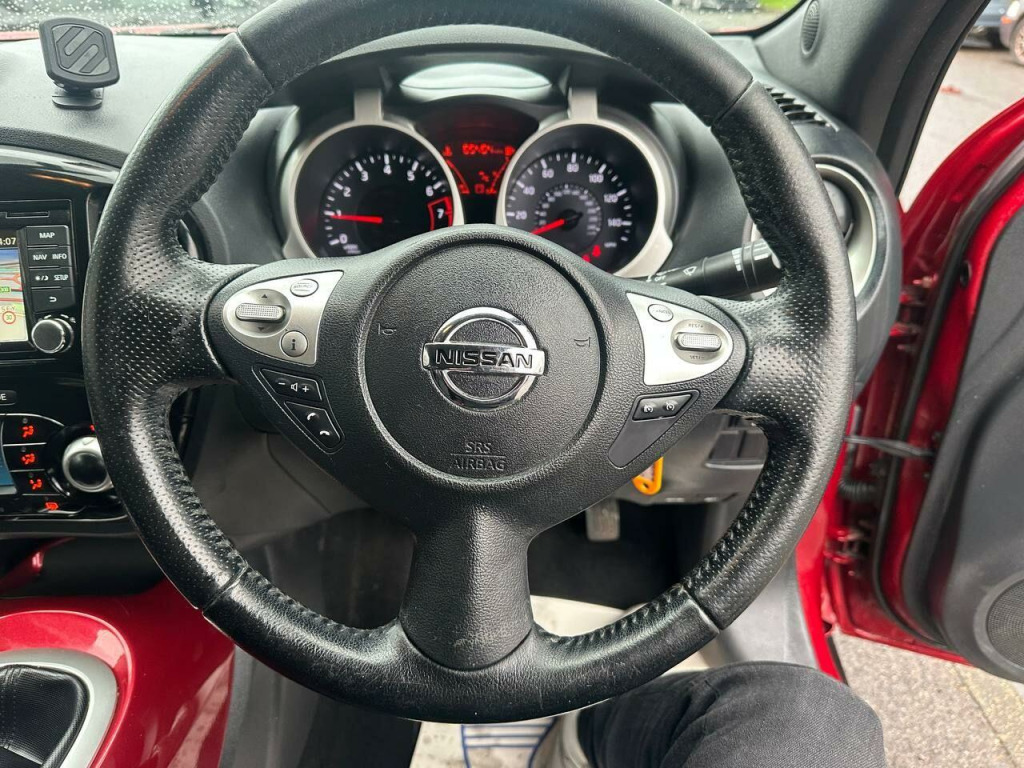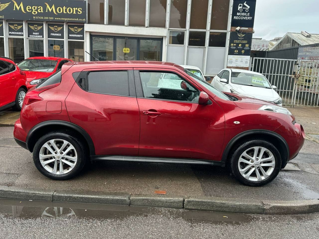 Beautiful Nissan Juke 1.6 Acenta Premium in excellent condition. Top Specs, Navigation, Parking Sensors, Electric Windows, Electric Side Mirrors, Climate Control, Steering Control, Cruise Control, Bluetooth Connection, Aux Connection, Alloys, Isofix, and many more...., Great Mpg, cheap to Tax and Insure. ULEZ compliant, 2 Keys. The car has been very well looked after and comes with FRESH-Service . We had it serviced recently at 85400 miles on 30/01/2026. It has also been MOTed till 10/02/2027 with no advisory. 3 Months essential warranty with Customer Protect is also included for your peace of mind. It is in very good condition and drives very smoothly with no fault whatsoever. ALL OUR CARS ARE FULLY INSPECTED BY PROFESSIONALS PRIOR TO ADVERTISEMENT & COME WITH 12 MONTHS FREE BASIC AA BREAKDOWN COVER. Finance is also available on request. DRIVE-AWAY INSURANCE IS ALSO AVAILABLE AT A COST. TO VIEW MORE STOCK PLEASE VISIT OUR WEBSITE AT: WWW.MEGAMOTORSUK.CO.UK , v socket - front, 17in alloy wheels - sport, 3 adjustable rear head restraints, 60-40 split rear folding seats, abs - anti lock brakes, aux-in socket, airbag - driver, airbag - front passenger, airbags - curtain, airbags - side, bluetooth telephone integration, body coloured door mirrors, body coloured handles, body-coloured door handles, brake assist, bumpers - body coloured, cd radio with mp3 playback, chrome exhaust finisher, chrome interior door handles, climate control air conditioning, colour reversing camera, cruise control, driver seat height adjustment, ebd - electronic brakeforce distribution, esp - electronic stability programme, electric door mirrors, electric speed-sensitive power steering, engine immobiliser, front cupholders x2, front door pockets with drinks bottle holders, front fog lights, front map reading lights, front and rear electric windows, glovebox, grey or red centre console-door trim finishers, isofix child seat anchoring points, nissan connect with touch-screen navigation system, nissan dynamic control system, passenger airbag cut-off switch, passenger seat back pockets, pollen filter, premium pack, rear door child locks, rear privacy glass, rear tonneau cover integrated into tailgate, remote central locking, speakers x6, speed limiter, steering wheel - leather and gear knob, steering wheel mounted audio controls, tilt adjustable steering wheel, trip computer, usb port